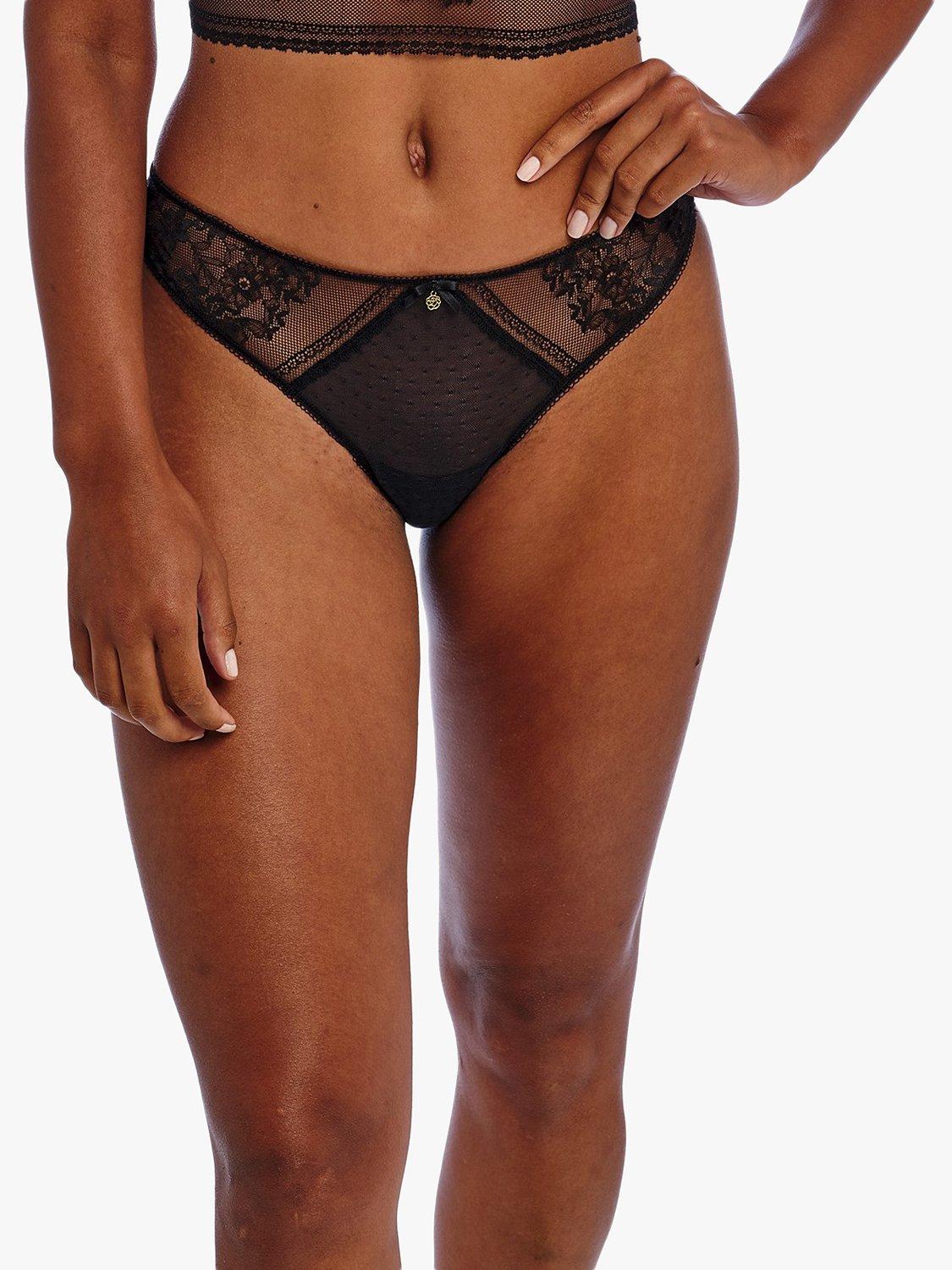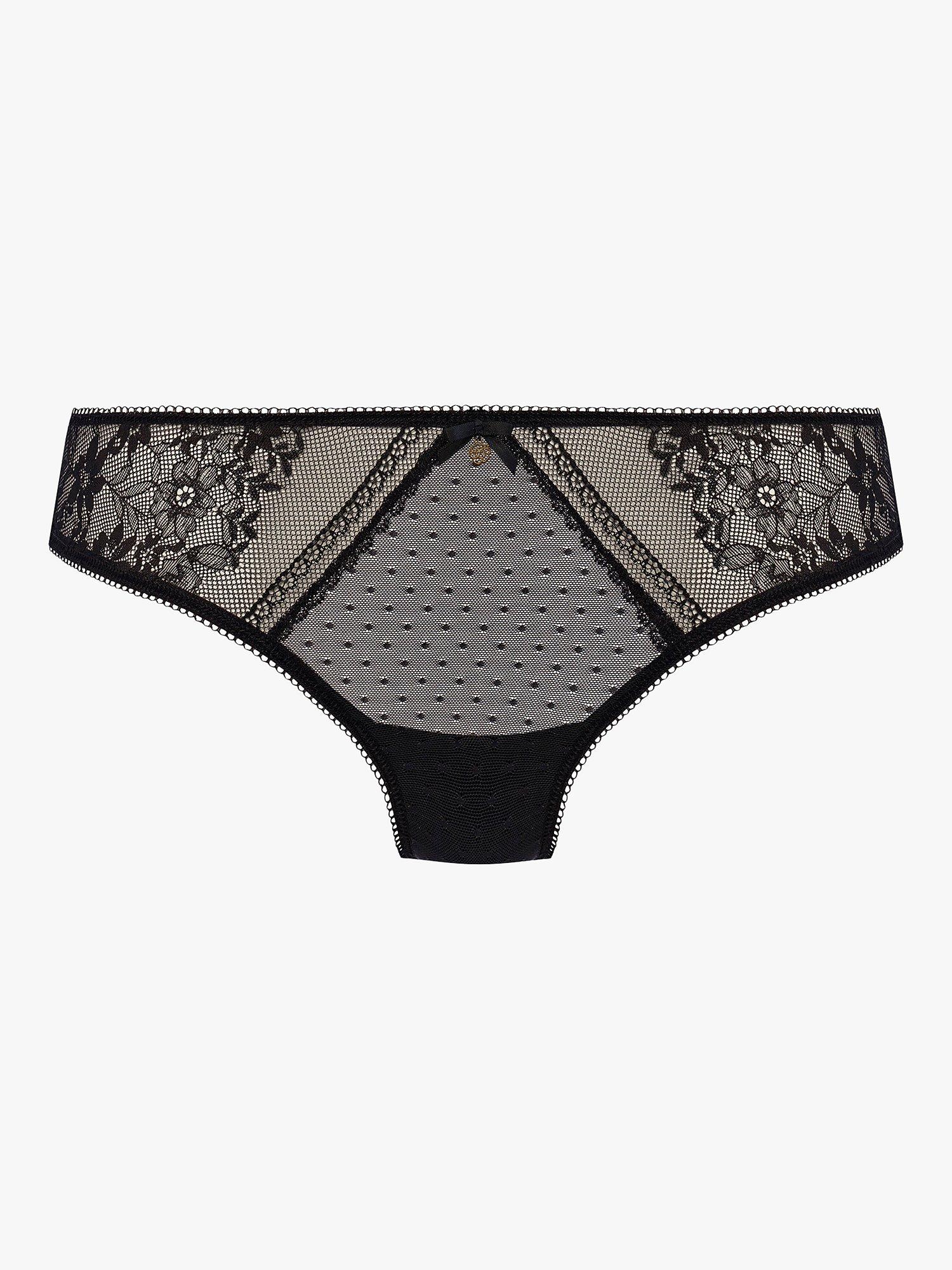 These bikini briefs are made in pretty stretch floral lace. Designed with spot mesh detailing and lace gallon through the front sides and edging at the back for a smooth silhouette. Finished with a bow and flower charm detail at the front.