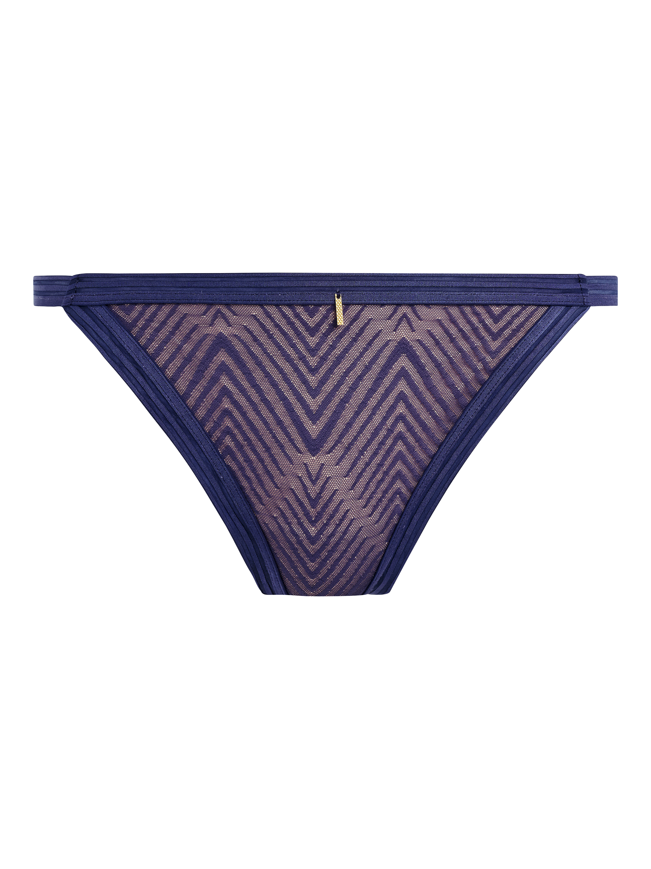 Tailored features a contemporary styling thanks to the geometric mesh lace overlay, teamed with either a tonal or contrast base. The Brief has a stretch geo-lace front and back. Light lining in front for modesty. Flat shadow striped elastic at waist and legs. Bar trim at centre front.