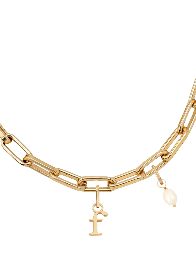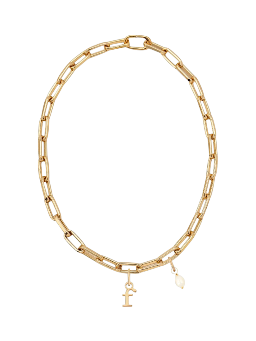 - necklace - length: 46cm width: 0.8cm weight: 50g, initial charm: length: 1.2cm width: 0.7cm weight: 2g, Pearl charm: length: 2cm width: 1cm weight: 1.6g