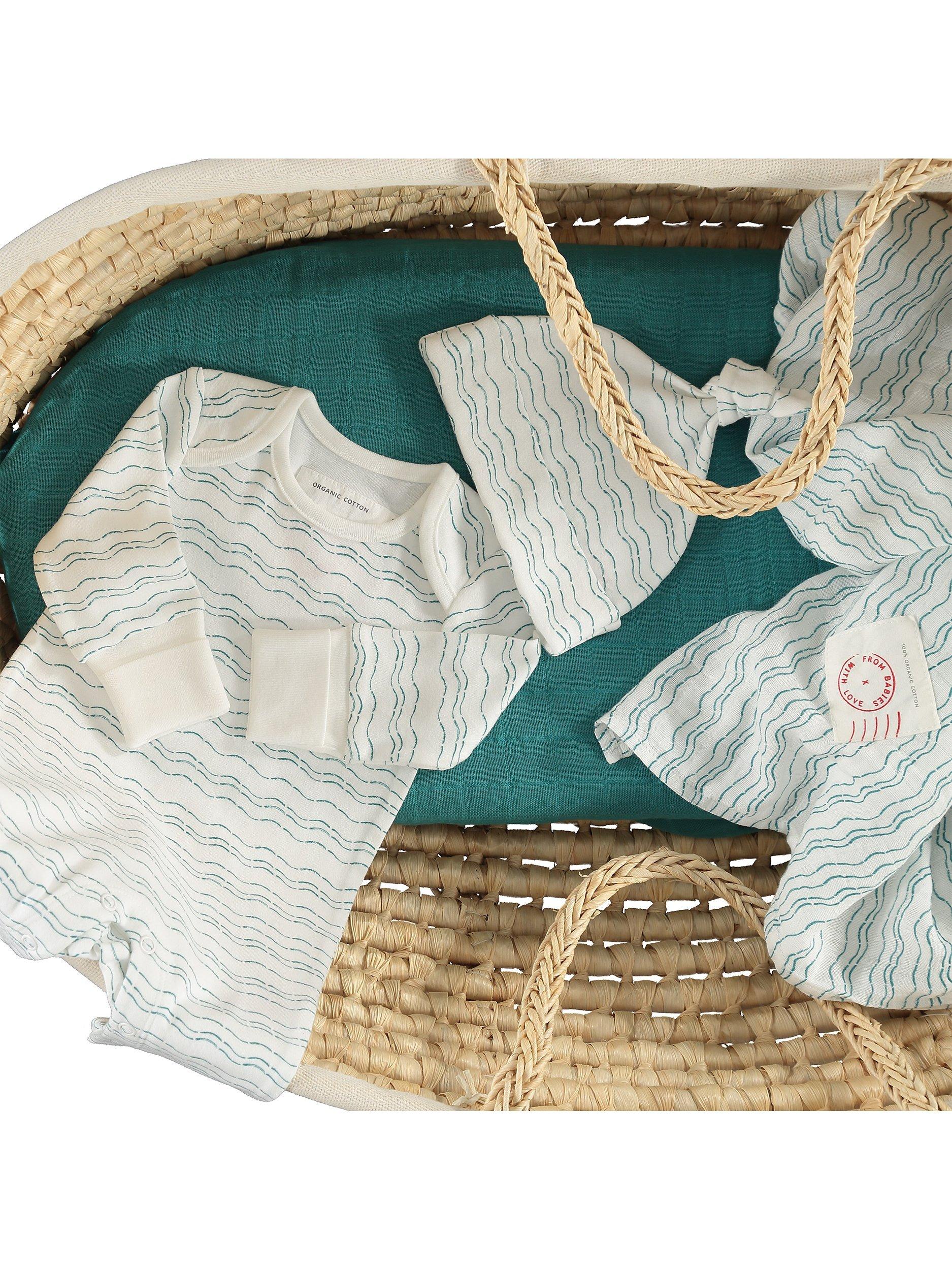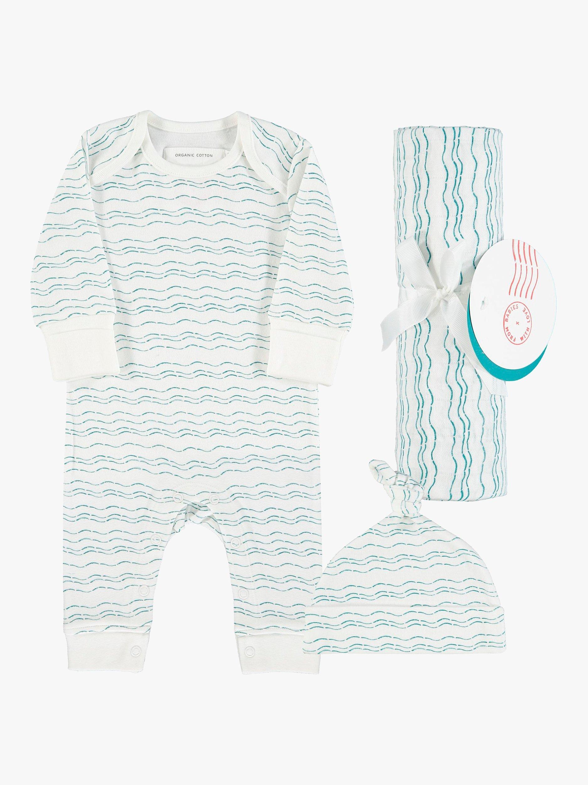 From Babies with LoveWaves of Joy Babygrow, Hat & Muslin Swaddling Wrap Gift Set