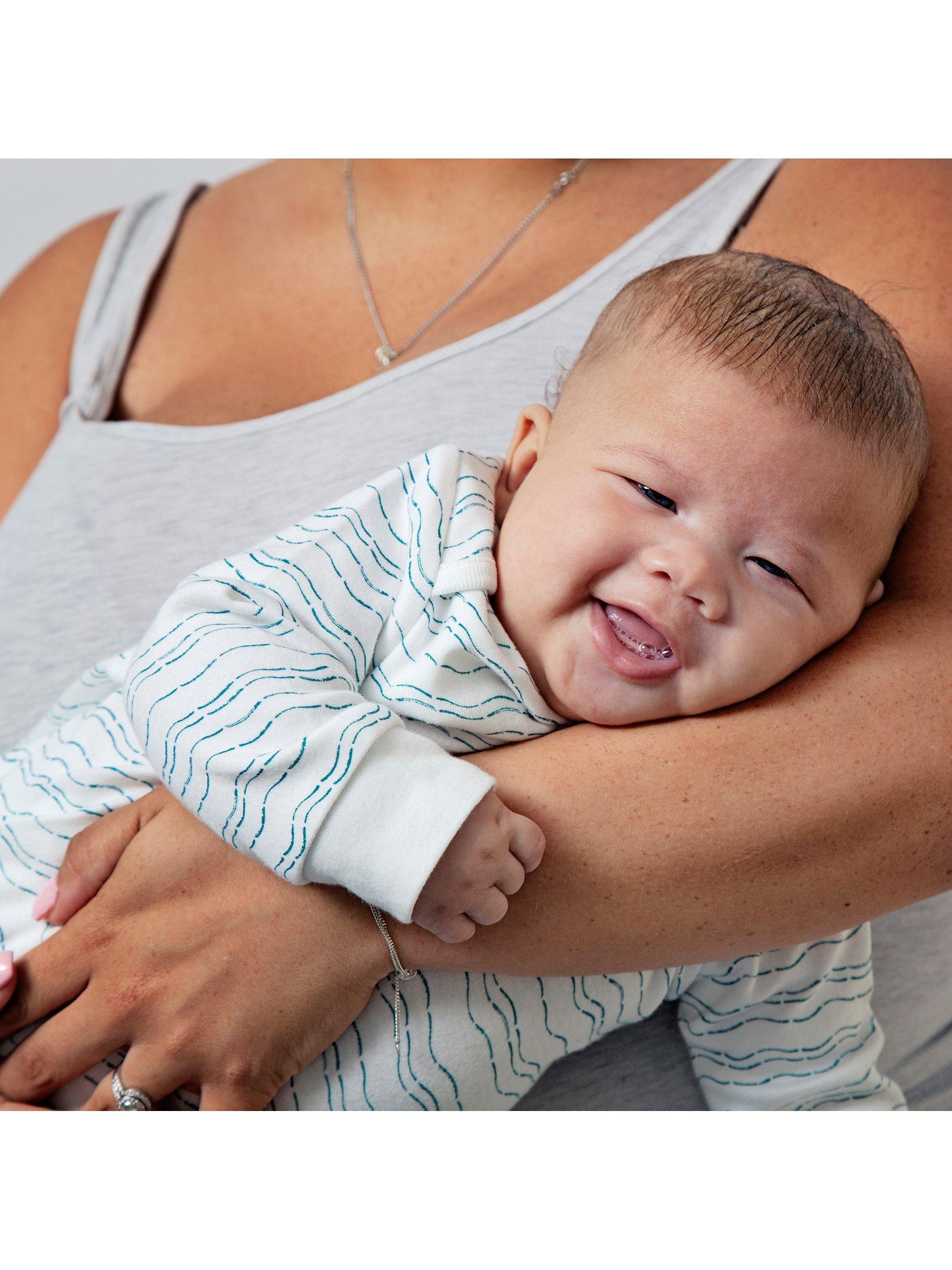 This Waves of Joy collection celebrates the joy babies bring, and the joy we feel in helping others too. This set includes a baby grow, knot hat and muslin swaddling wrap. The grow features envelope neck and poppers along the legs for easy dressing. The muslin baby shawl and swaddling wraps measure a generous 120cm x 120cm and can also be used as a lightweight cover, for burping and nursing.