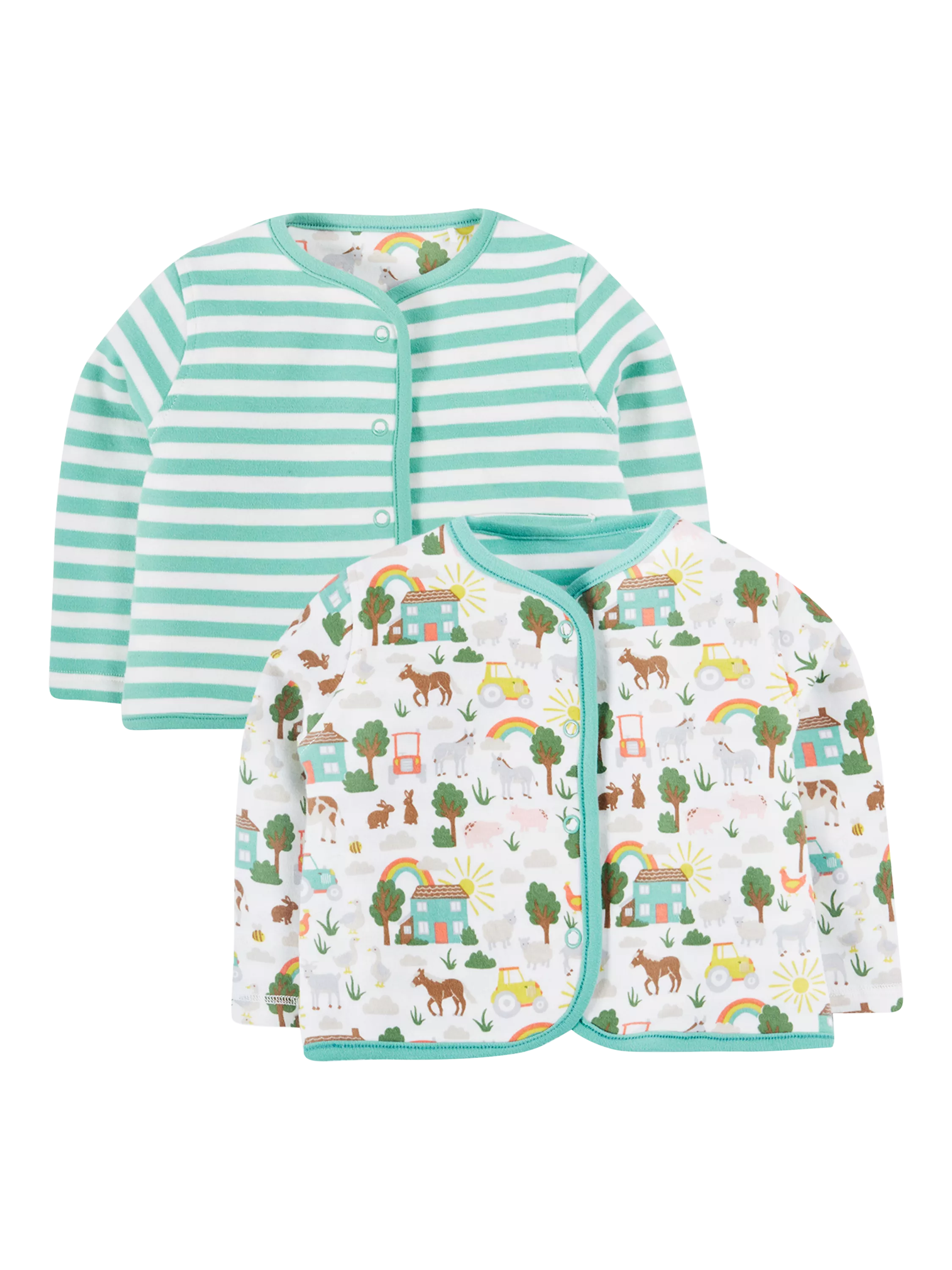 Super-soft and snuggly reversible jacket. Made in interlock organic cotton fabric, with patch pockets and snap fastenings.