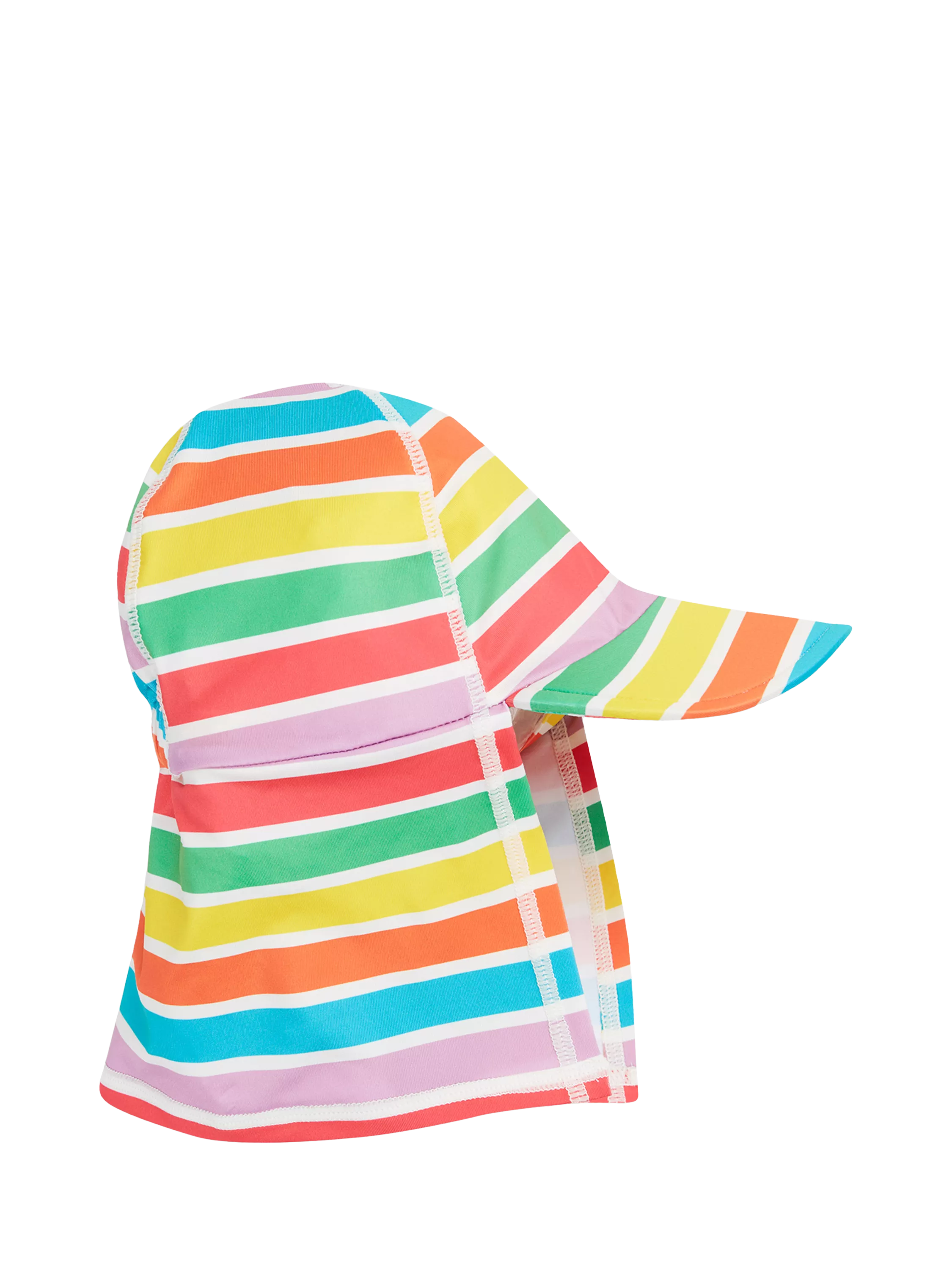 Sun-safe hat with UPF 50+ sun protection. Made in a stretch fabric with chlorine safe colours and prints and full zip fastening with zip guard.