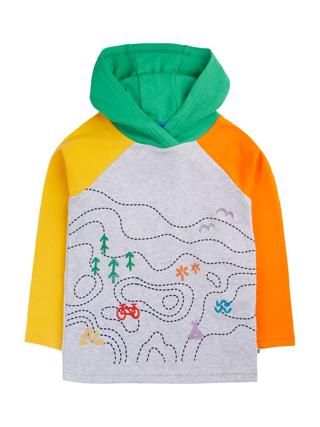 FrugiKids' Compass Hooded Top, Grey Marl/Explore