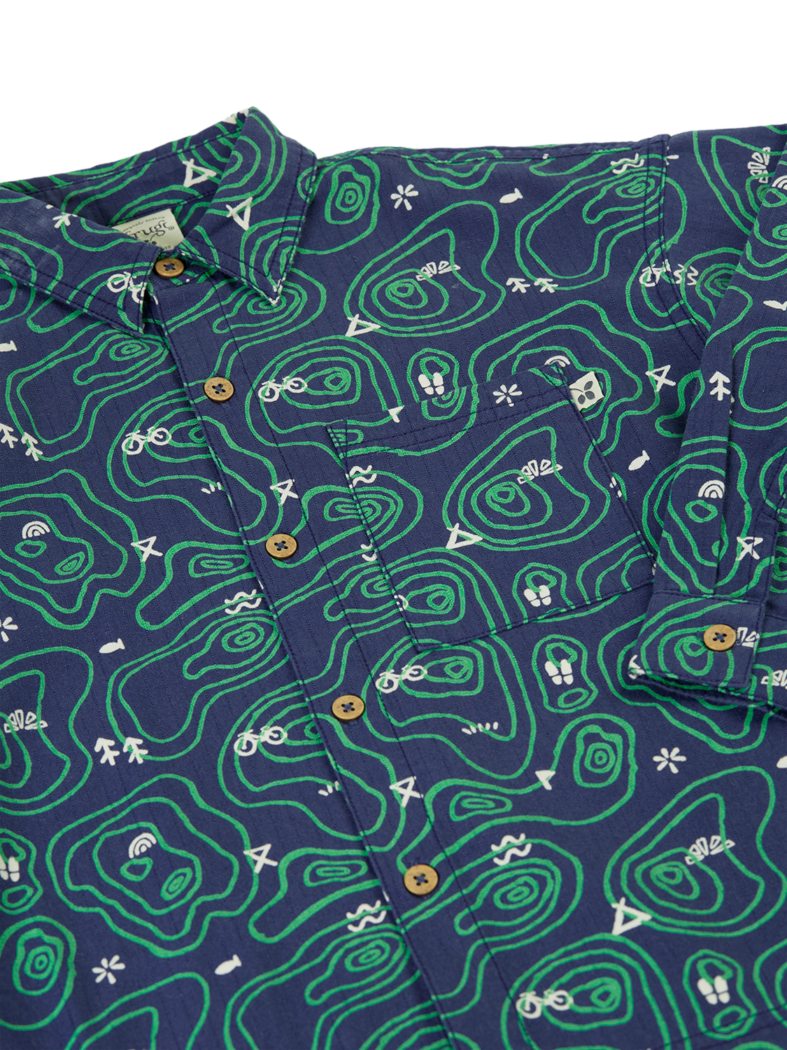 Long sleeved ripstop printed over-shirt with centre front button placket opening and chest pocket detail for a cool, layered look.