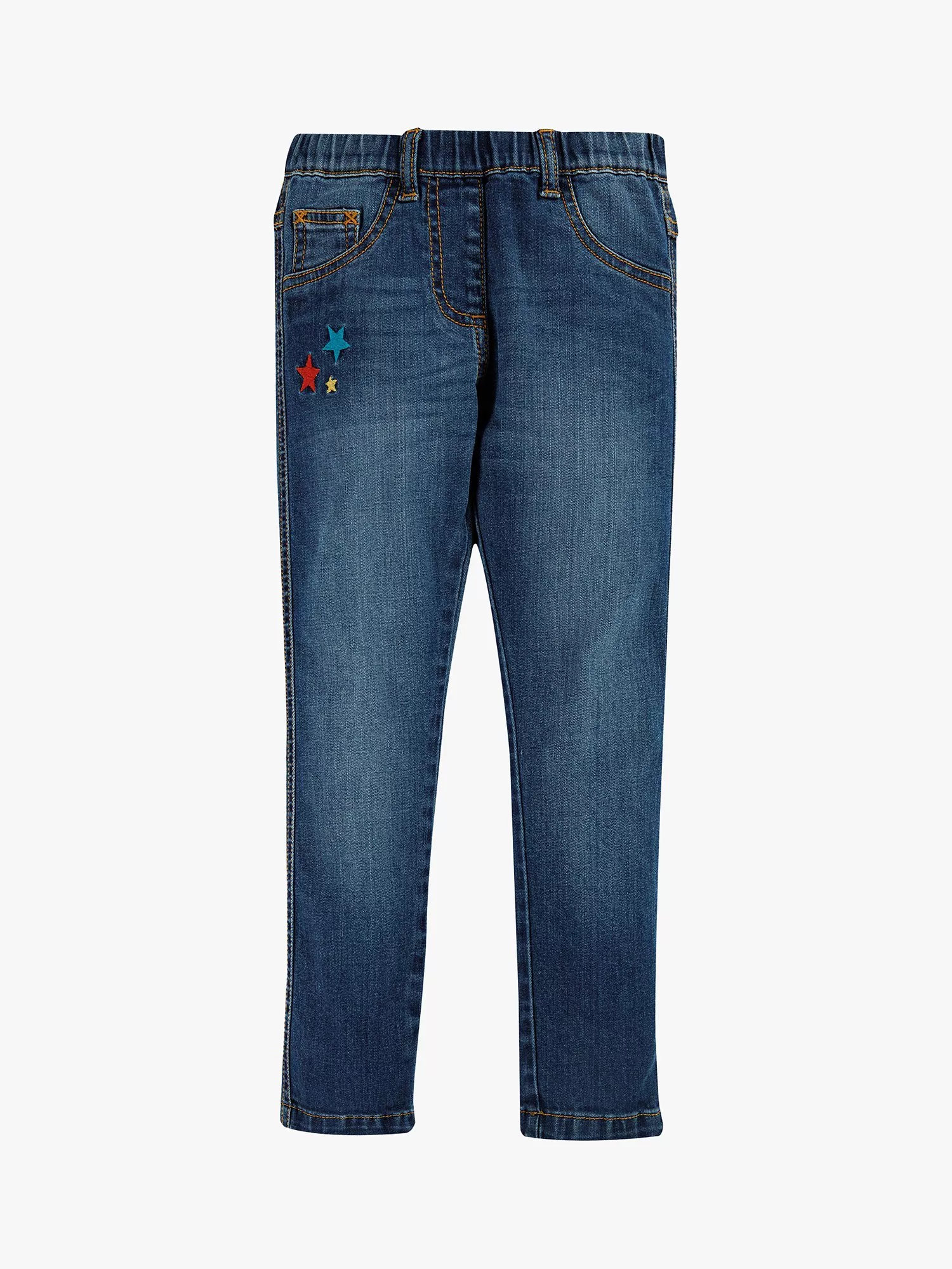 Cotton denim jeggings with a touch of stretch for added comfort. Finished with embroidered detailing.