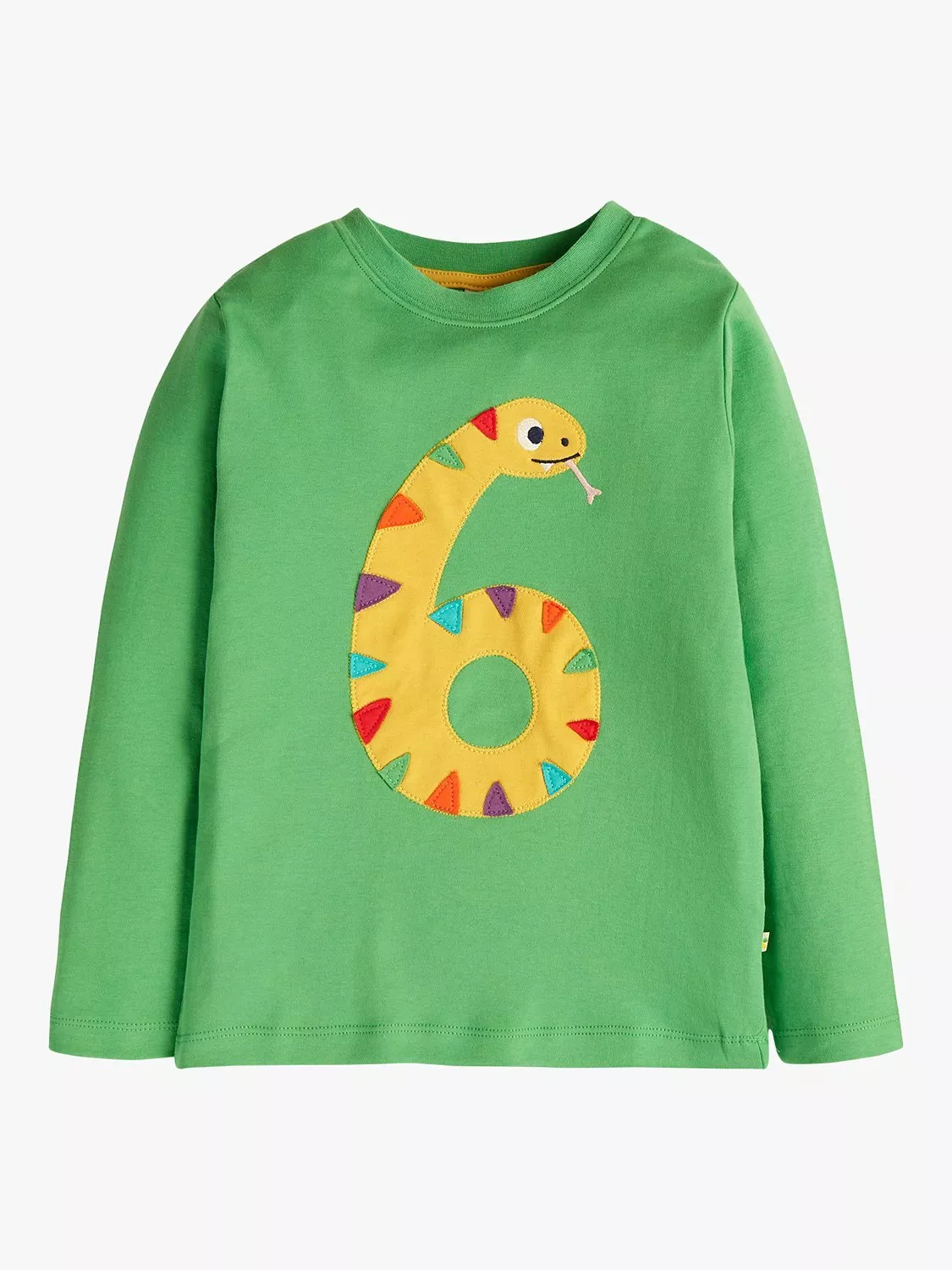 FrugiKids' Magic Number 6 Organic Cotton Snake T-shirt, Green/Multi