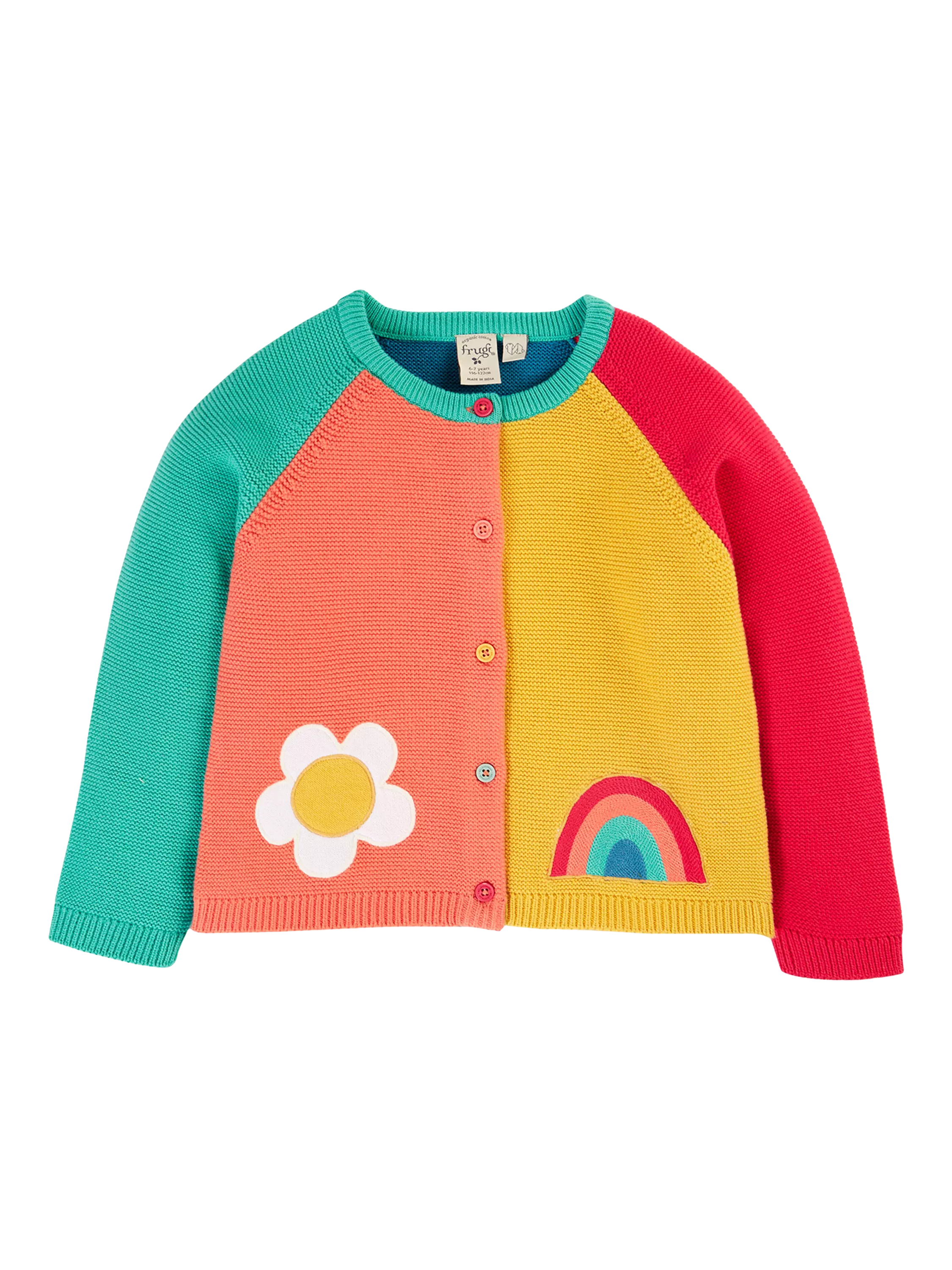 FrugiKids' Patsy Organic Cotton Colour Block Cardigan, Cantaloupe