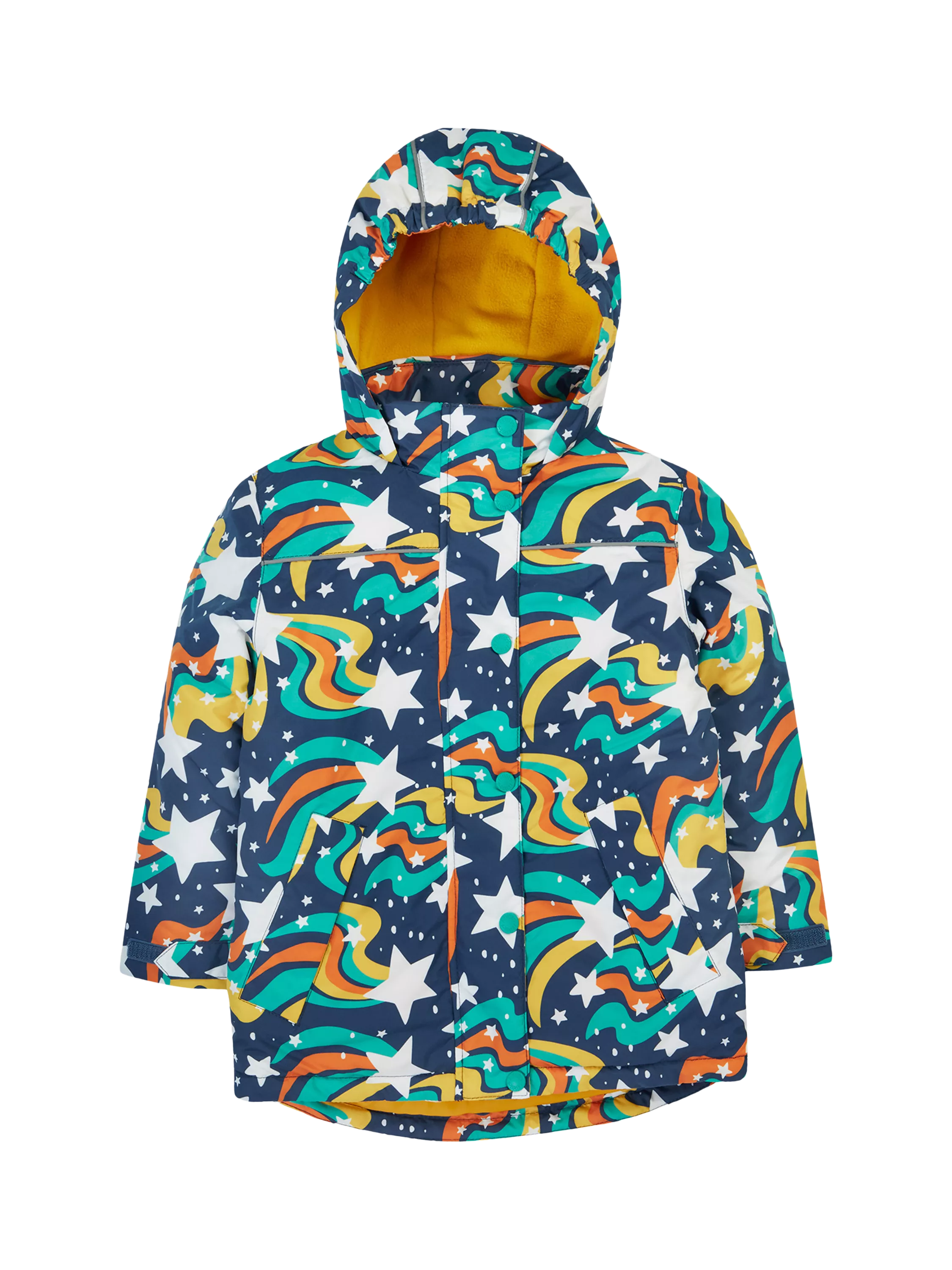 Recycled Polyester made from post-consumer recycled plastic. Waterproof to 3000HH rating with fully taped seams. 3000MVP breathability. PFC free durable water repellent finish. Features Reflective details, rip tape cuff adjusters, 2 zipped front pockets, storm placket front closure with zip and popper fastening. Dropped back hem to cover the wearer when sitting. Coat hook, name badge, inner secure zipped pocket, drop liner to sleeve for easy dressing, zip guard to protect chins.