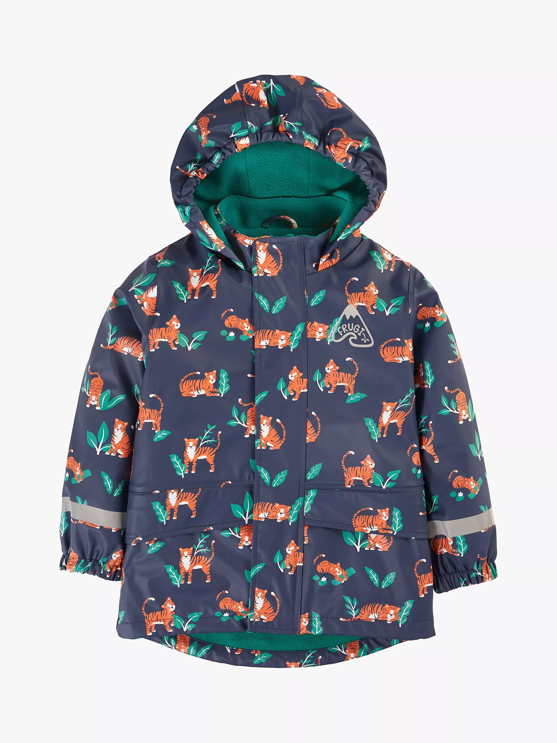 Waterproof with welded seams and soft fleece lining. Made from recycled plastic bottles it features storm flap pockets, elasticated cuffs, reflective print for safety and a zip and popper fastening with chin guard.