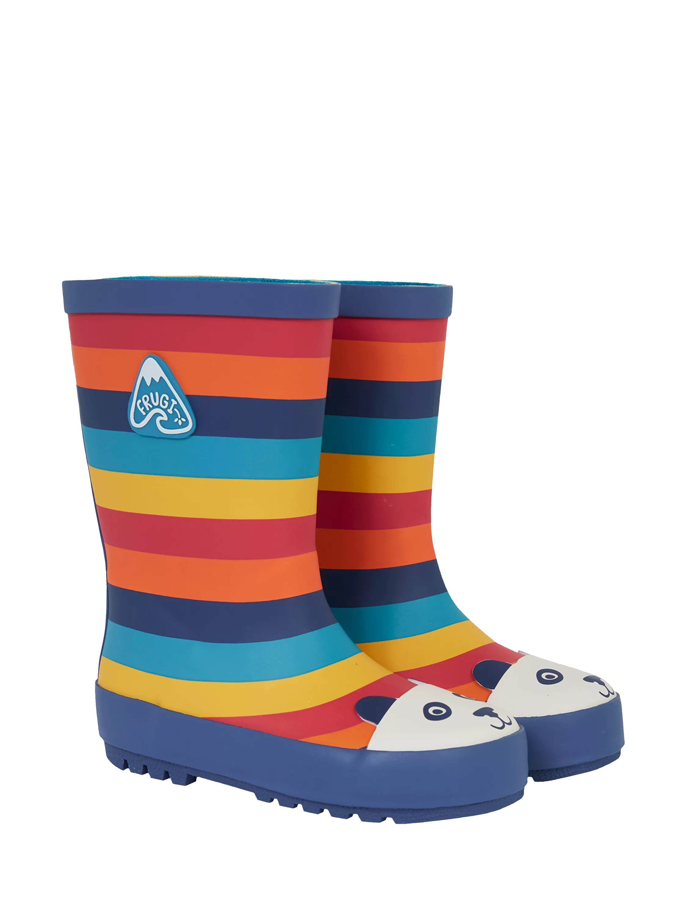 Made from PVC-free rubber, these Frugi boots feature a rainbow pattern, cleated sole and round toe with a fun panda print.