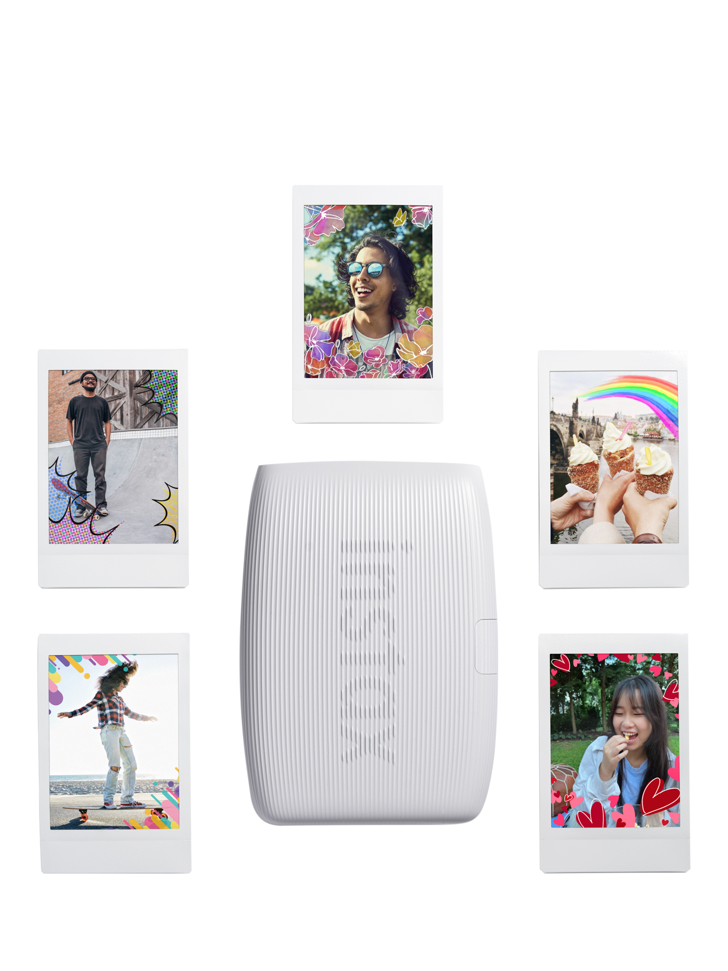 Remix & reimagine your photo world with instax™ AiR Studio. Go for the full suite – background, decor and effect – or pick & mix. Sprinkle a little effect here, and a decor there, or simply focus on the background. All before capturing that moment in time as a one-of-a-kind print. It’s time to play.