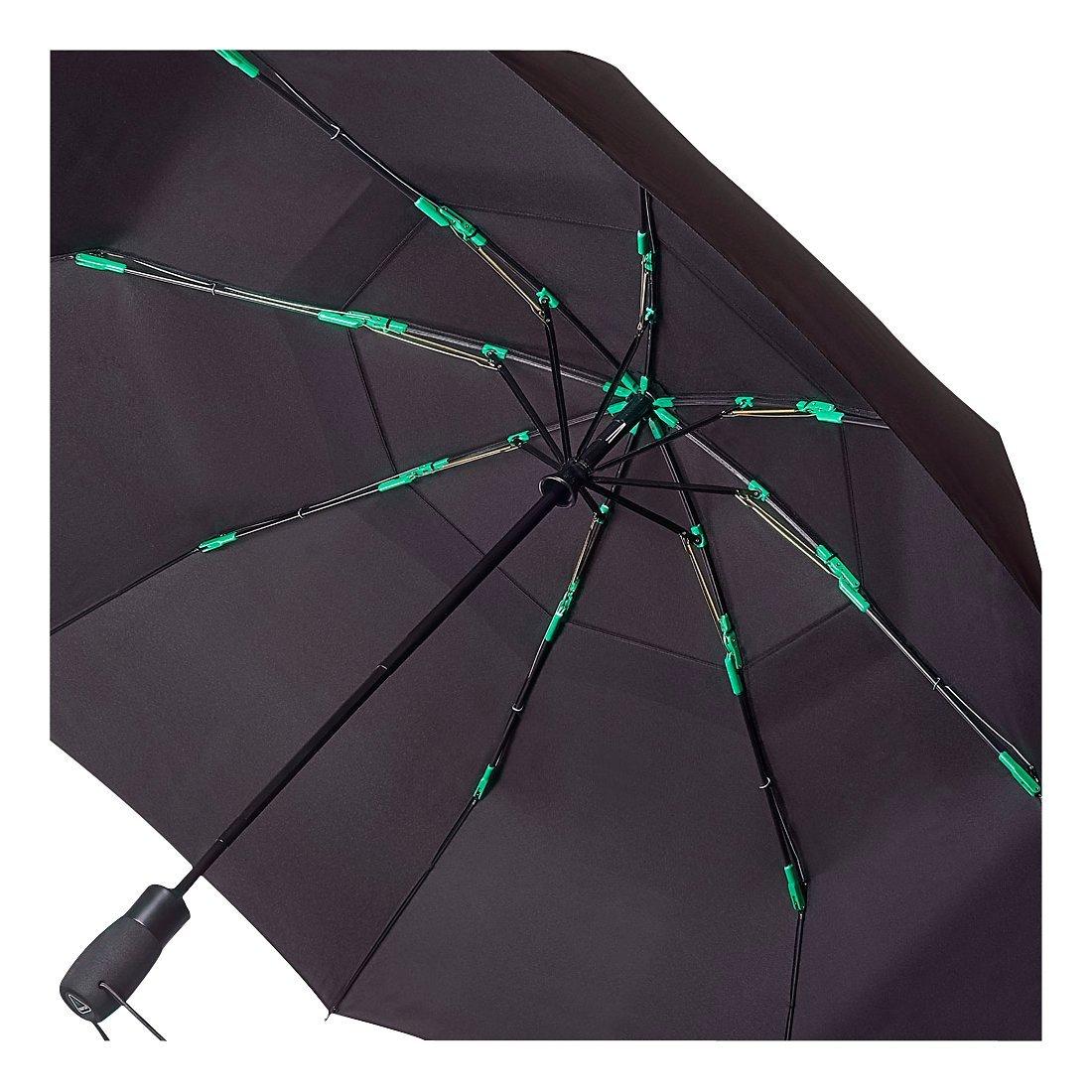 This Fulton Tornado umbrella combines style and sophistication and is handy for those unpredictable showers. Featuring fibre-reinforced polymer ribs for extreme strength, vented canopy for improved wind resistance, durable polycarbonate joints (green) and a comfortable foam grip. It is designed with a 3-stage automatic movement that is easy and quick to handle.