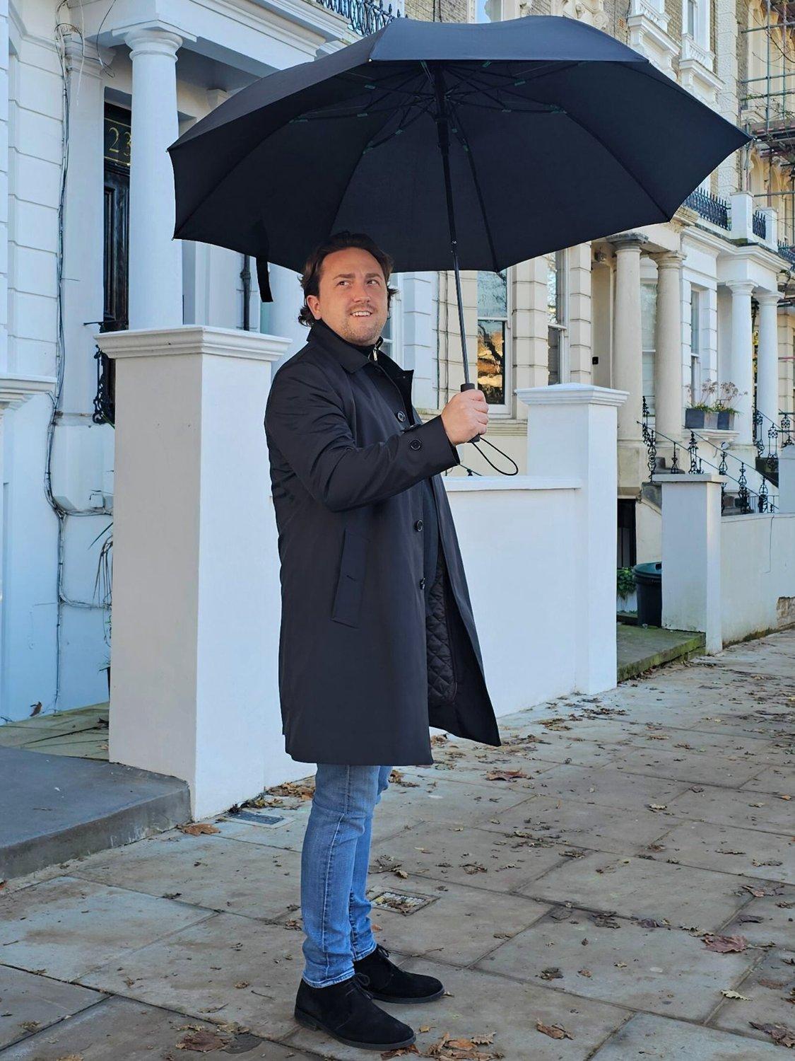 Power through any storm with the Vortex Umbrella, Fulton's latest innovation, designed for ultimate durability and style. Craftsmanship and innovation at its finest. It comes with a wrap-over case and handy carry strap for convenience on the go!
