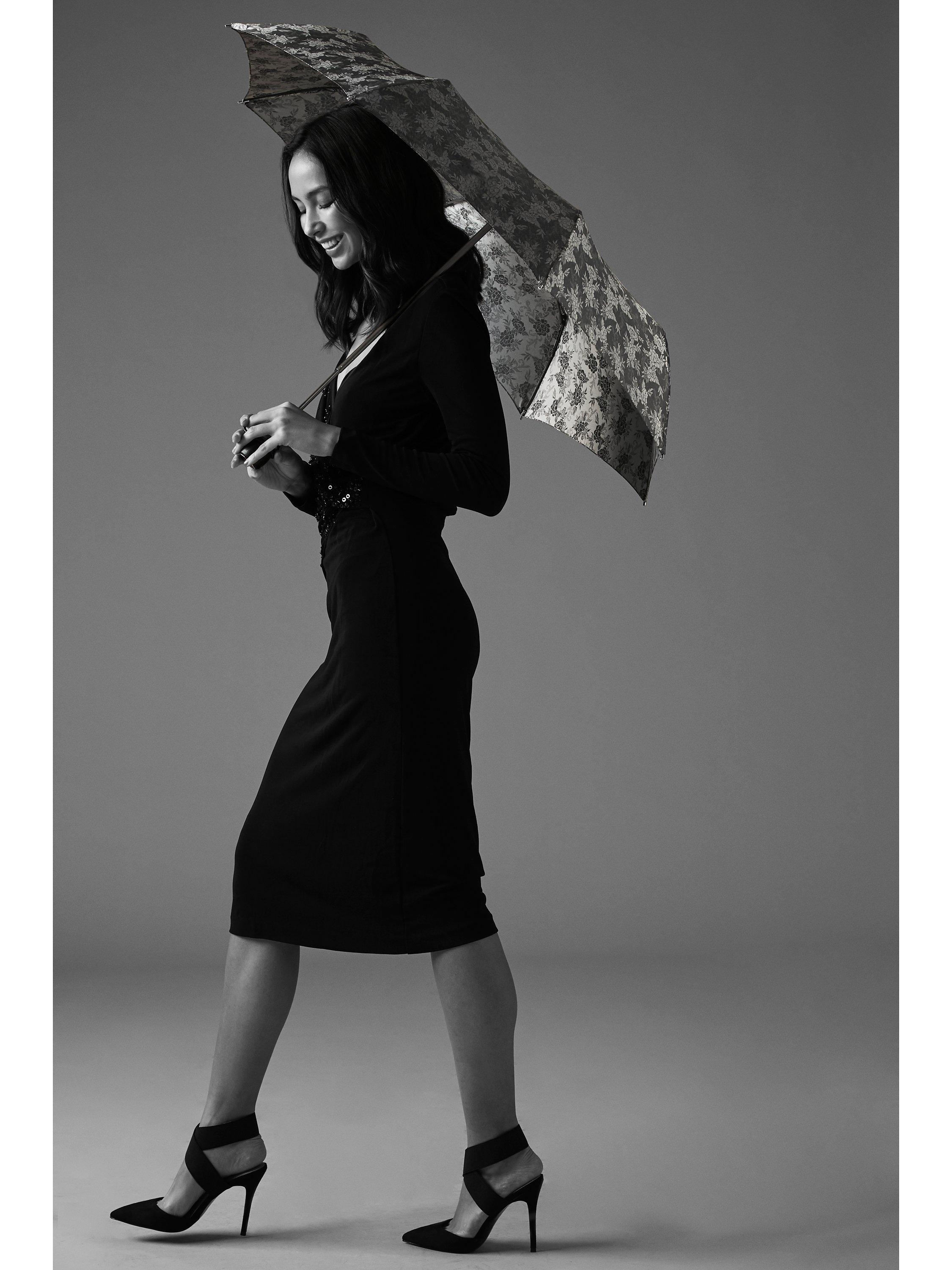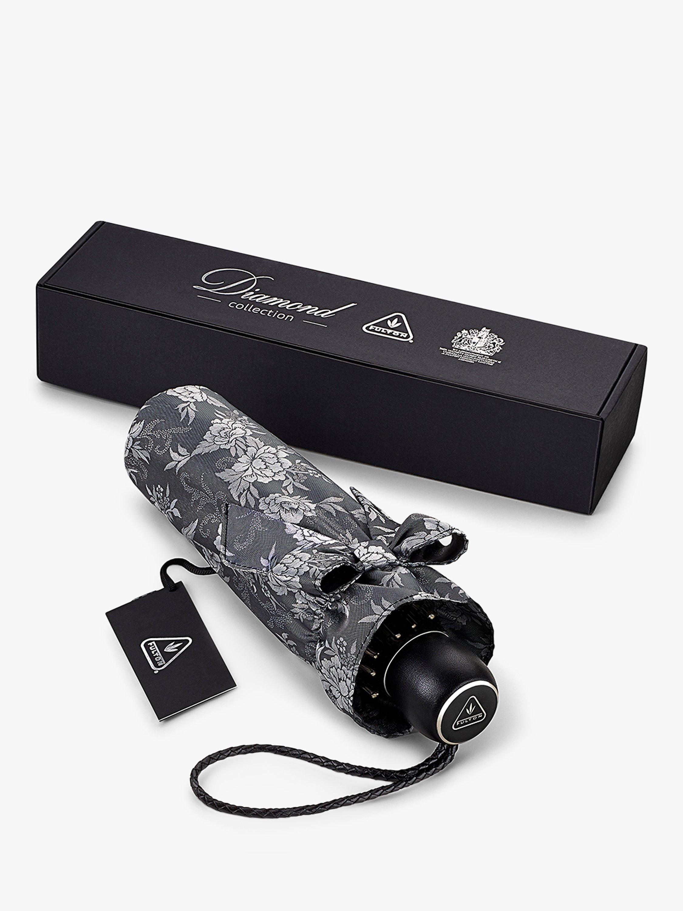 The jacquard finish makes it more design-led and the floral motif will offer a blooming touch to a rainy day. The umbrella also features a leather handle and an enamelled brand hardware. The frame is made from aluminium and fibreglass that combine strength with lightweight feel. Supplied with a matching fabric storage case with bow detail.