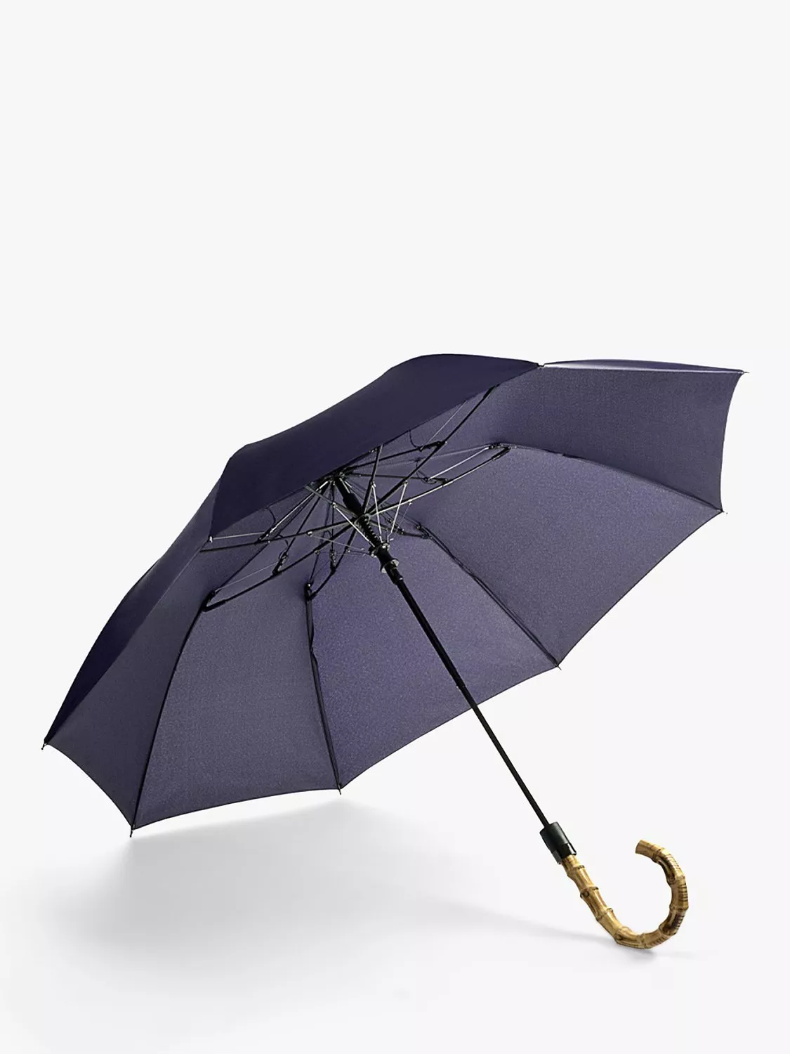 Luxurious Fulton umbrella with a comfortable genuine bamboo handle. Easy to operate with an automatic opening mechanism, it has a lightweight and flexible fibreglass frame for extra strength.
