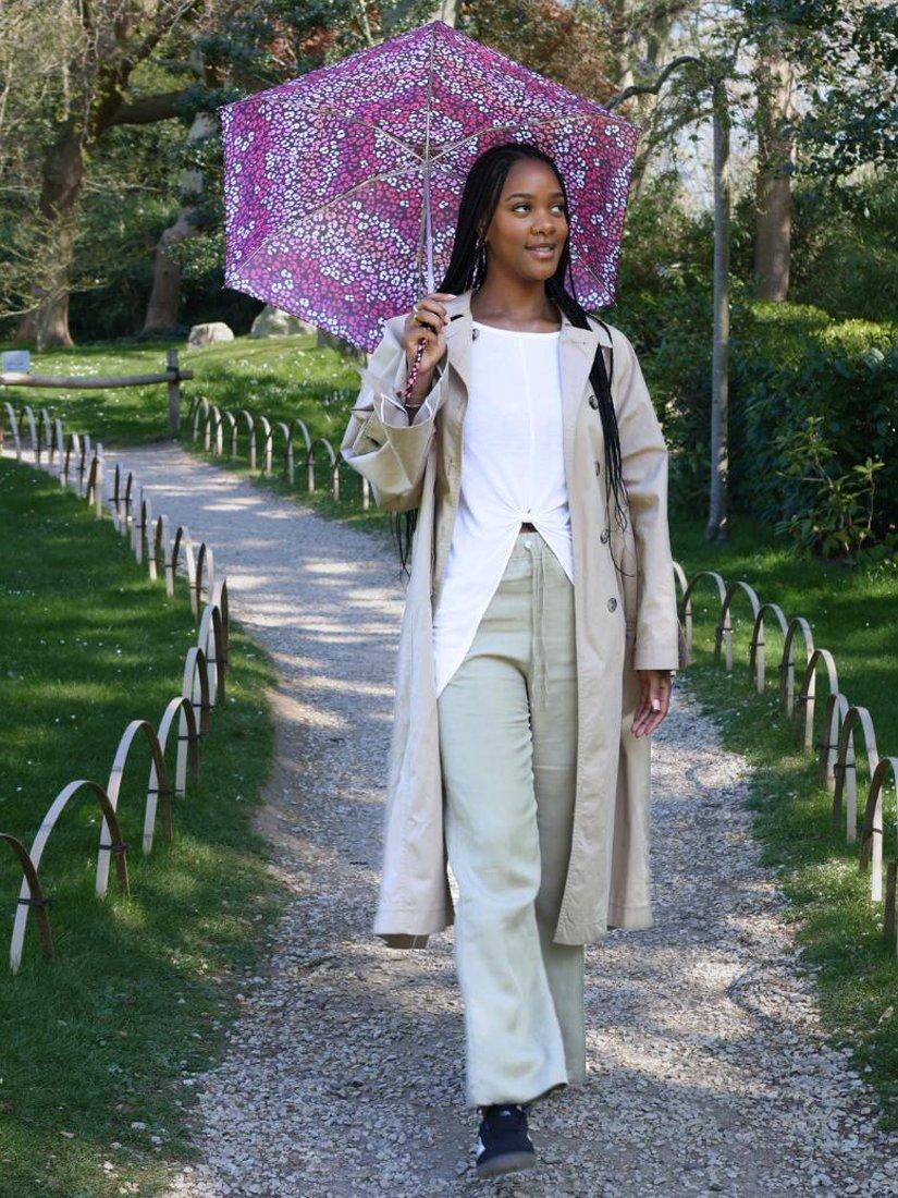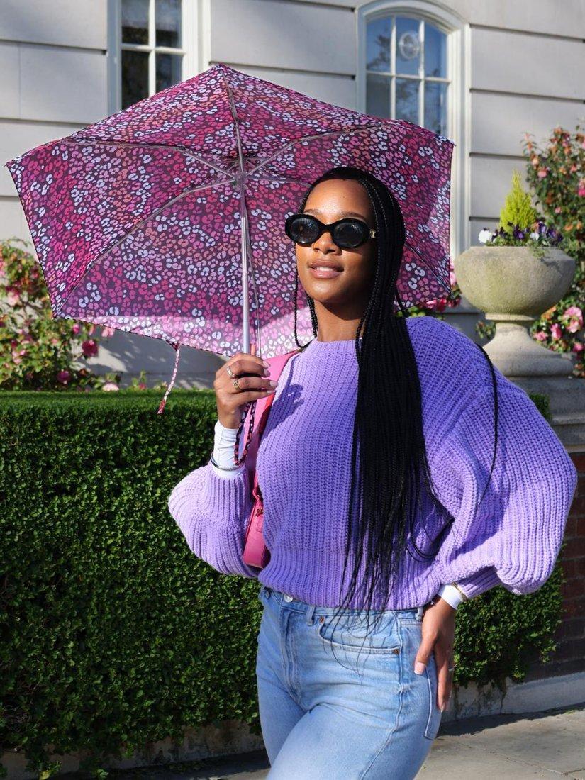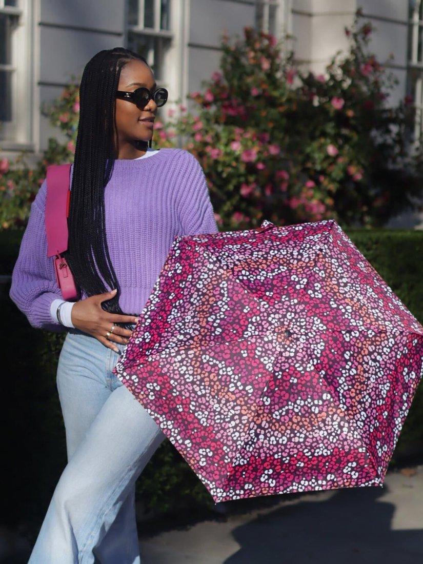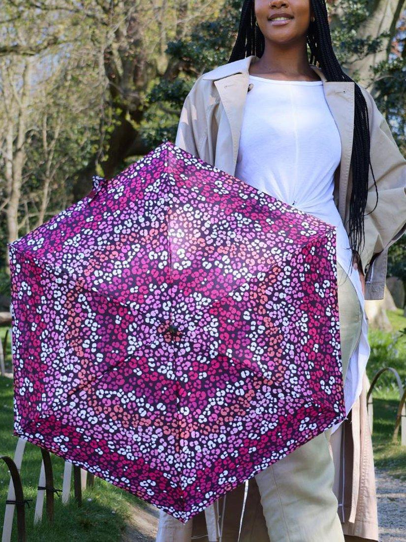 It is an incredibly compact and fashionable umbrella that fits easily into your handbag.