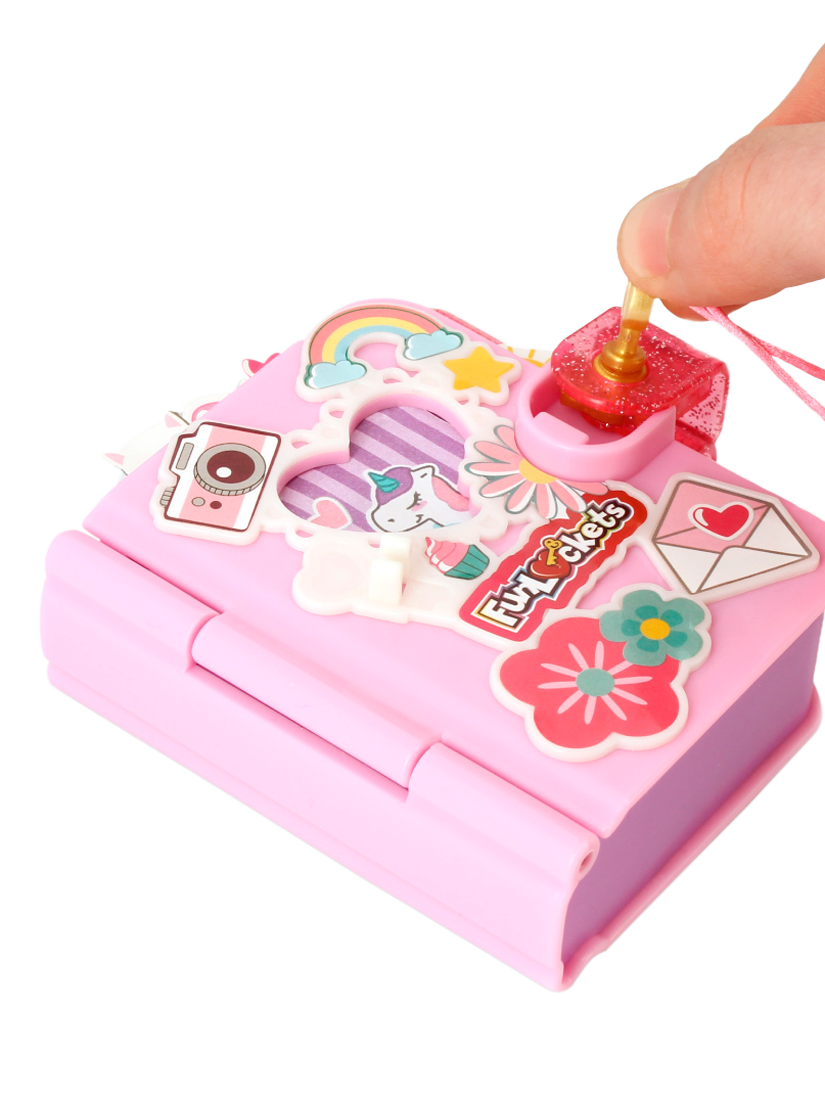 Find the key and unlock the mysteries! This tiny version of a secret journal lets you write and lock all your secrets inside. Decorate it with stickers and customize it with your own photo.
