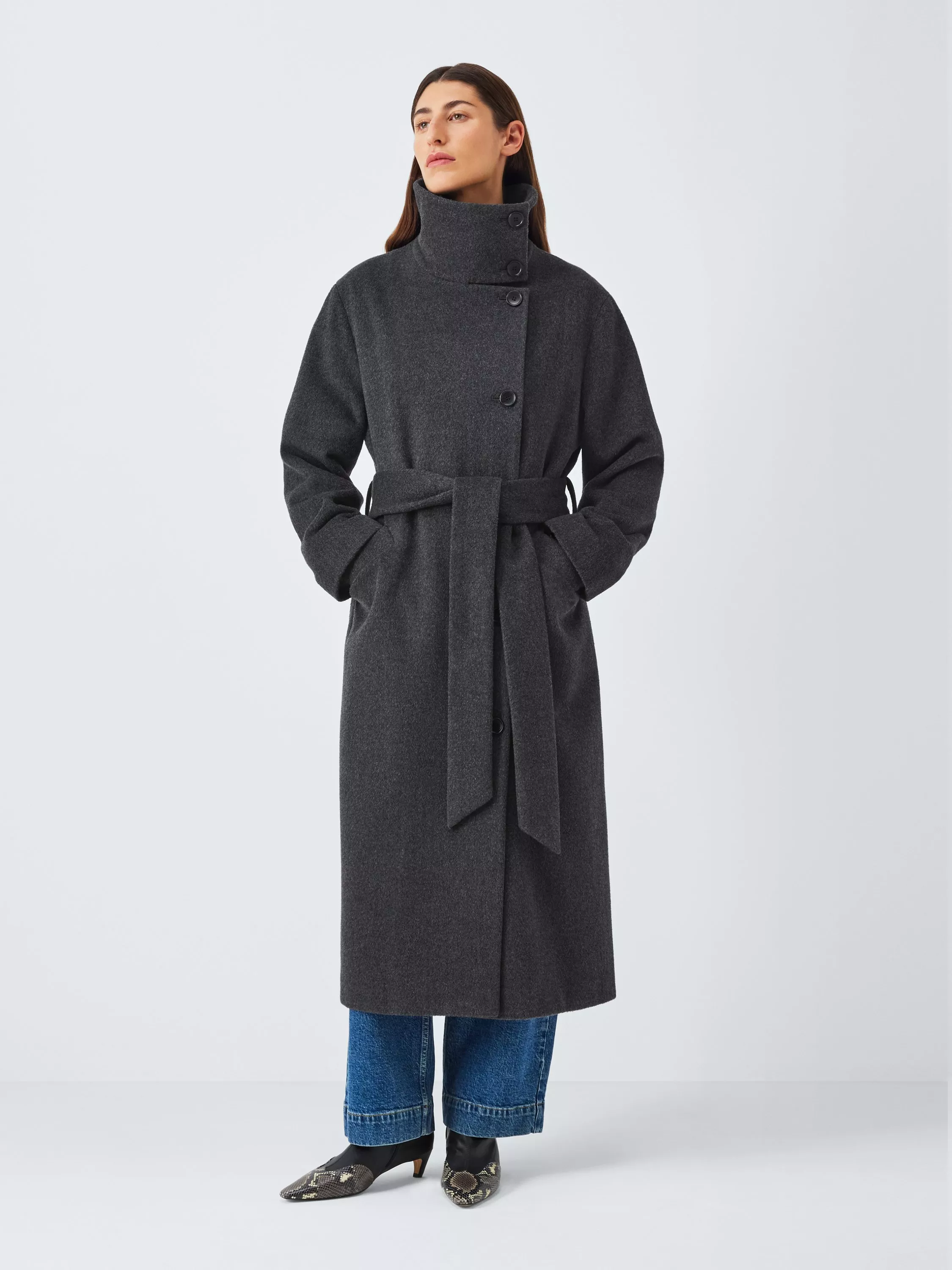 Craft a timeless and elegant look with this John Lewis wool overcoat. This long, plain-patterned coat features a sophisticated funnel neck and long sleeves.