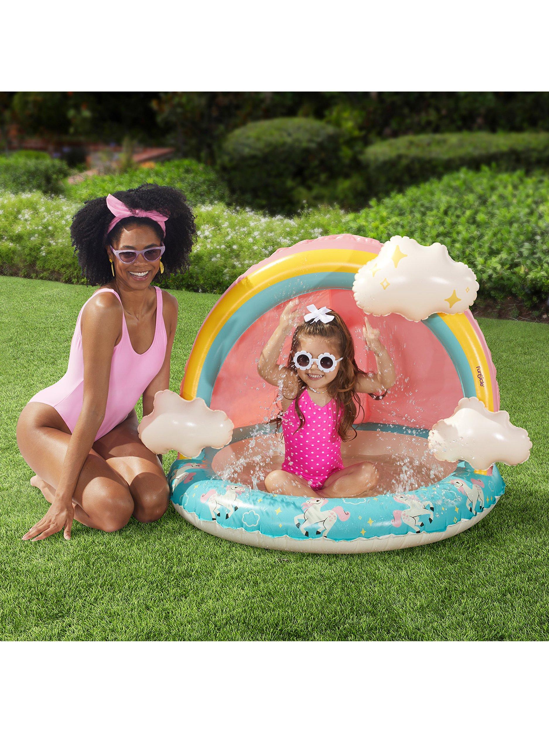 Make sure little ones are protected this summer with the Funsicle Rainbow Magic Shaded Pool. Enjoy a splashing session with additional shade, thanks to the draped canopy.