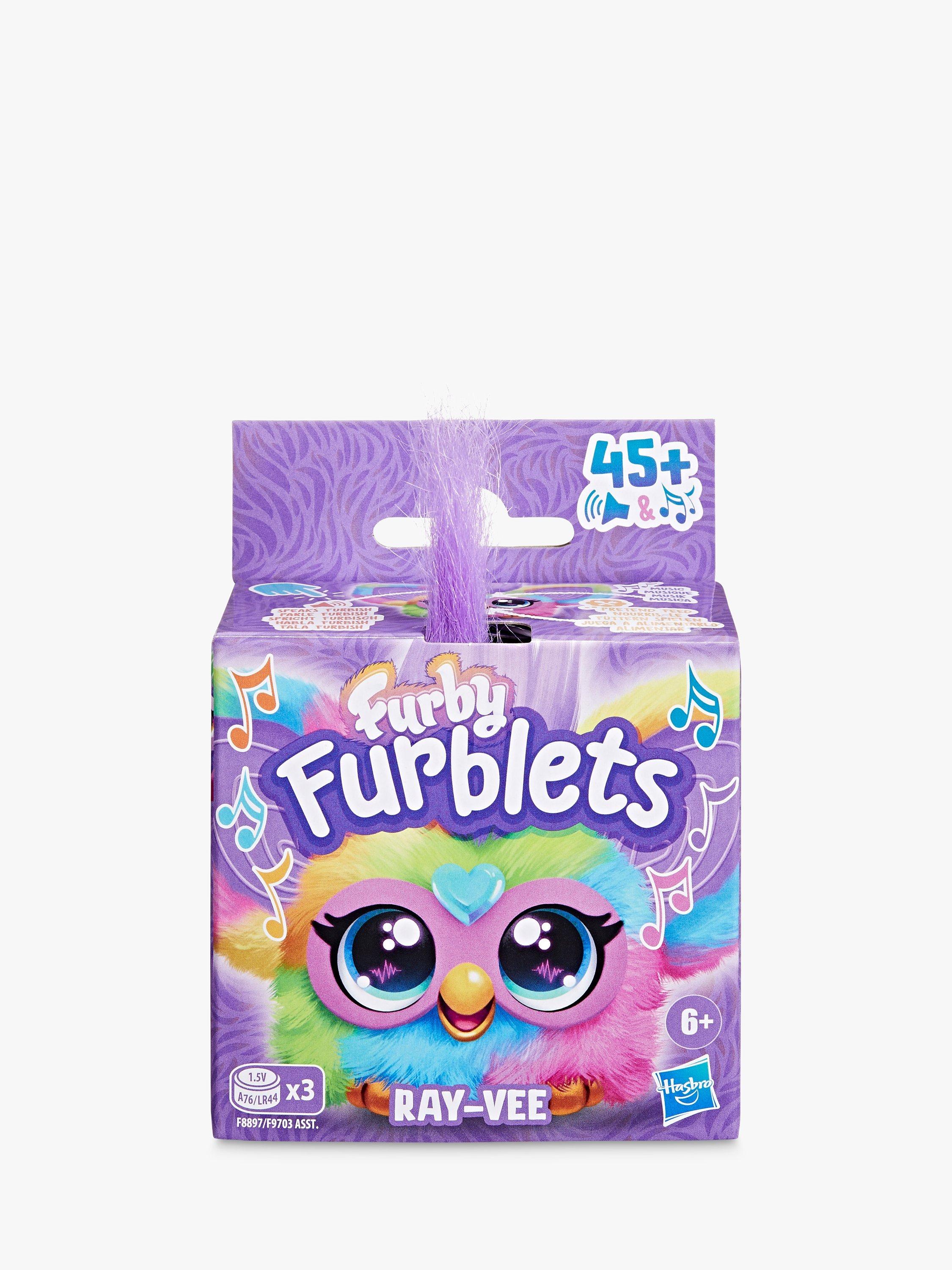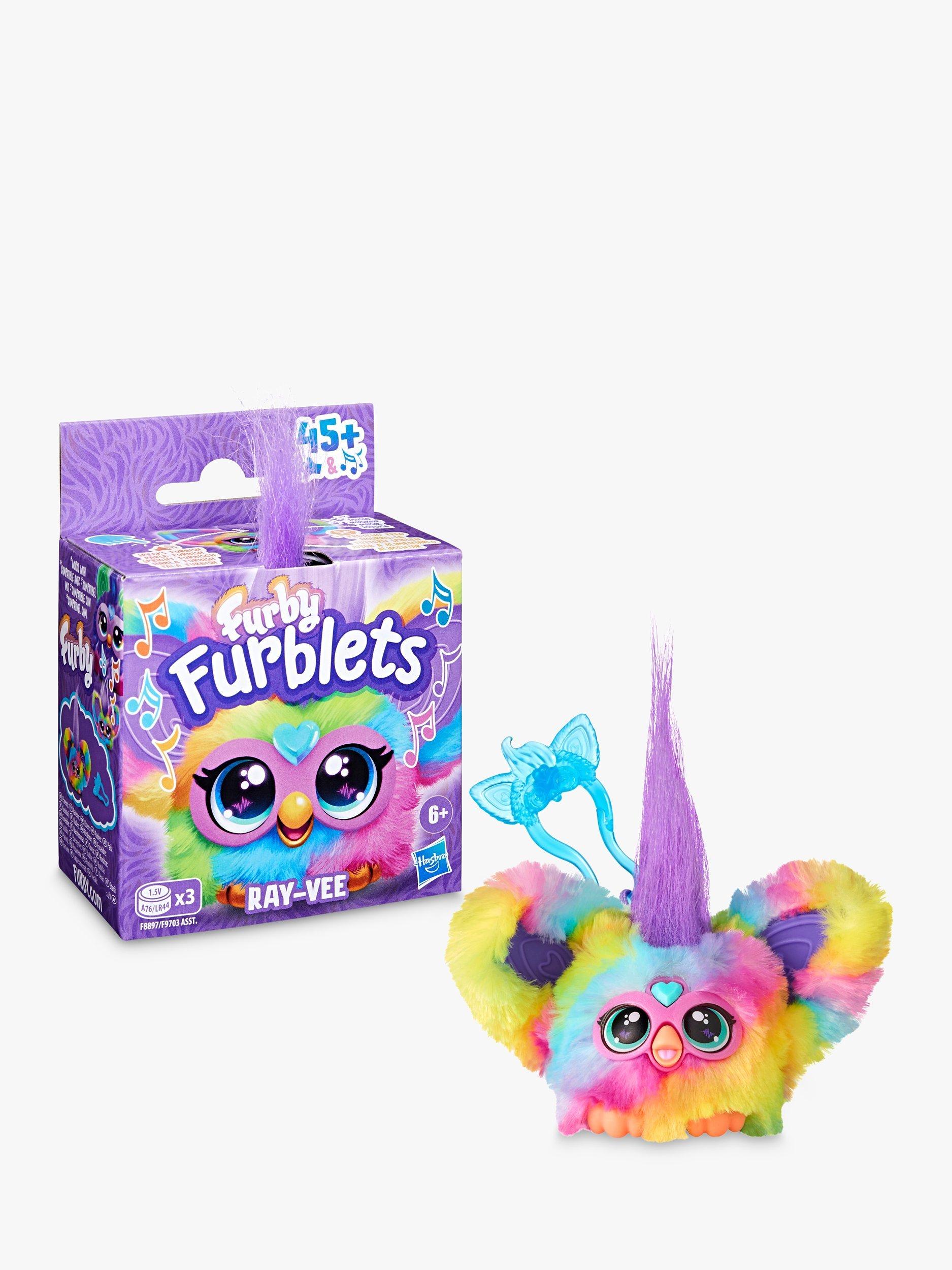 Share a smile and a jam session anywhere you go with these mini Furby electronic toys for girls and boys aged 6 years and up. With over 45 fun tunes, sounds and Furbish phrases to discover, these little friends are filled with big personalities. Ray-Vee has rainbow fur and plays electronica themed songs fit for a dance party. Clip them to a backpack or other travel bag with the keychain clip to bring the Furblets party anywhere you go.