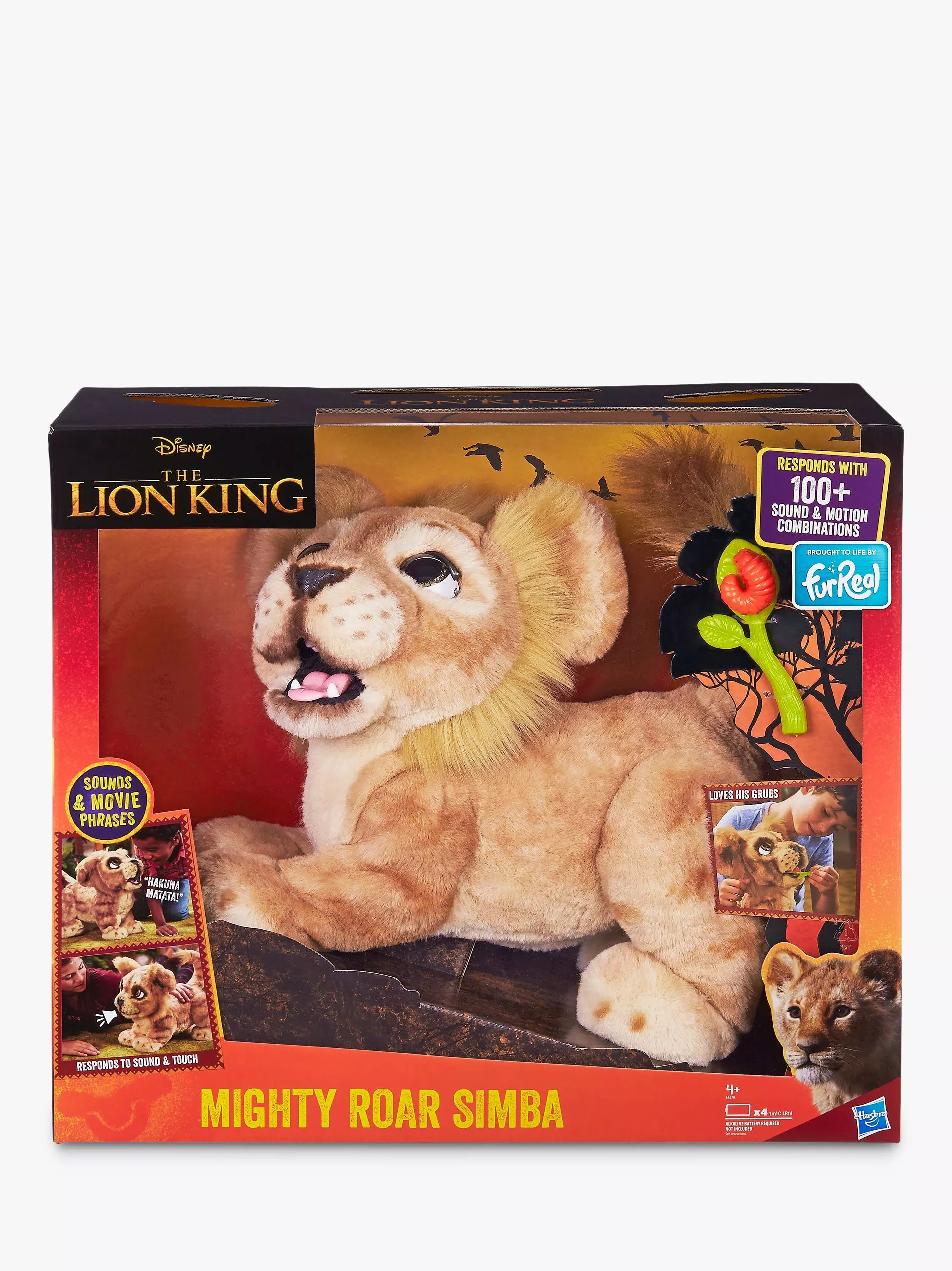 Simba responds to sound and has 100+ sound and motion combinations. Pat him on the head -- who knows what he’ll say or do? Talk to him, roar at him, and watch him react! Roar at each other (who’s the loudest?), play together and give him his treat (you may prefer, umm, a different snack for yourself!). And be sure to give your Pride Lands pal lots of hugs… after all, even a king likes to cuddle!