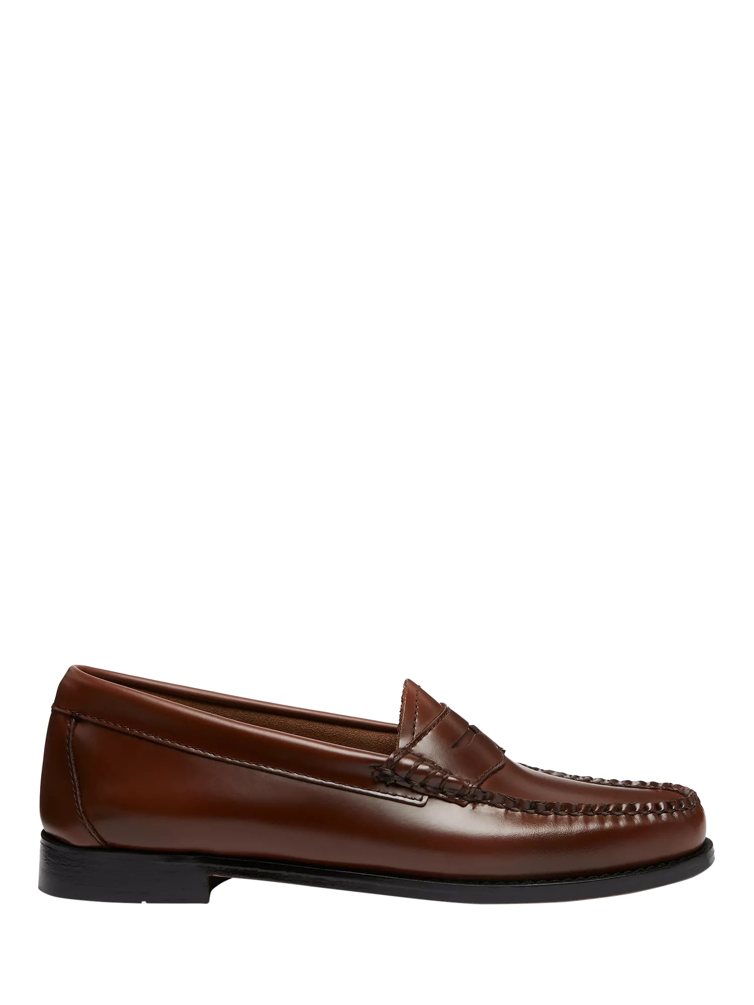 Meet the original women's Weejun Penny Loafers, in timeless cognac leather. The original is usually the best. In this case that phrase could not be truer. These Weejuns penny loafers are based on the original slip on design that G.H.BASS created more than 75 years ago, but look primed for today. The exceptional high quality and craftsmanship are evident in every stitch, from the exquisite unlined glossy cognac polished leather uppers to the subtle gold foiled embossed branded footbeds. This unmistakable shape is a force to be reckoned with, adding an authoritative note to every great outfit.