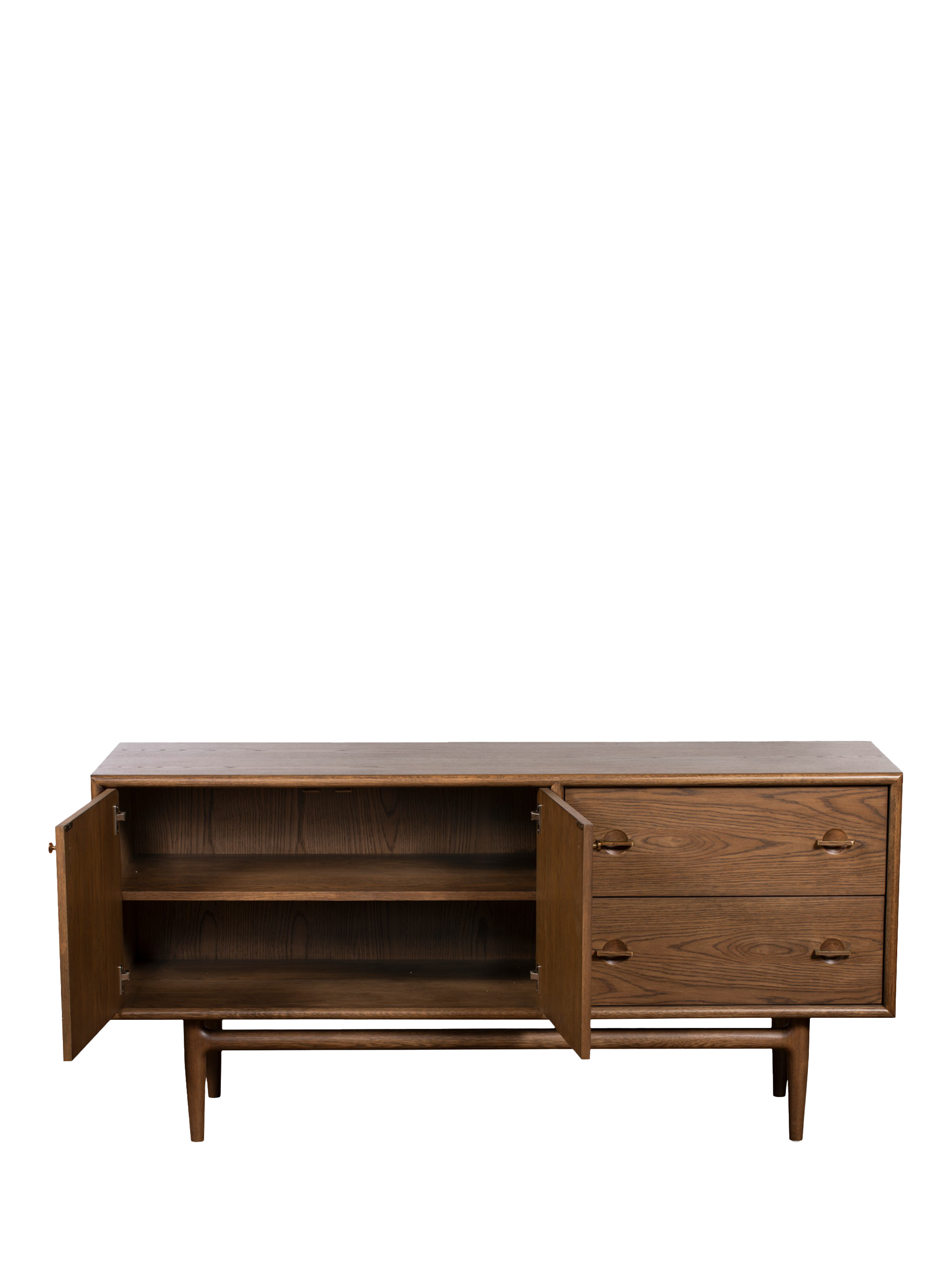 Henley Dining by G Plan Cabinet is a beautiful statement design with a mid-century feel. Elegant features include turned, tapered legs, bevelled edges, and distinctive handles. Crafted from medium-tone oak, each piece showcases the natural grain features that infuse warmth into any setting.