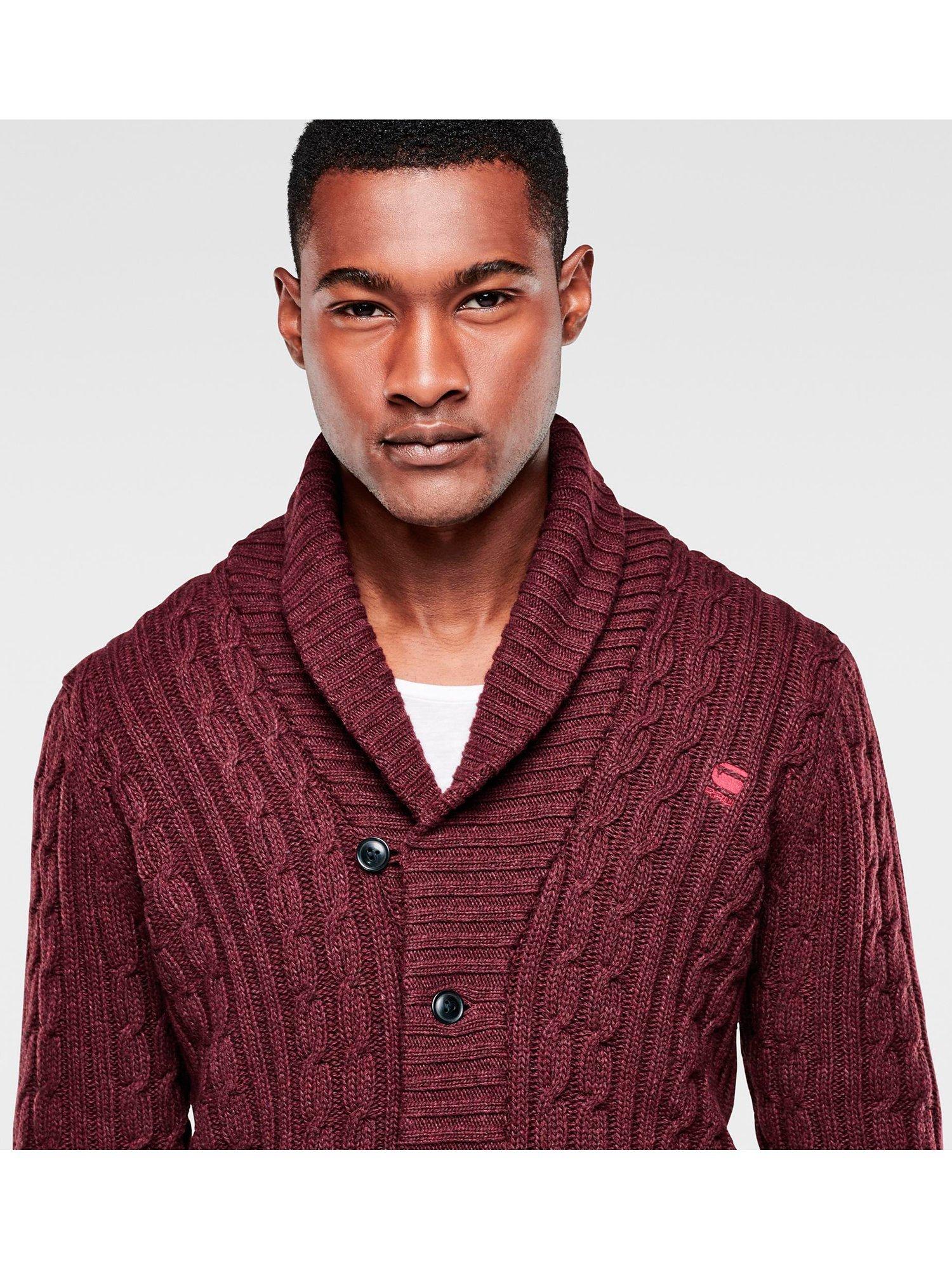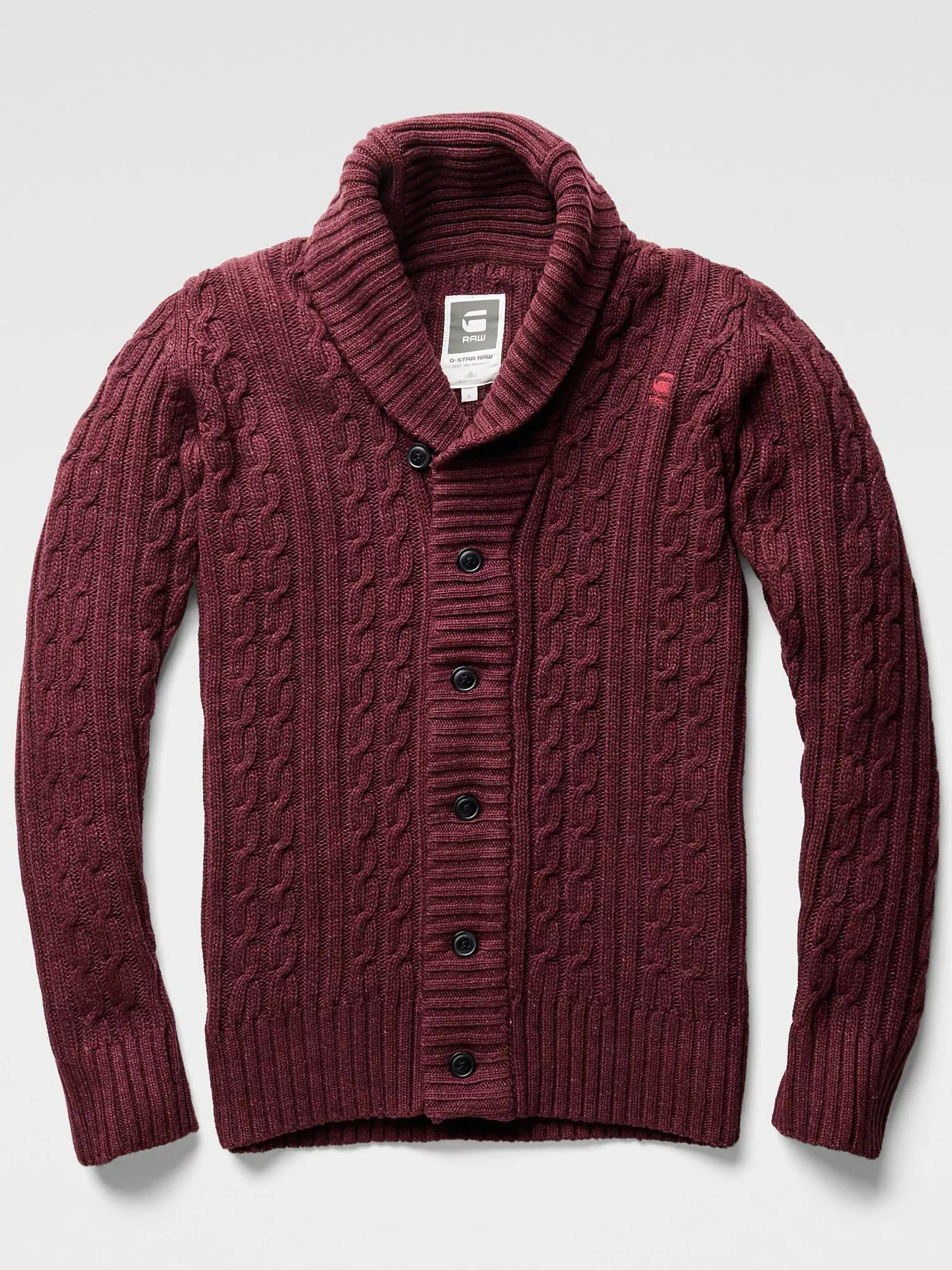 Designed in traditional cable knit style and fitted with a contemporary shawl neck, it's perfect to smarten up your casual ensemble during your weekend down time. Complete with contrasting black button detail for fastening and the instantly recognisable G-Star logo in between the left breast and shoulder.