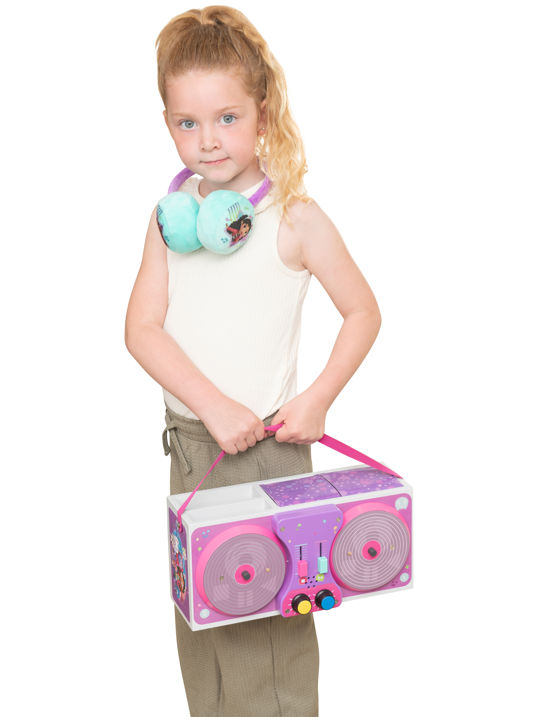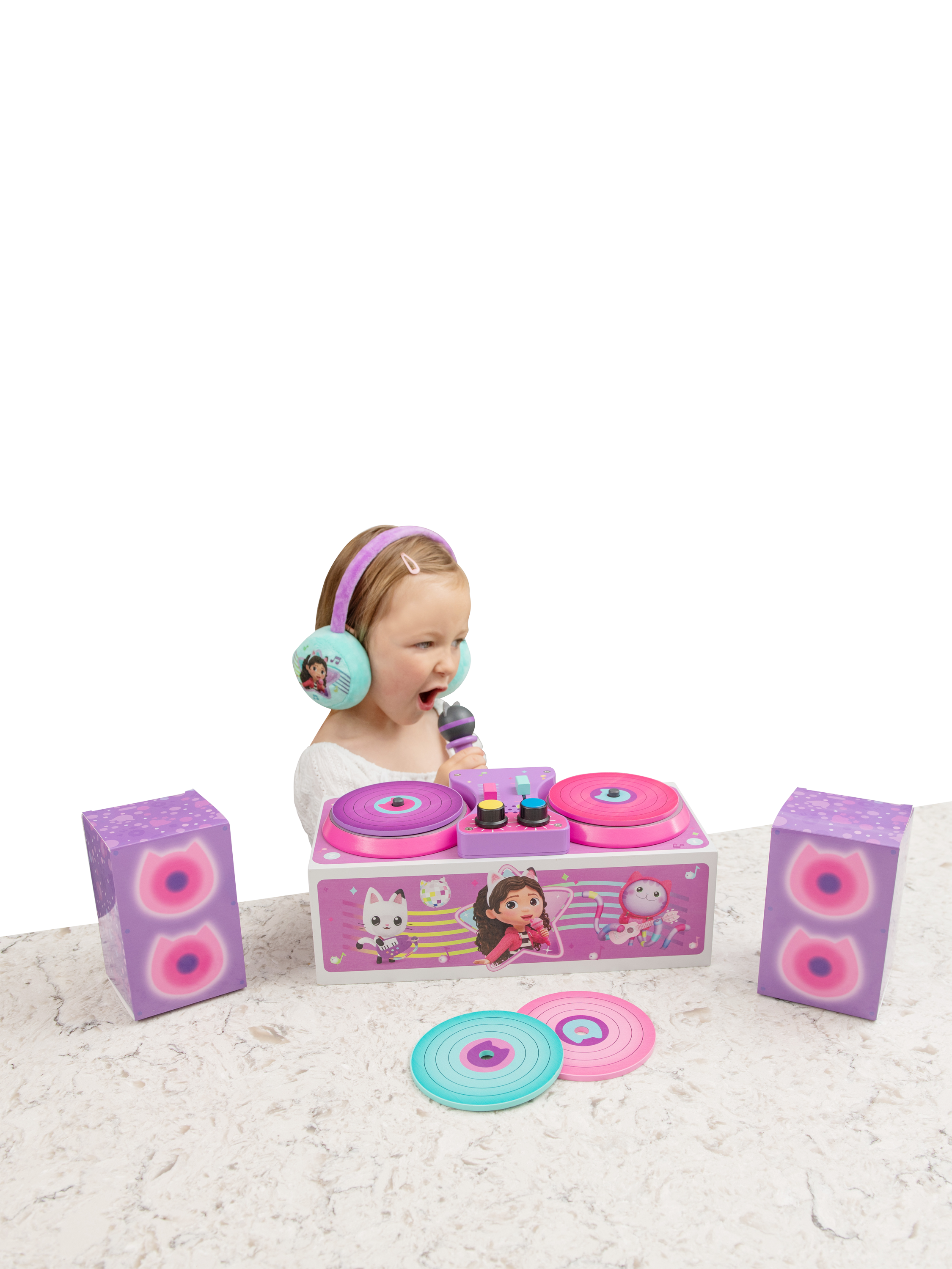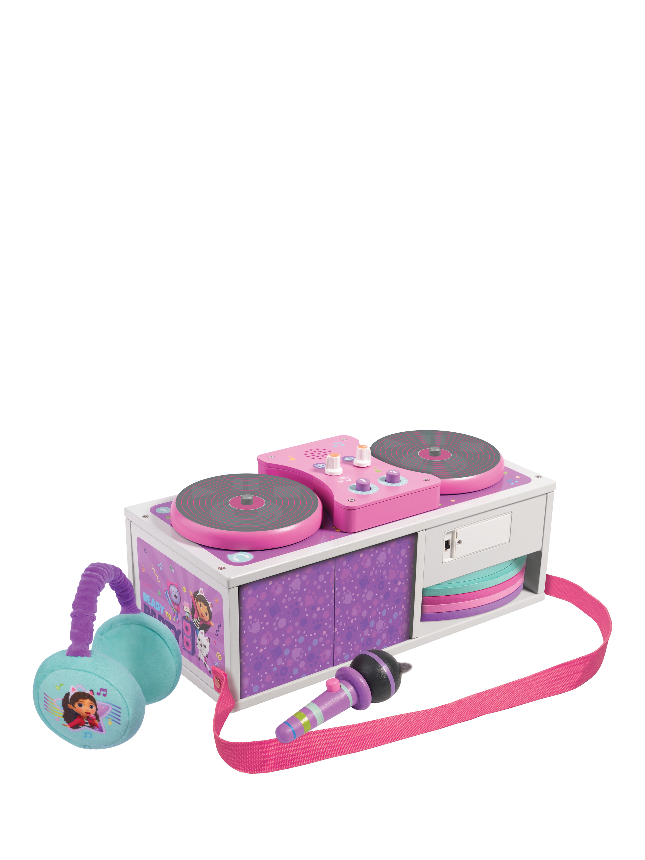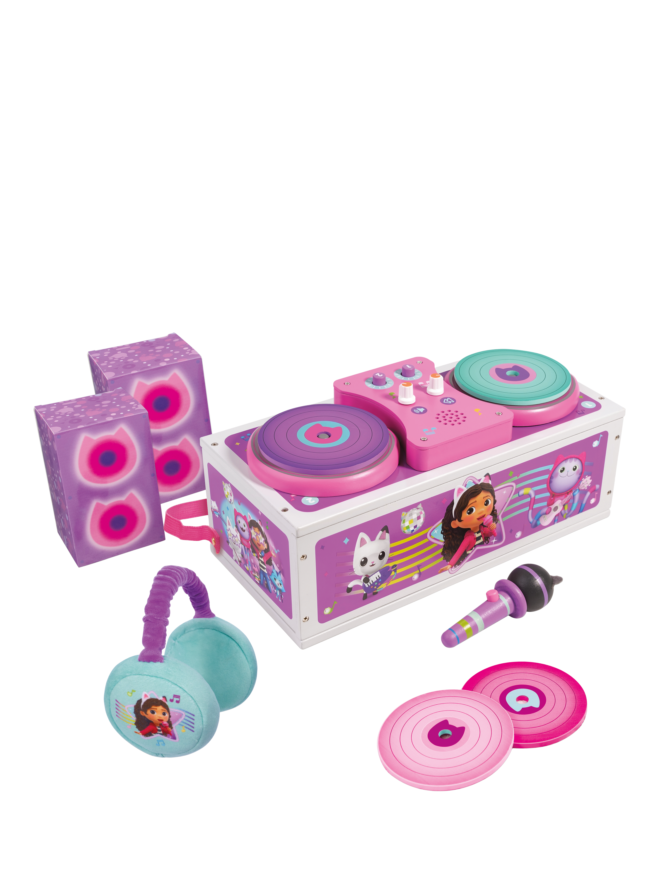 Shout out to young budding DJs! Start their DJ journey with this fabulous set which contains a deck with sound, a set of headphones, a microphone, four records and a pair of speakers. Once your little MC has finished everything packs up into a boombox! Perfect for musical Gabby fans.