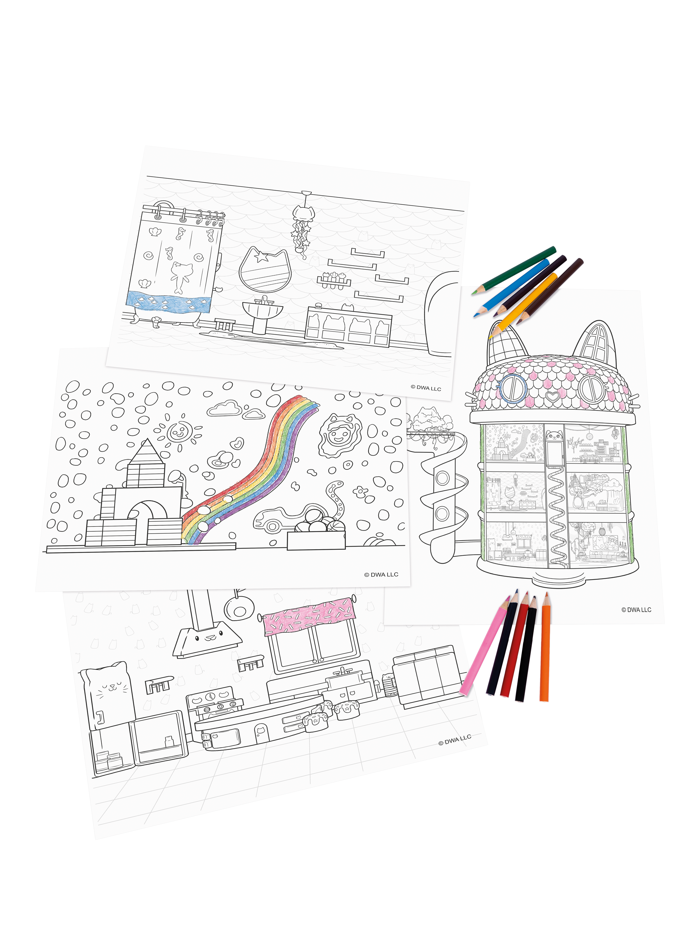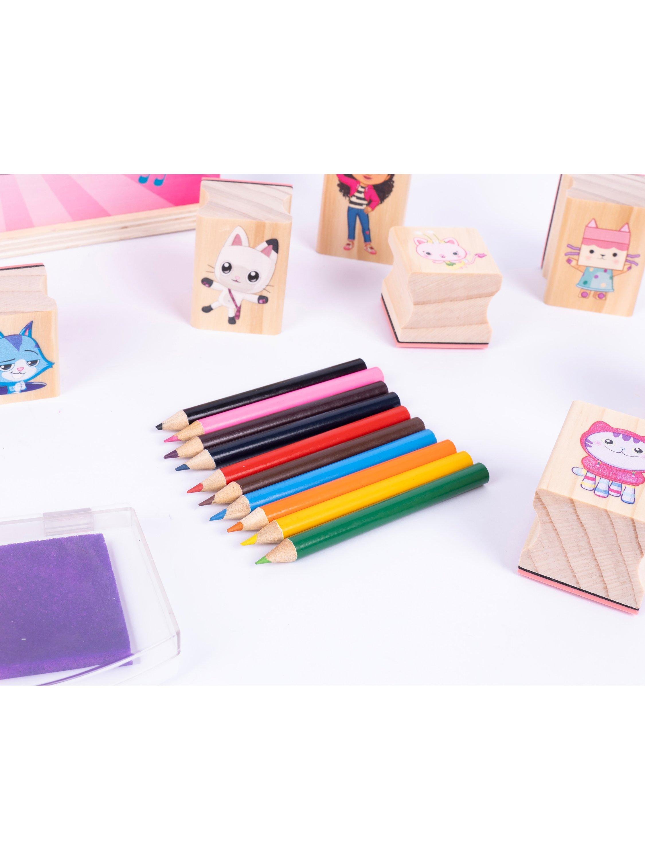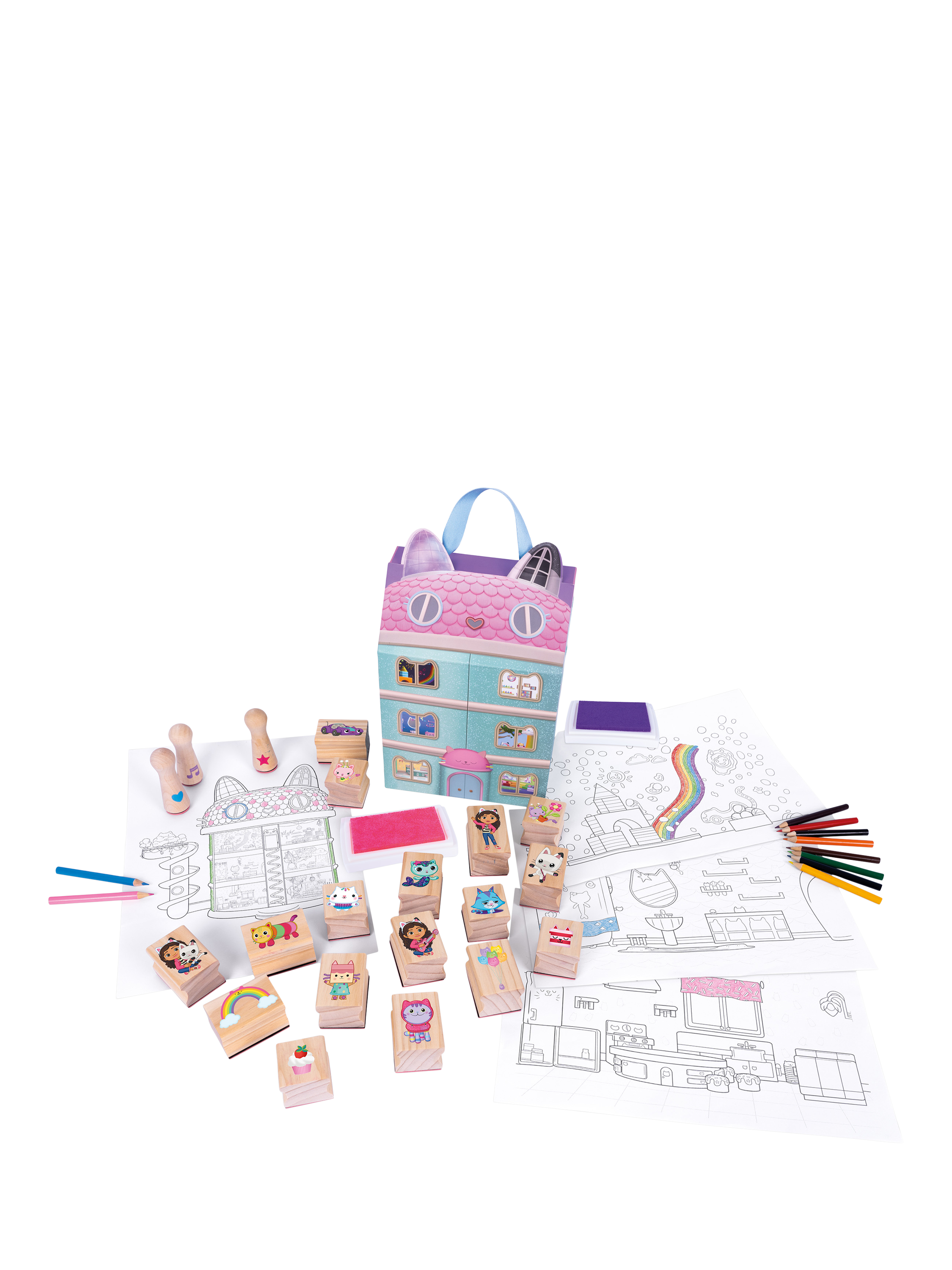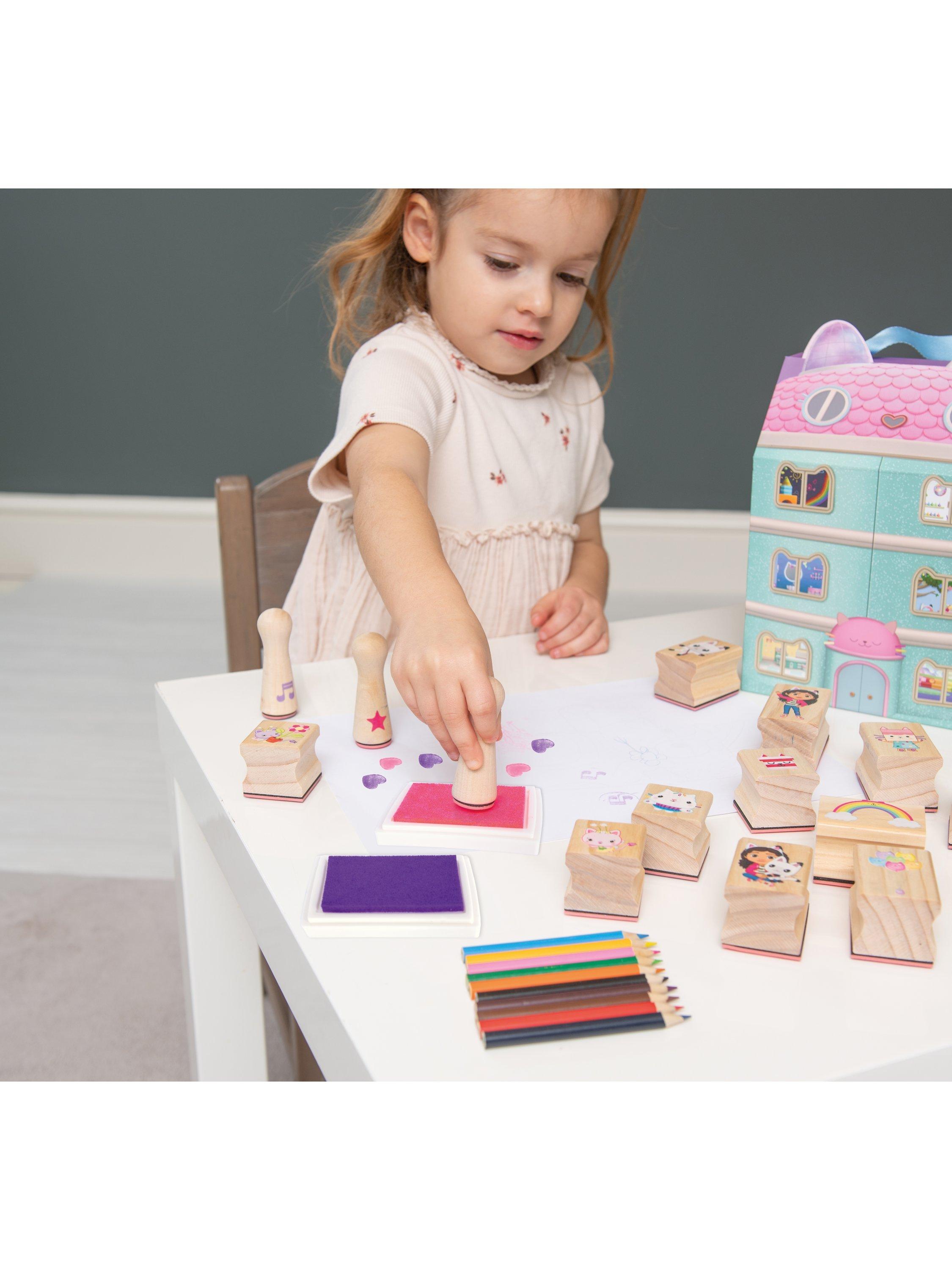 Craft-loving Gabby fans will adore this wonderful stamp craft set. This gorgeous keepsake box designed in the shape of Gabby's Dollhouse has two drawers housing 20 different Gabby and friends designs, ink pad, pencils and colouring sheets. Once creative play is over, everything fits neatly back into the storage box. Great for at-home or on-the-go play.