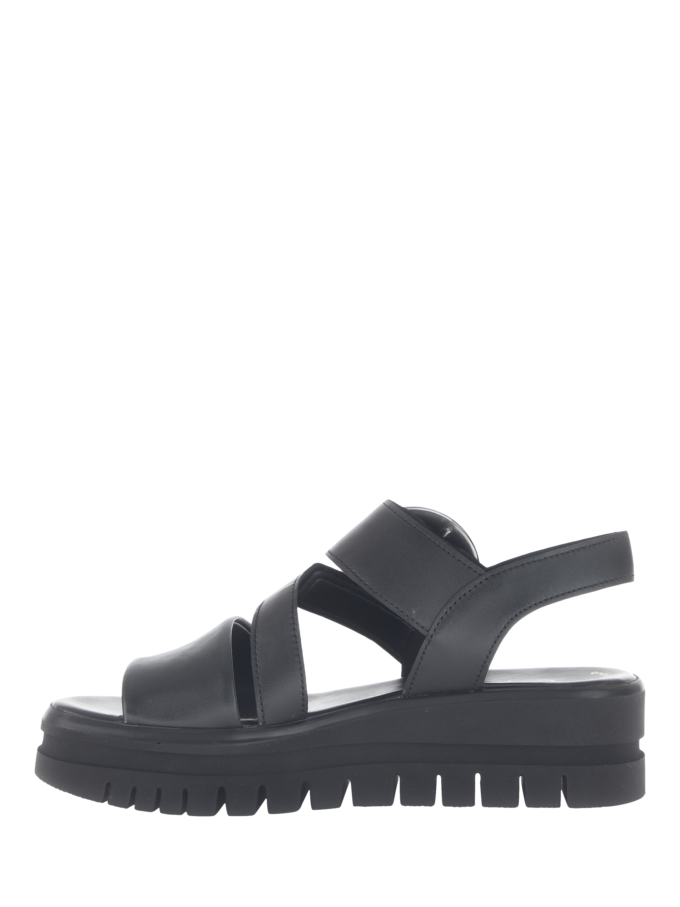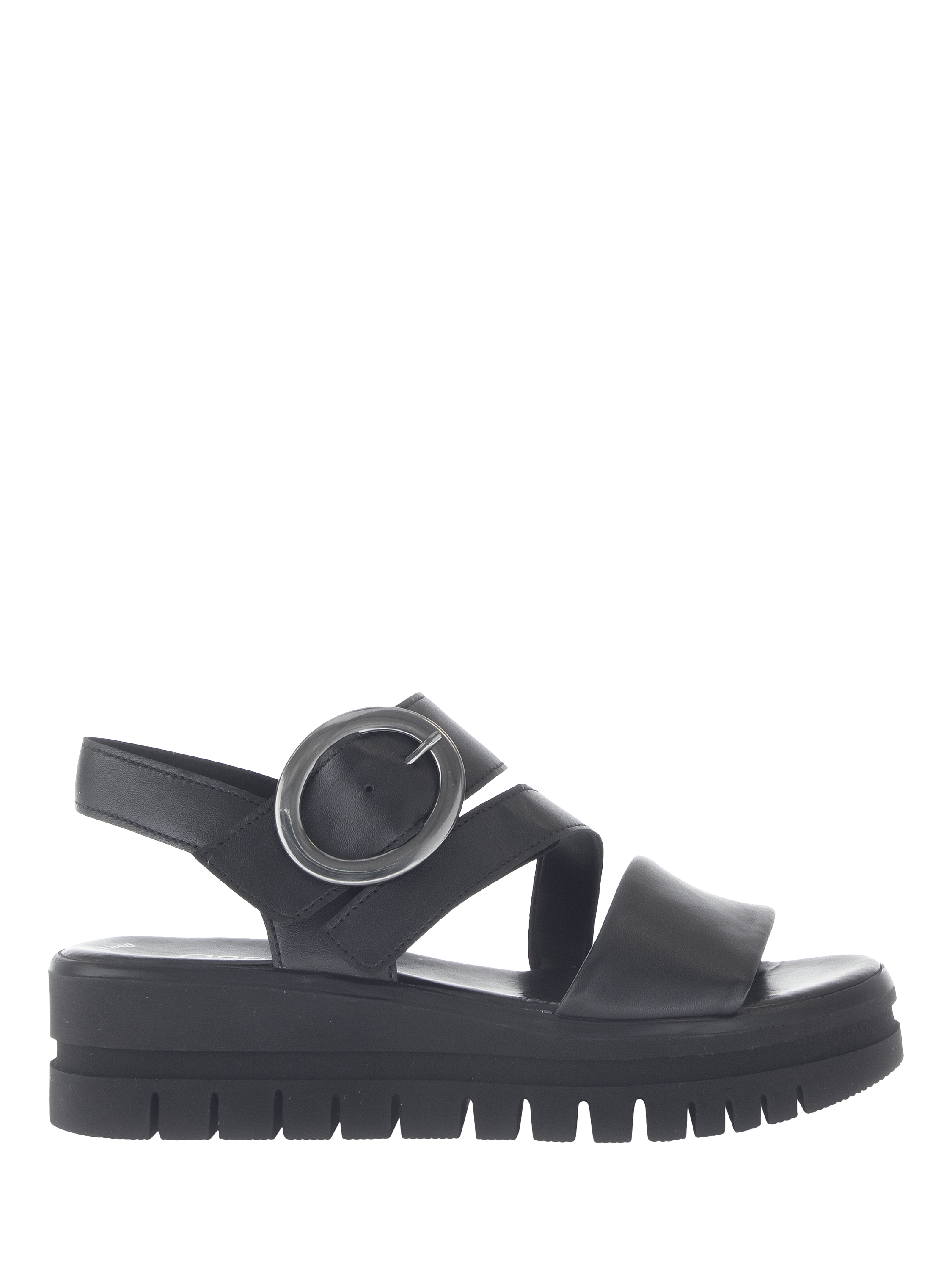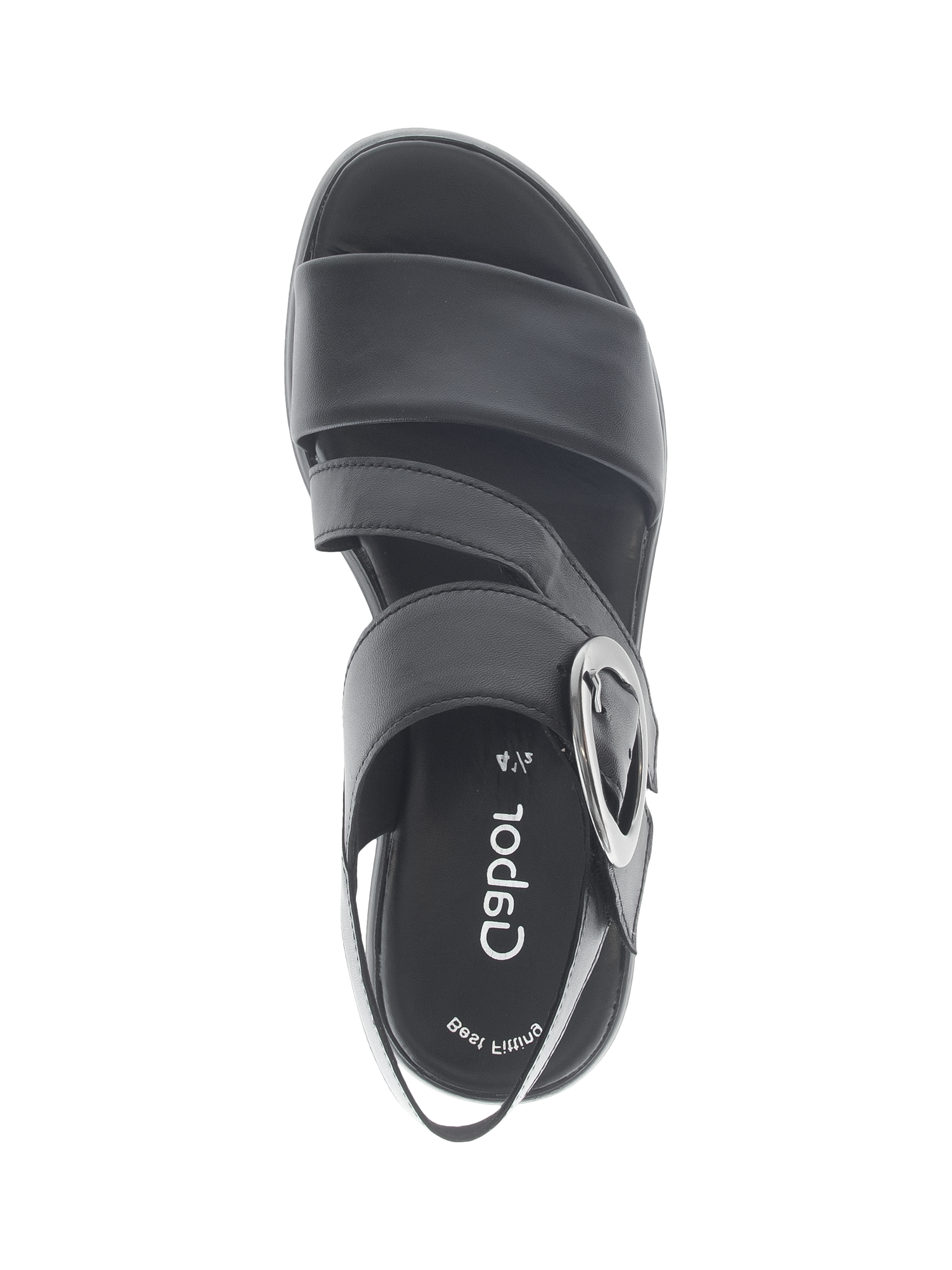 A strappy slingback flatform sandal with a large buckle detail trim hiding a riptape fastening and incorporating Gabor's Best Fitting technology.