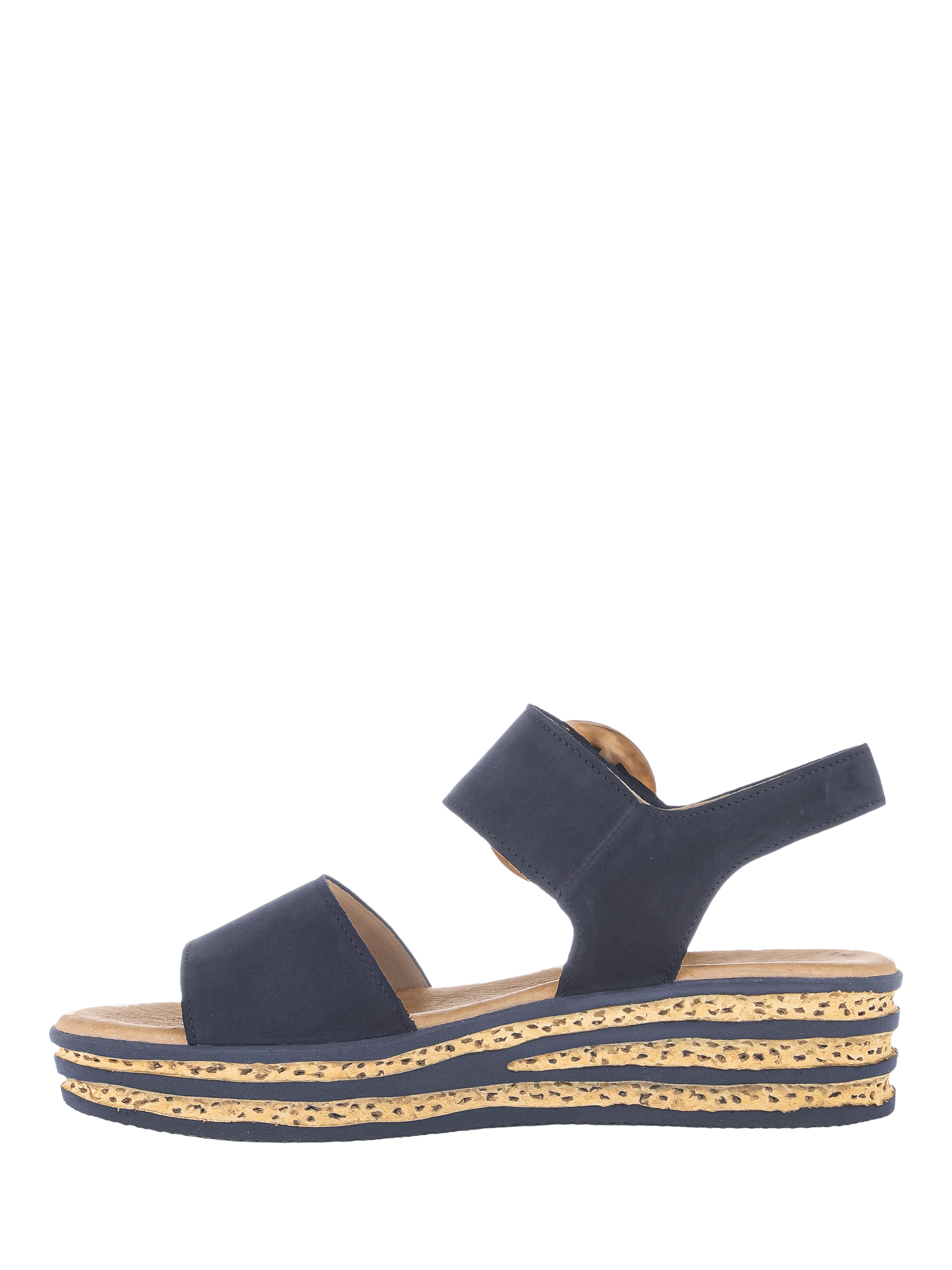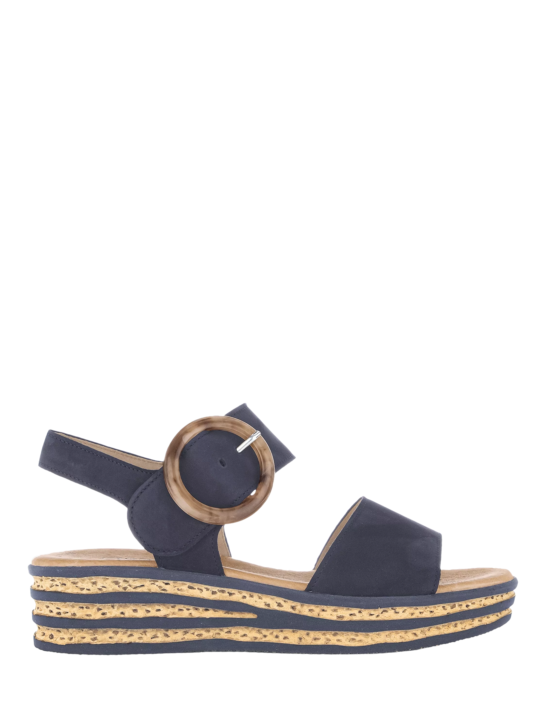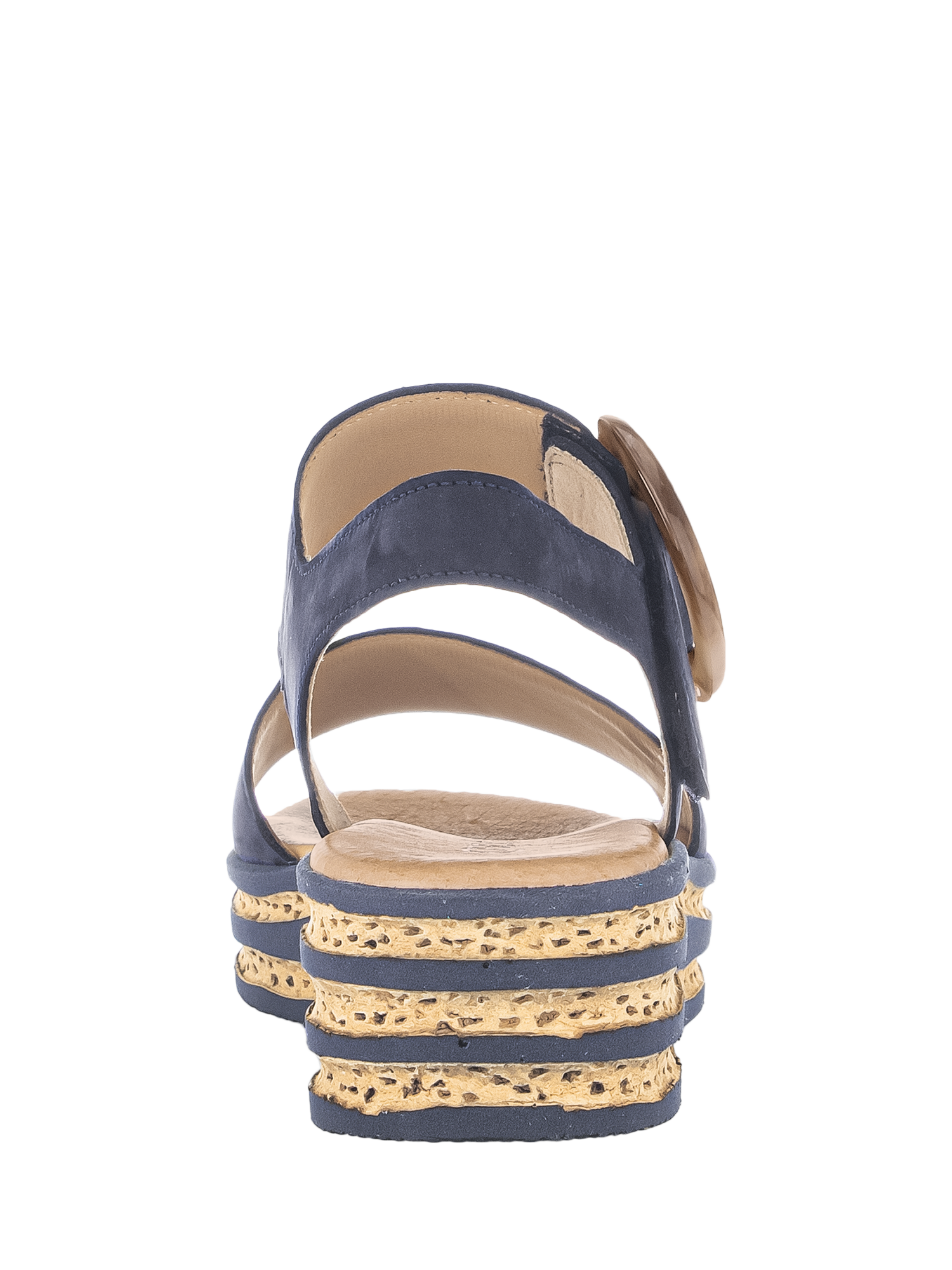 A fashion sandal with rip tape fastening hidden behind a large decorative buckle detail encorporating Gabor's Best Fitting technology.