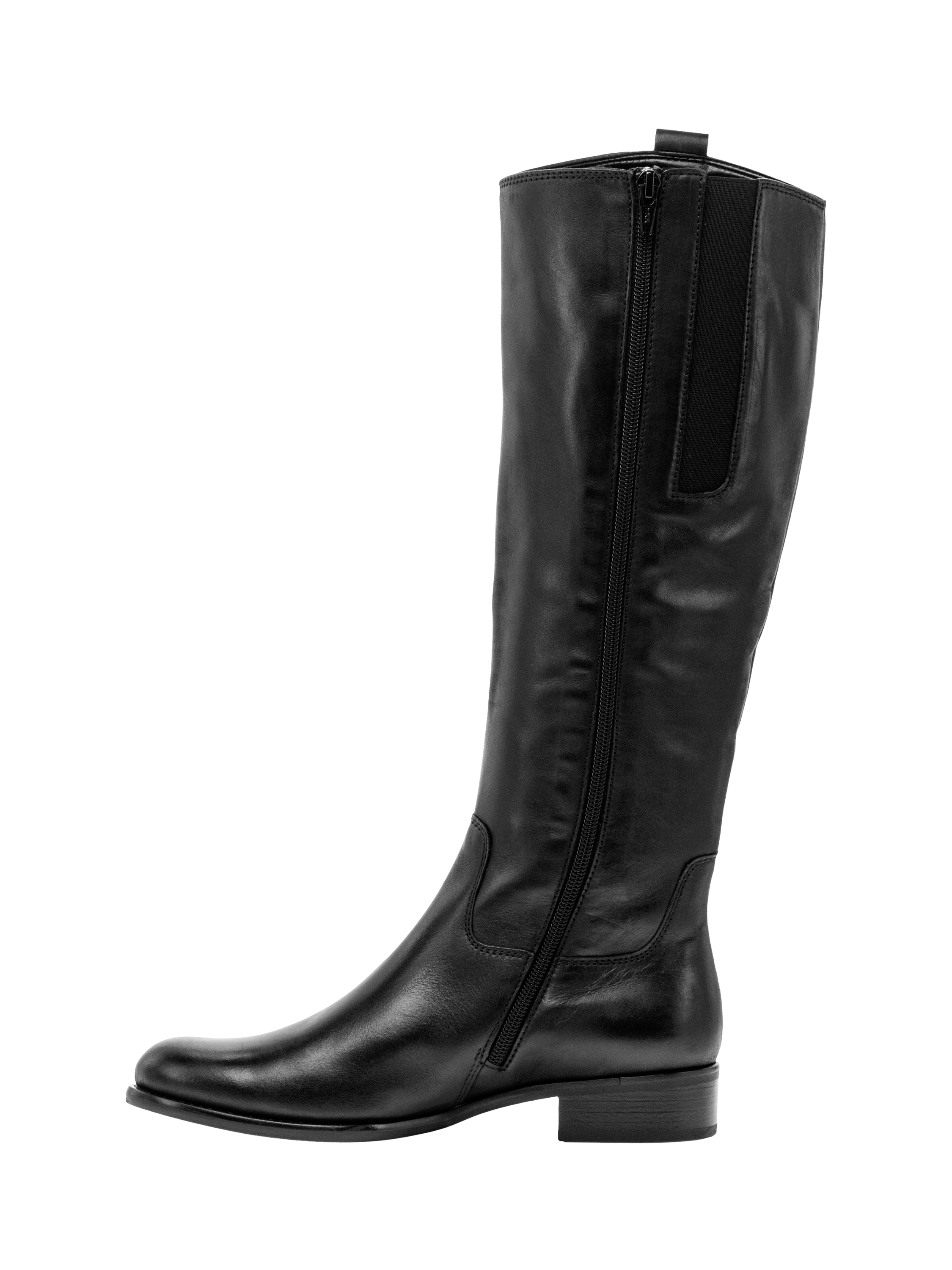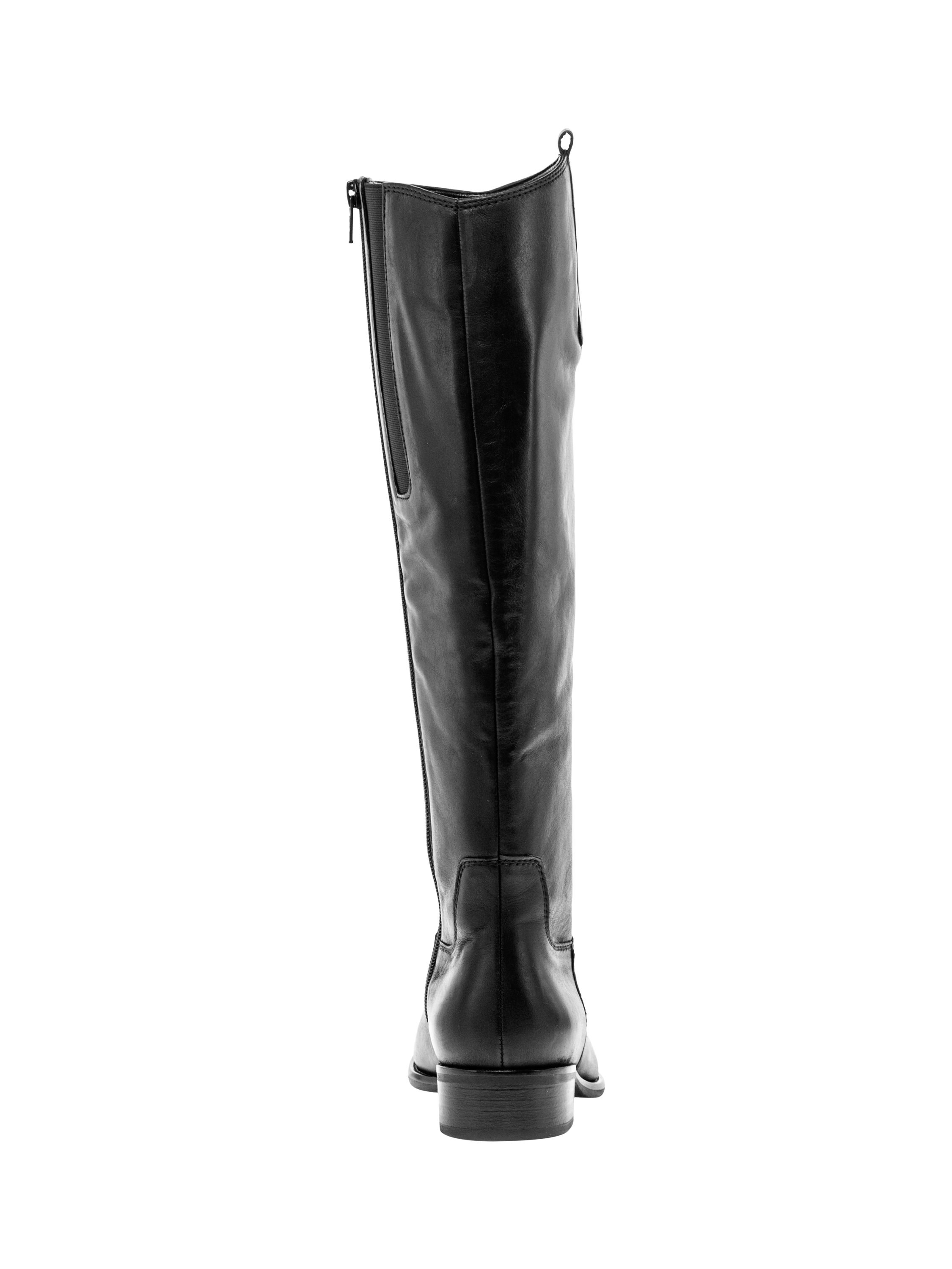 A long suede riding style boot with side zip fastening, sitting on a block heel in a medium fit.