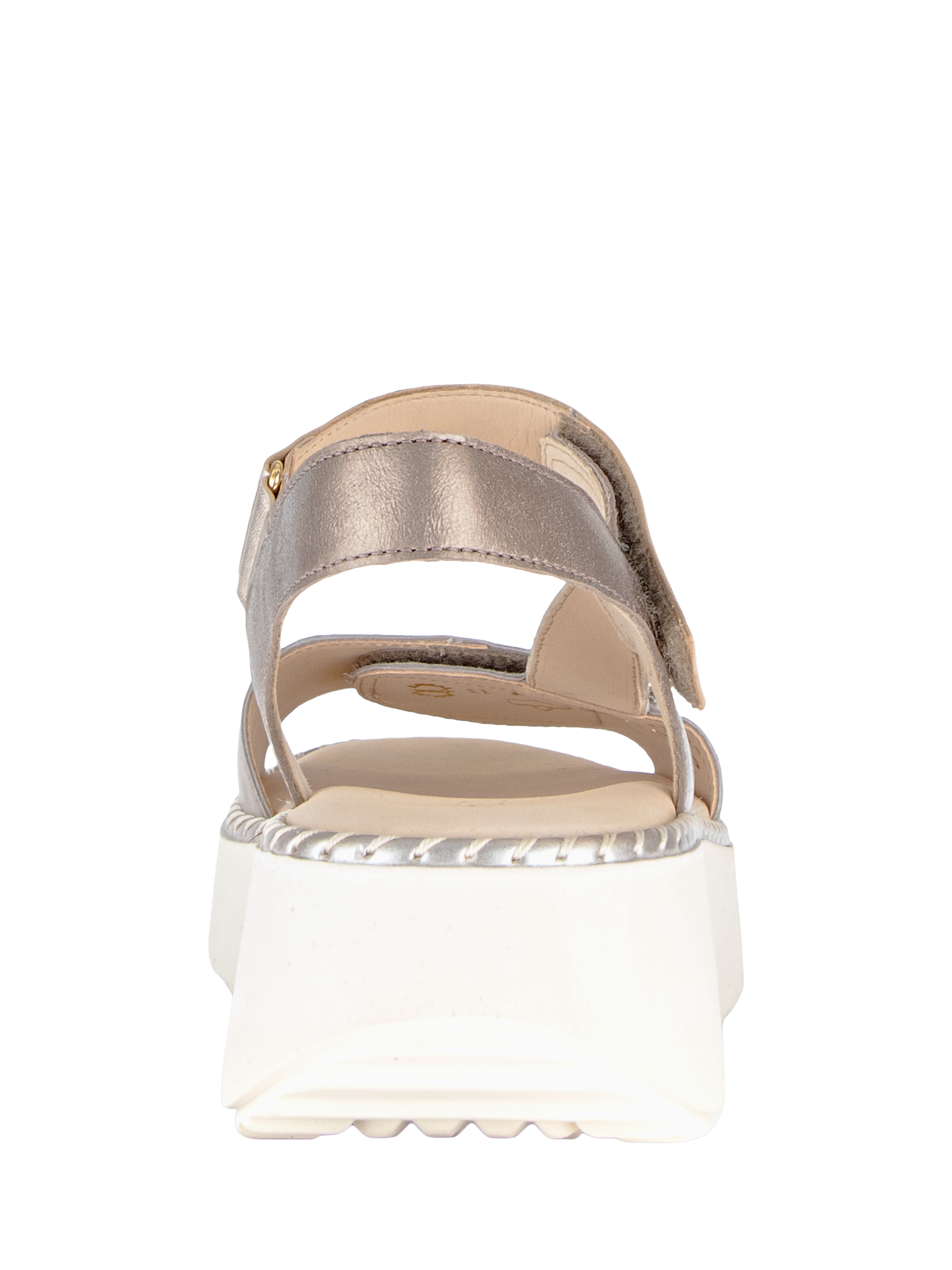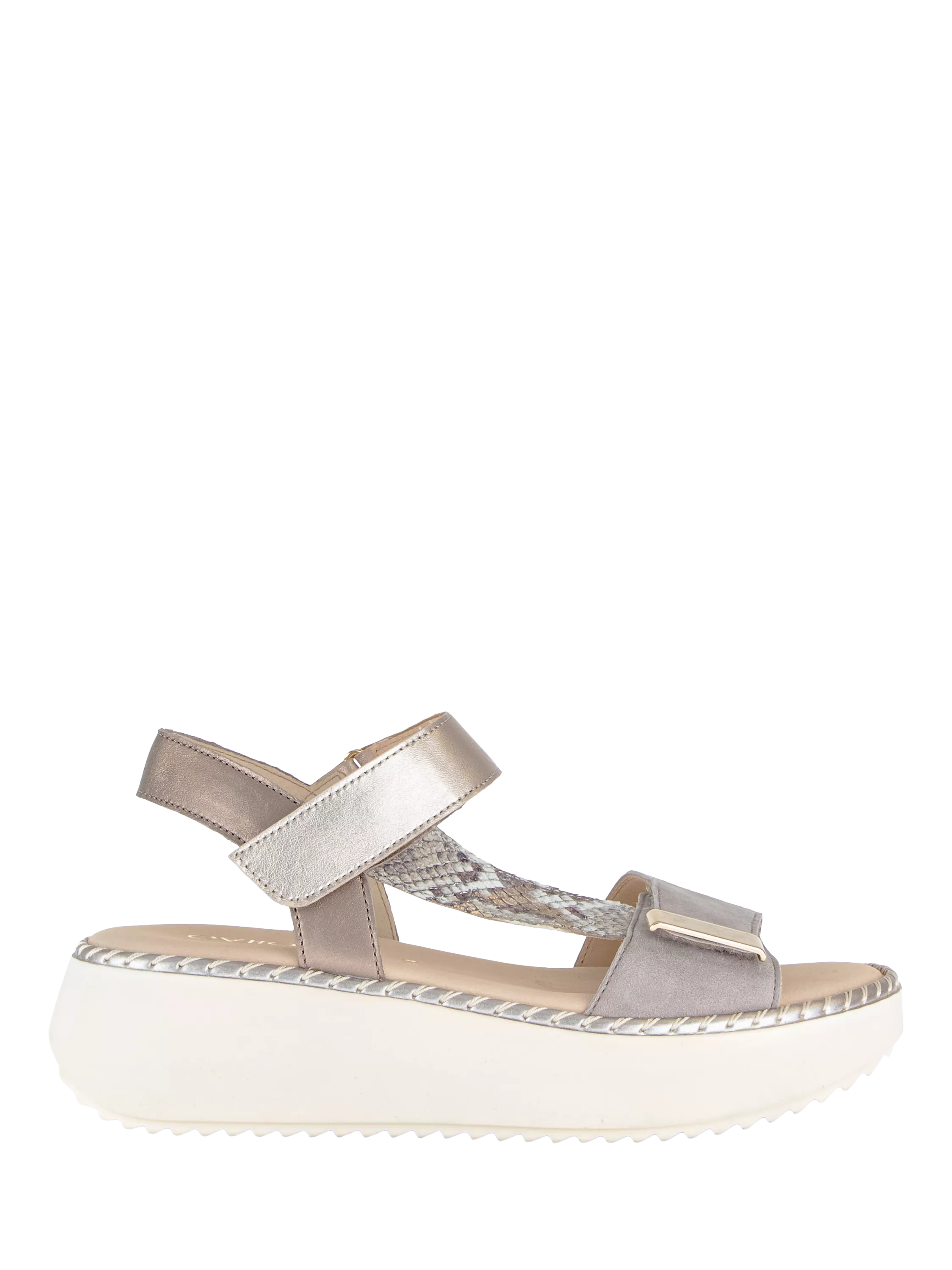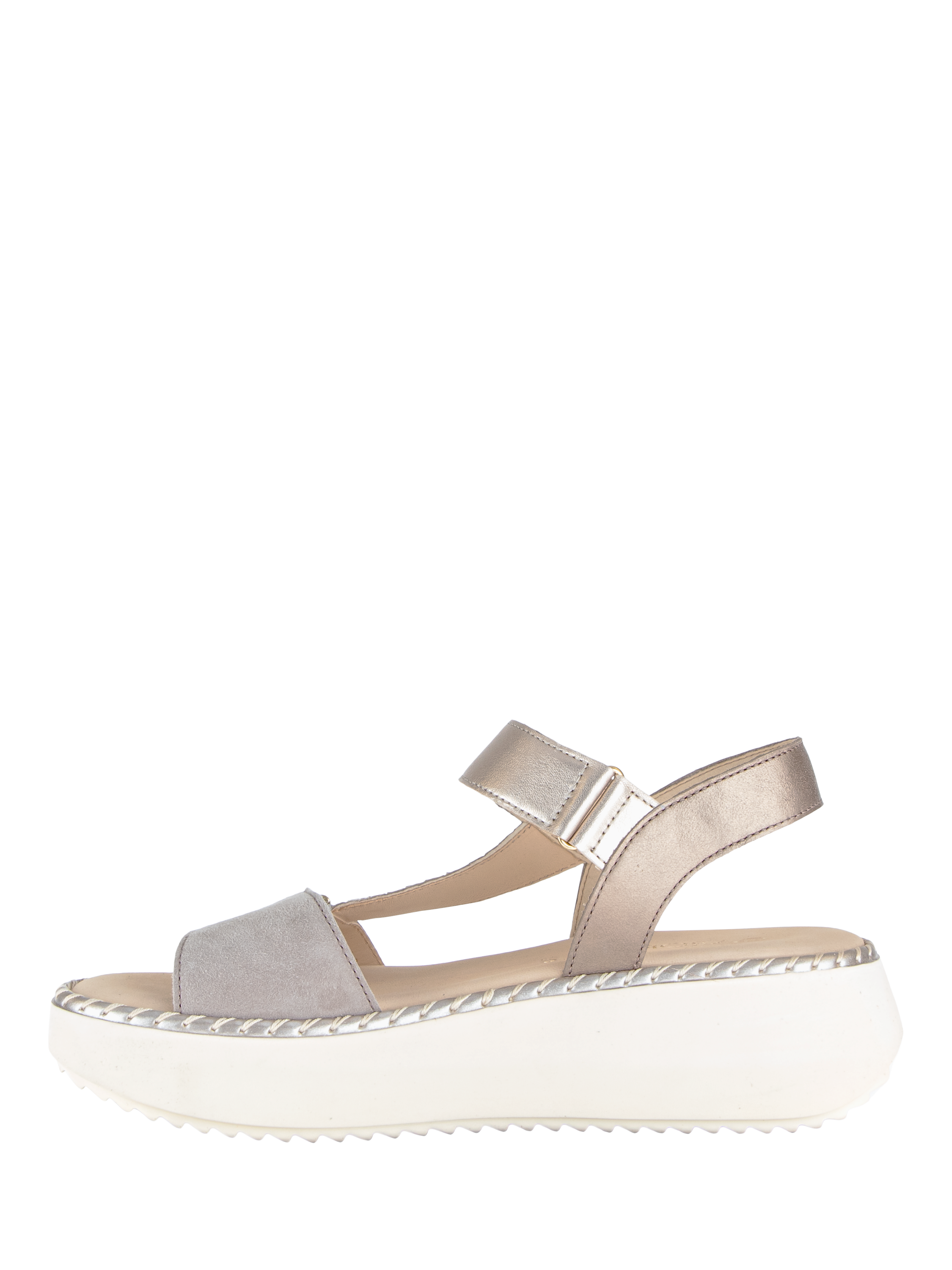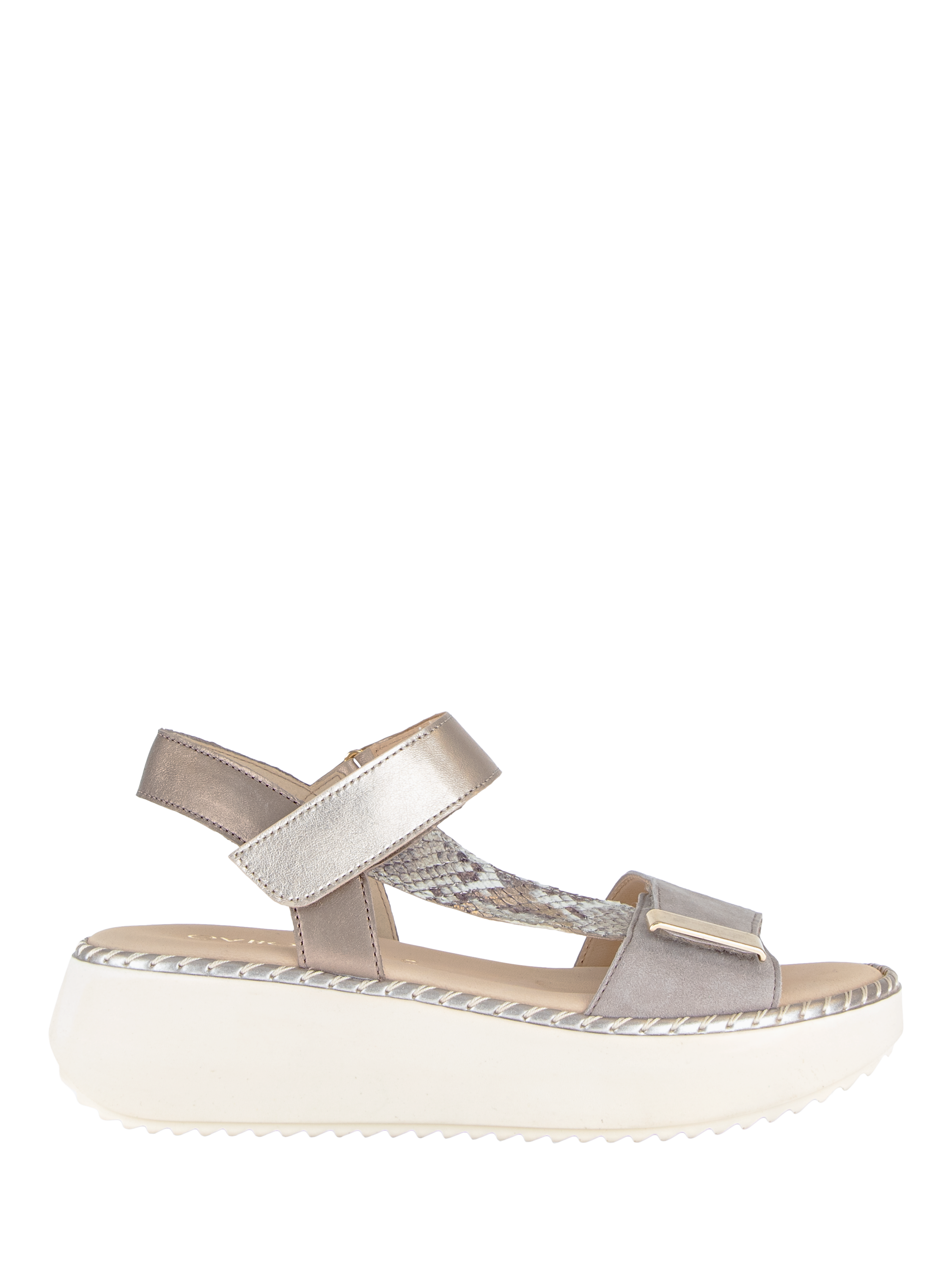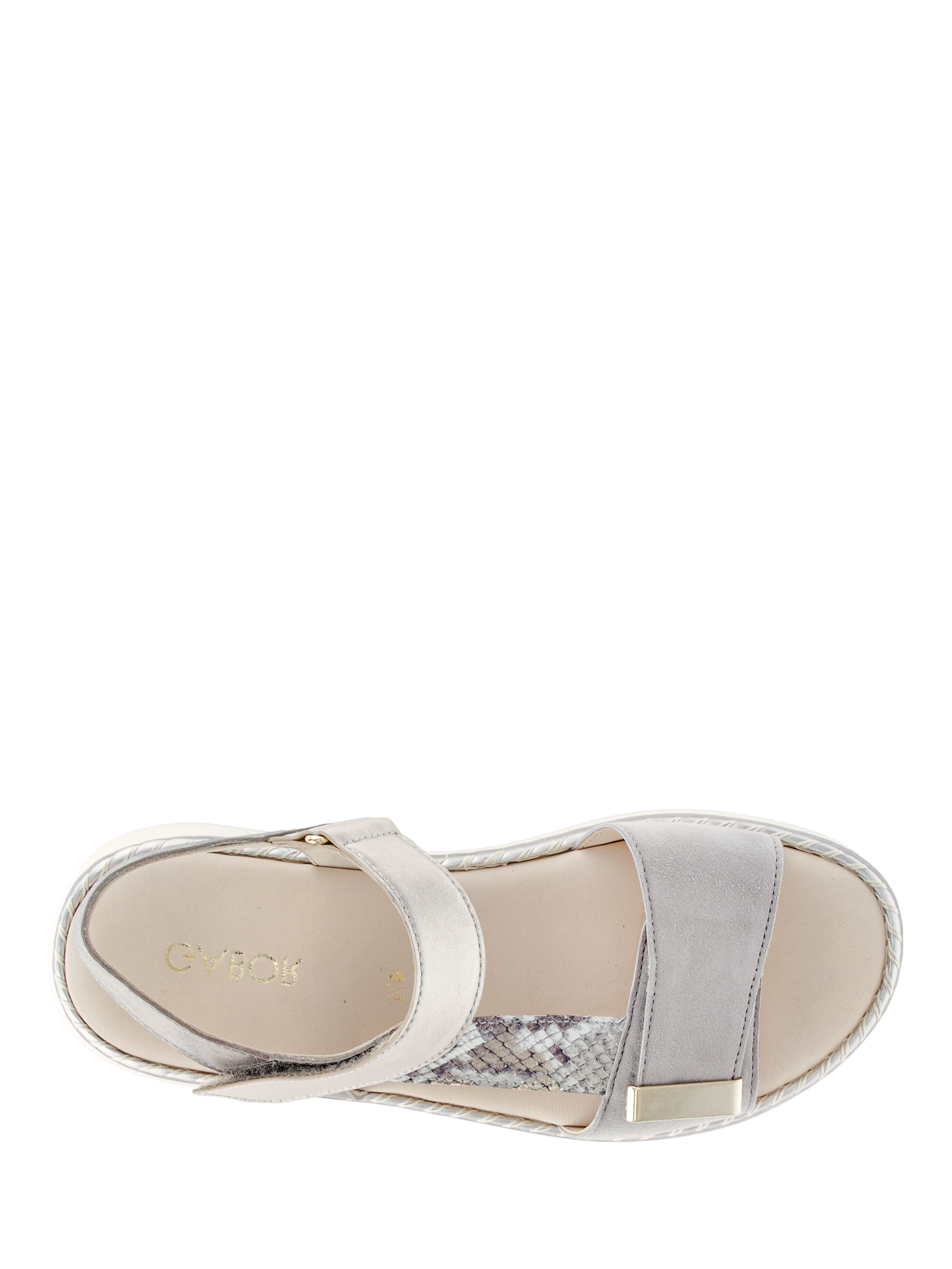 A slingback sandal with adjustable rip tape fastening and decorative buckle detail across the foot, incorporating Gabor's Best Fitting technology.