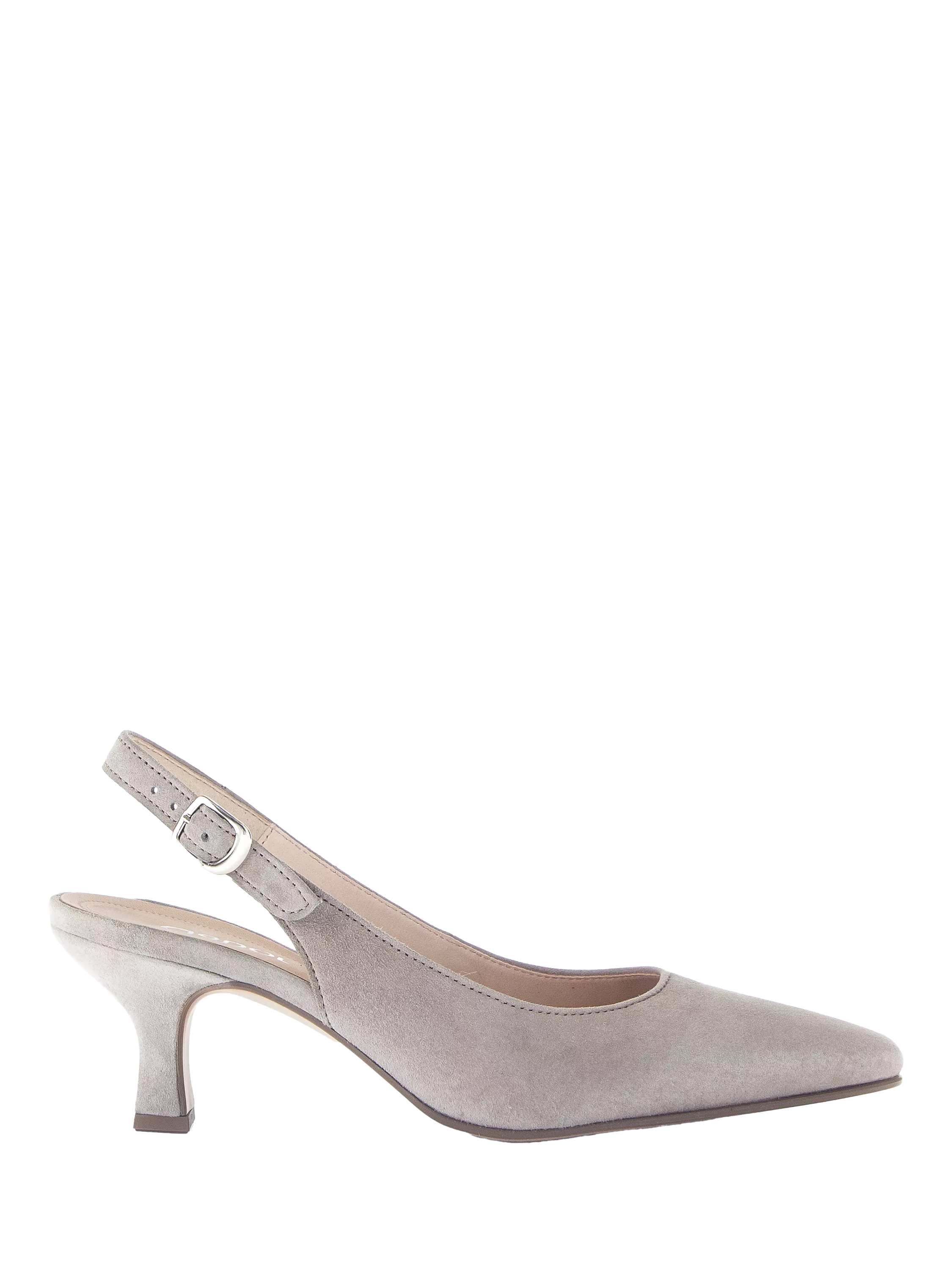 The Gabor Lindy court shoes feature a beautifully crafted nubuck upper atop a chic block kitten heel to add a touch of elegance to any ensemble. The pointed-toe silhouette has a slingback strap that gently wraps around the heel and can be secured with a buckle fastening. The soft leather lining keeps feet feeling comfortably cool all day.
