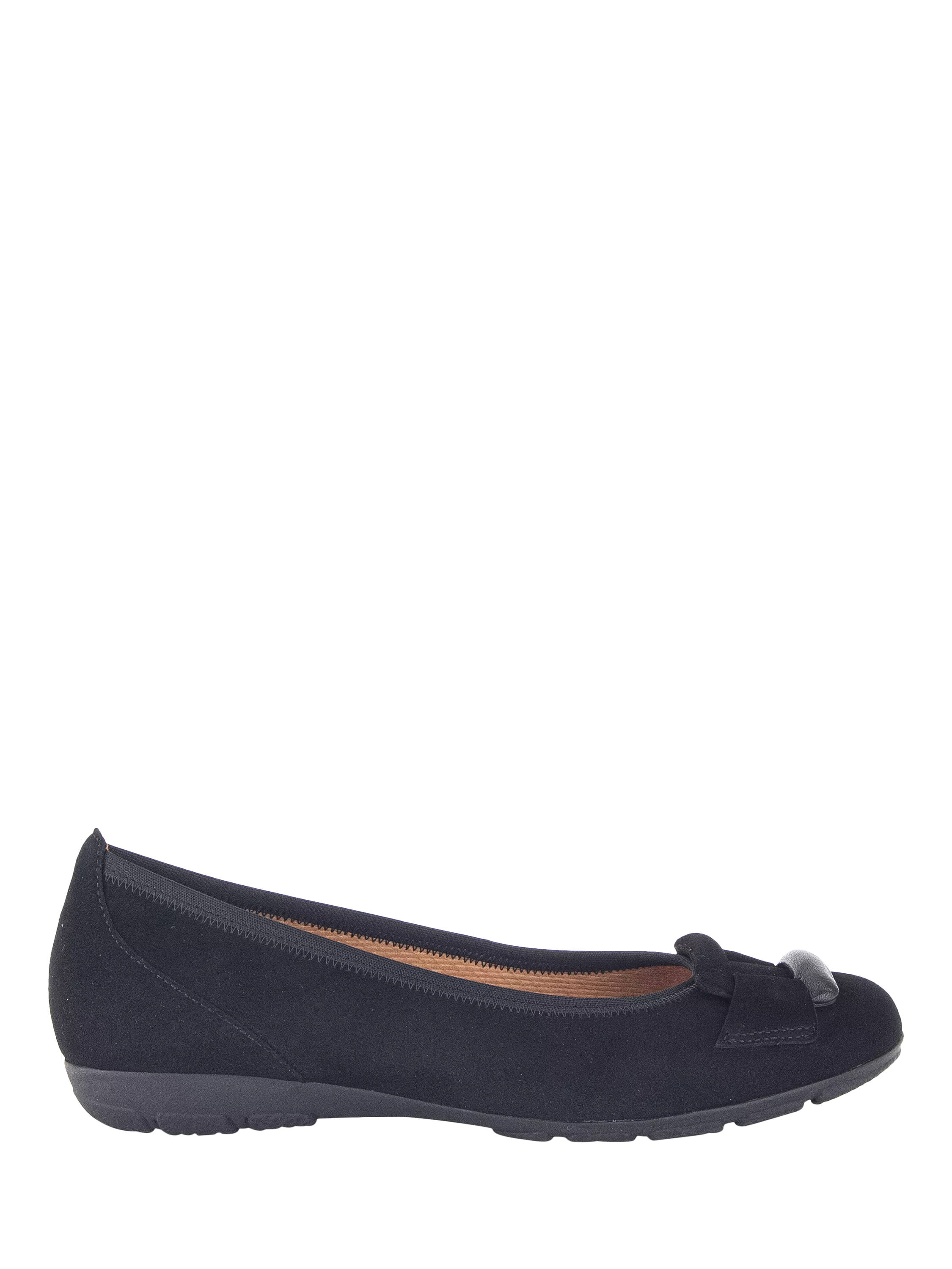 A ballerina-style shoe with a buckle detail across the front that also benefits from Gabor's Hovercraft air-cushioned sole.