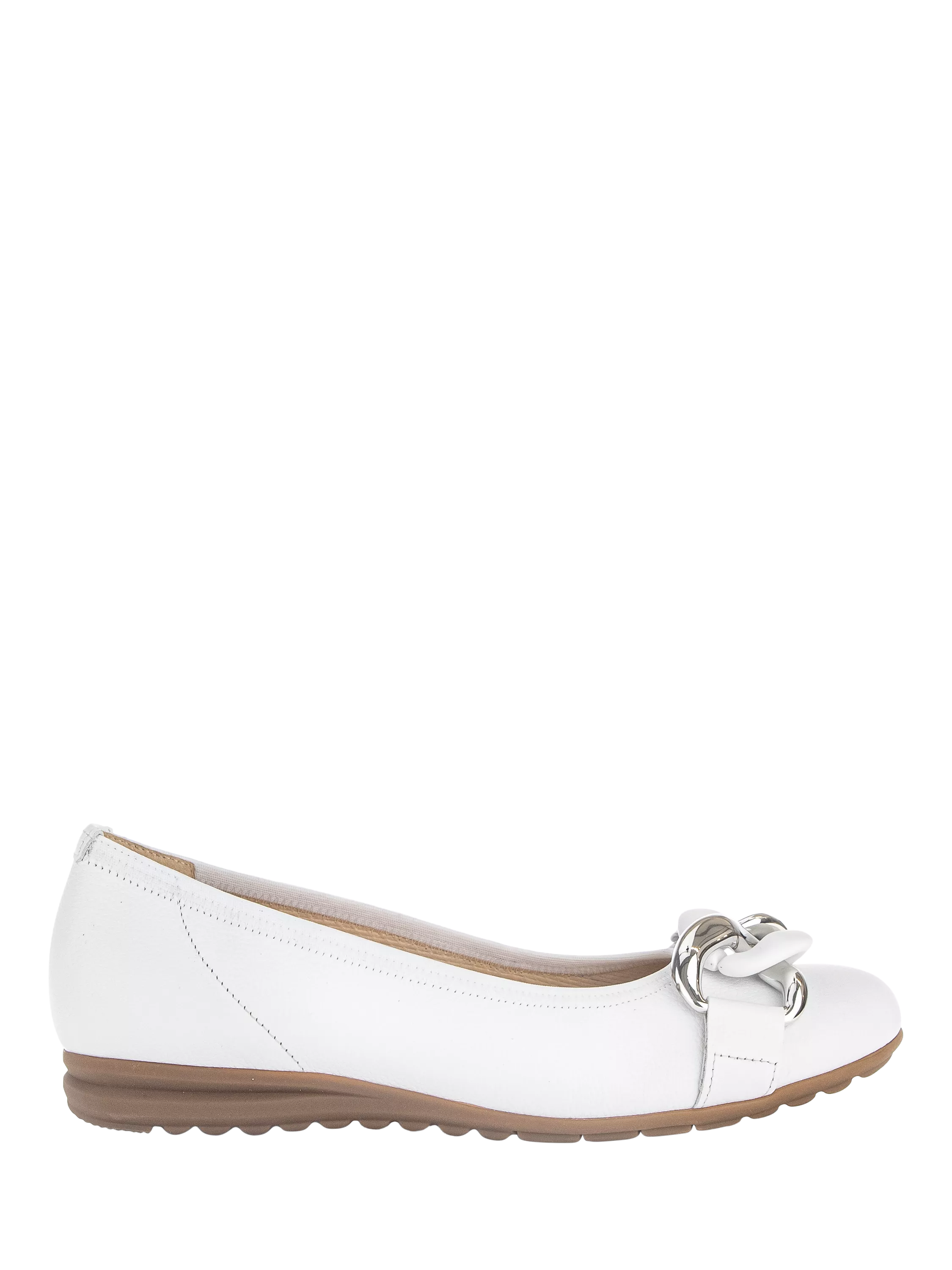 Reworking the classic ballerina pump, this wide-fit style from Gabor offers an elegant touch to your ensemble with its soft leather uppers. Set on a flat heel, they are round-toed in design with a chunky braided chain detail.