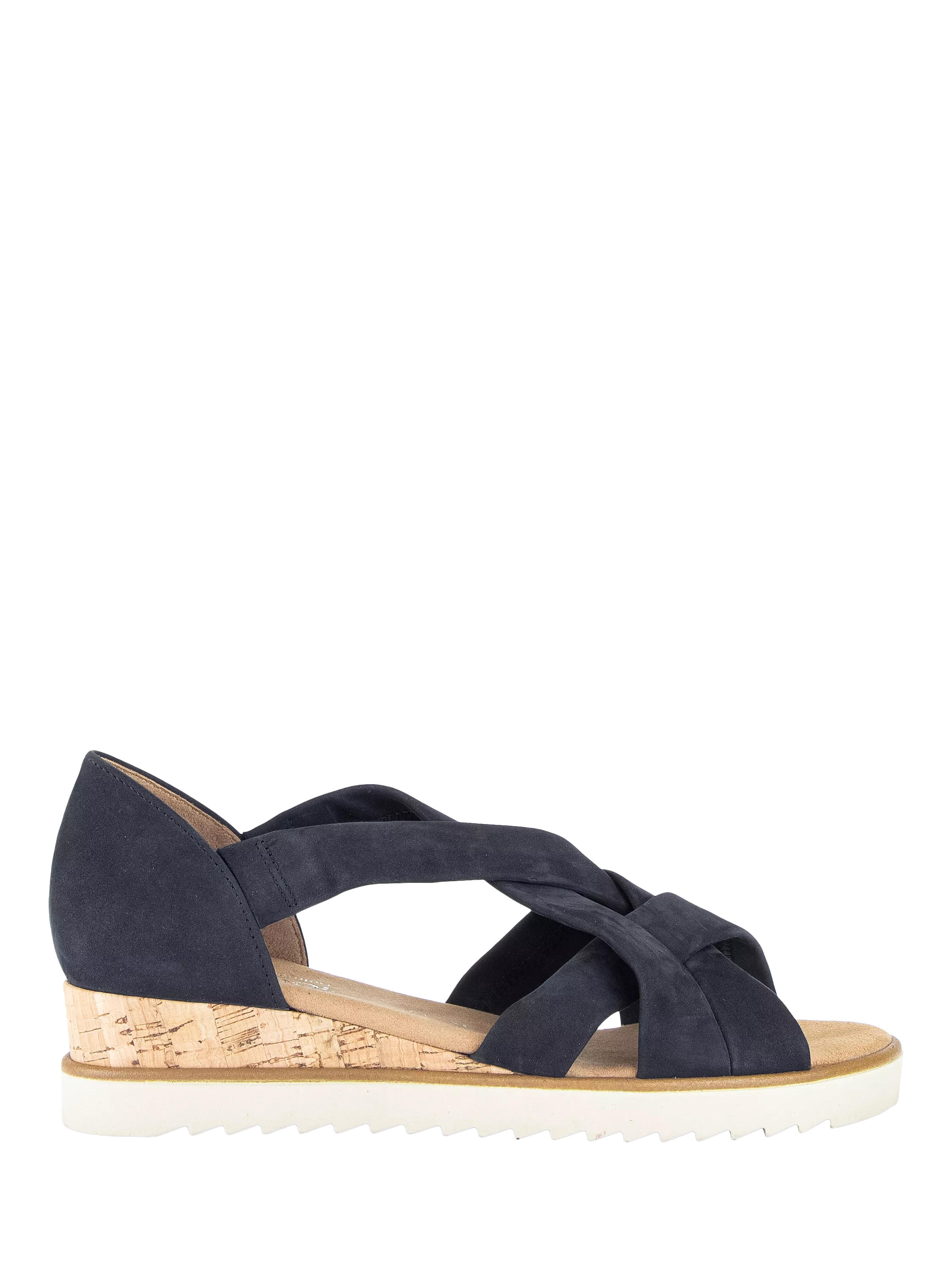 A wide-fit cork wedge-heeled sandal with twisted material detail.