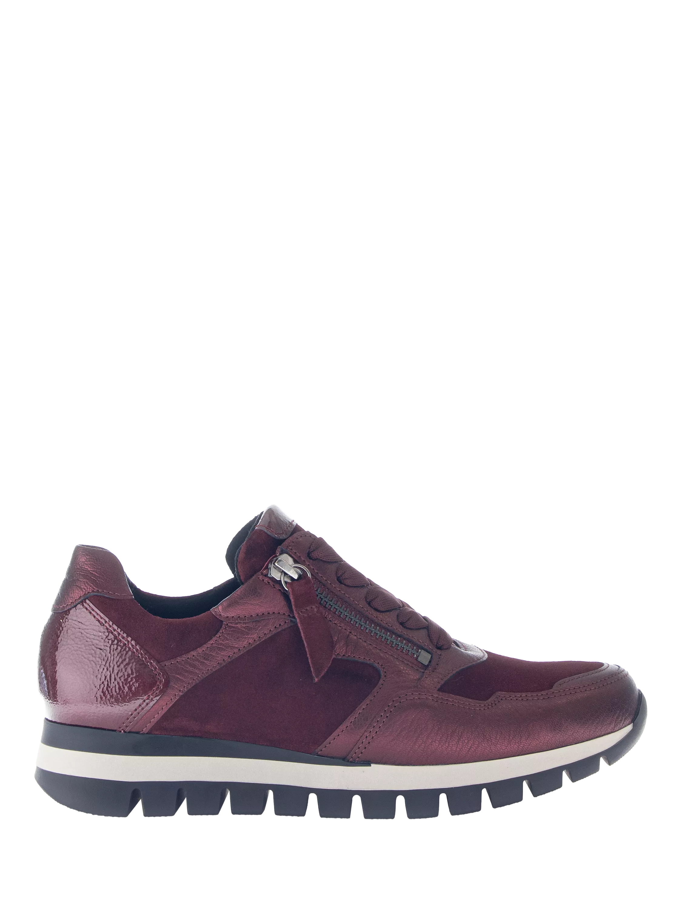 A wide fit trainer with zip and lace fastening, removable insoles, and recycled footbed.