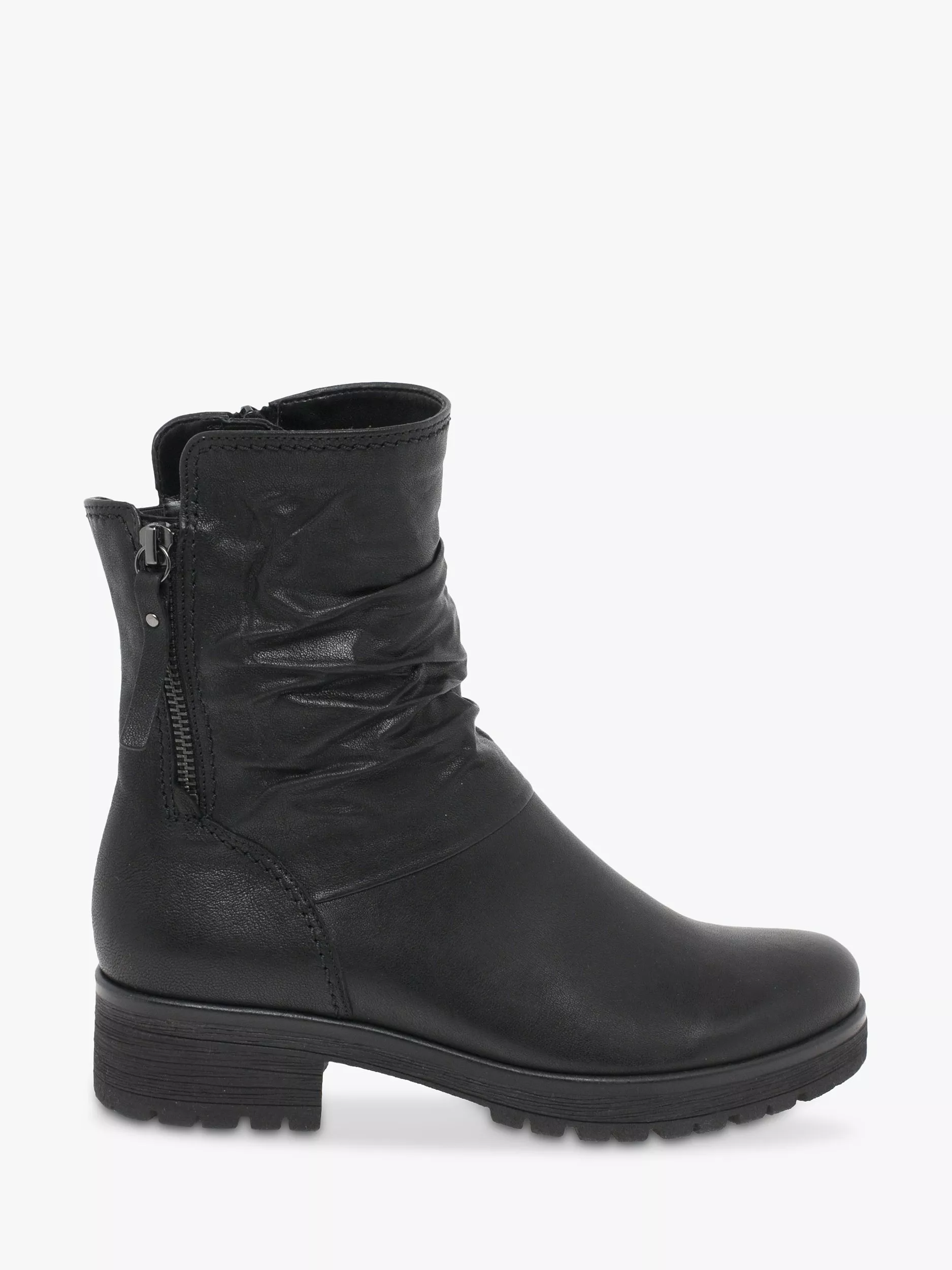 The Zola's modern ankle boots by Gabor are your ultimate winter weather accessory. Stylish yet practical, they feature a ruched detail, giving off a biker aesthetic and they stand on chunky cleated soles with block heels for high levels of shock absorption and grip. Side zips ensure easy access, to the style which is crafted in classic black leather for maximum comfort during the cooler months.