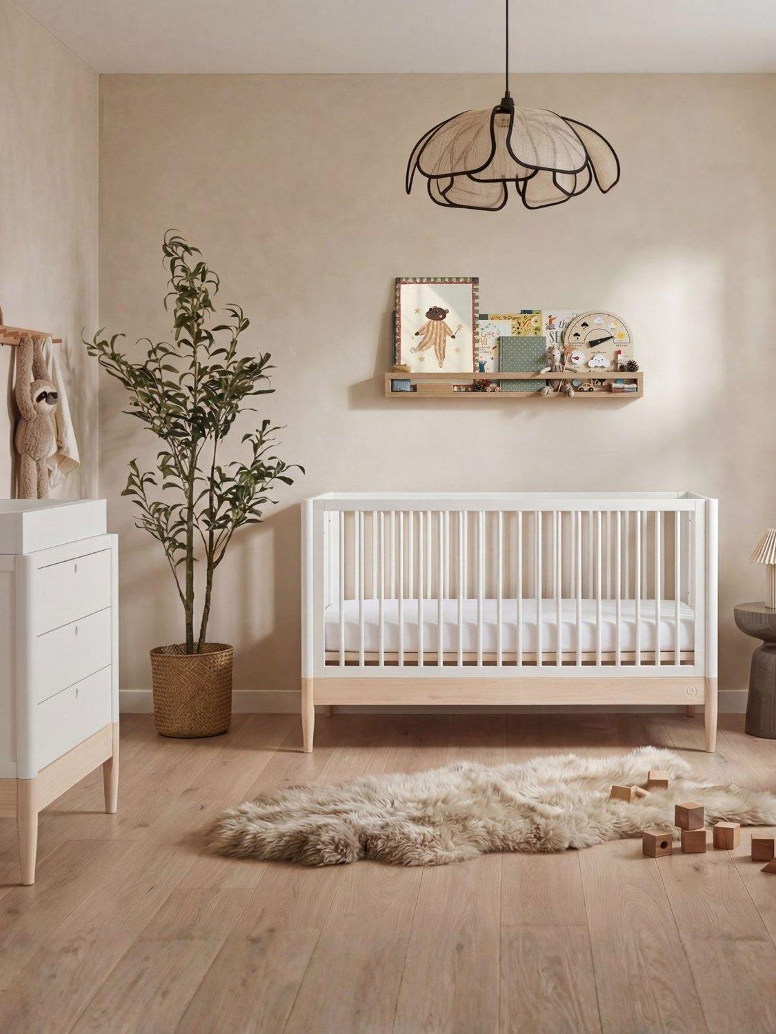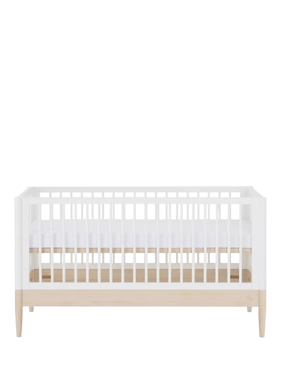 Designed for modern family homes, the Eos Cotbed features a distinctive two-tone look, allowing you to personalise your nursery. With gently curved edges, no sharp corners, and a streamlined footprint, it blends safety, comfort, and contemporary design.
