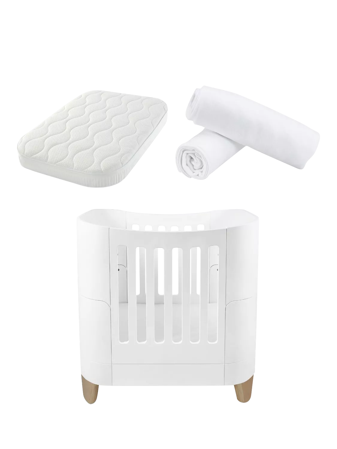 The Serena Mini Cot Bundle is the ideal bedside cot that can be used from birth up to 2 years old. This bundle includes the Serena Mini Cot, the Serena Mini Cot Mattress, a mattress protector and a pack of 2 fitted sheets.