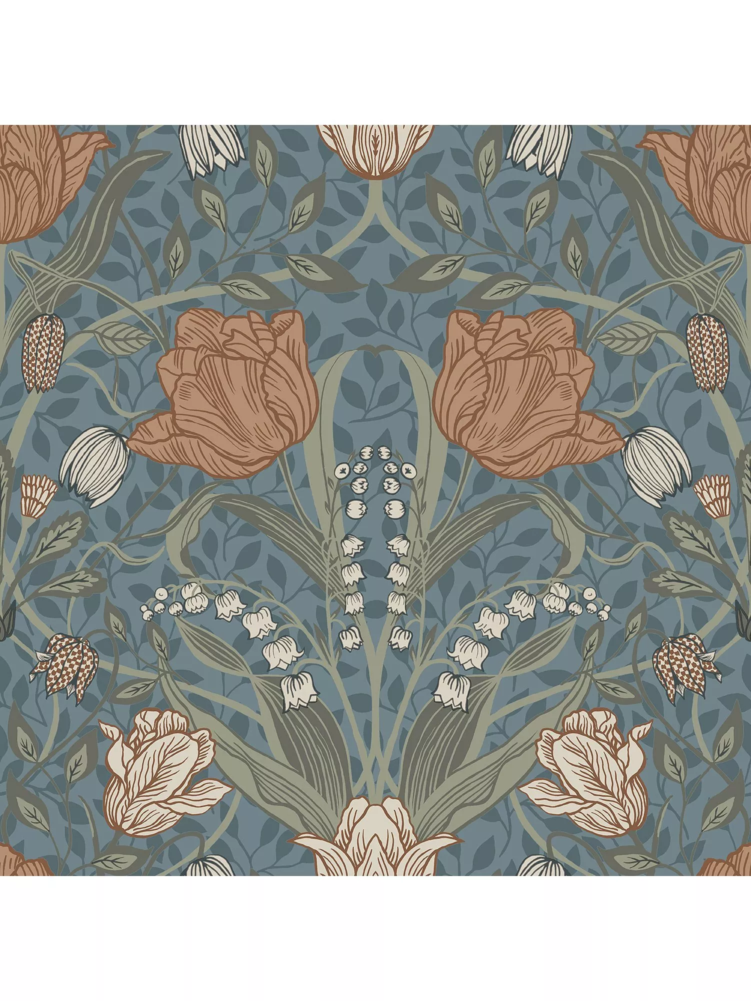Dense organic patterns in combination with simpler and more delicate designs form the colourful collection Apelviken from Swedish designers Hanna Wendelbo and Midbec Sweden. Bold floral prints in rich colours are complimented by pretty leafy trails, mini tulip motifs and a small trellis design.