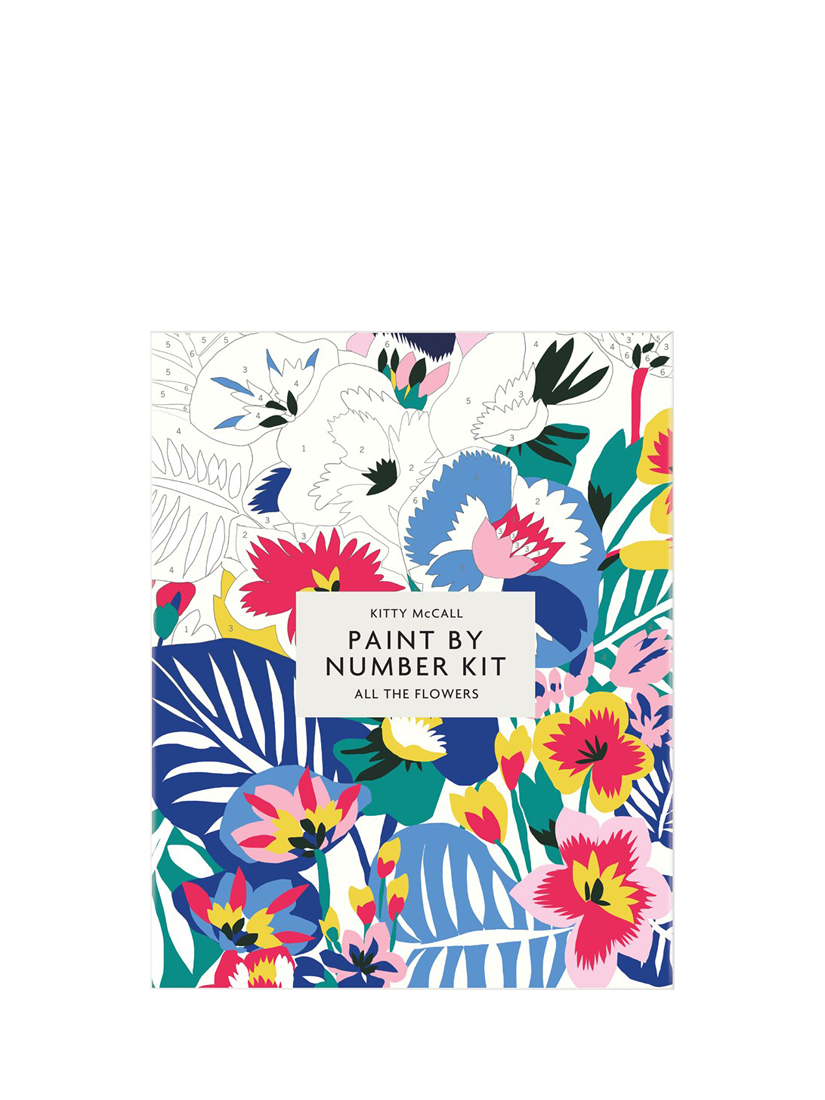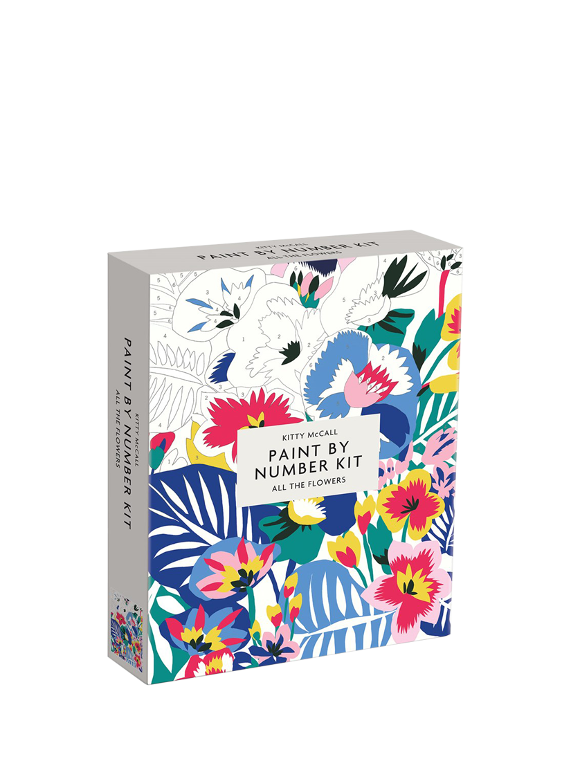 This paint by numbers kit includes a line-drawing of a colourful flowers on canvas from Nigerian-born, UK-based artist, Kitty McCall.