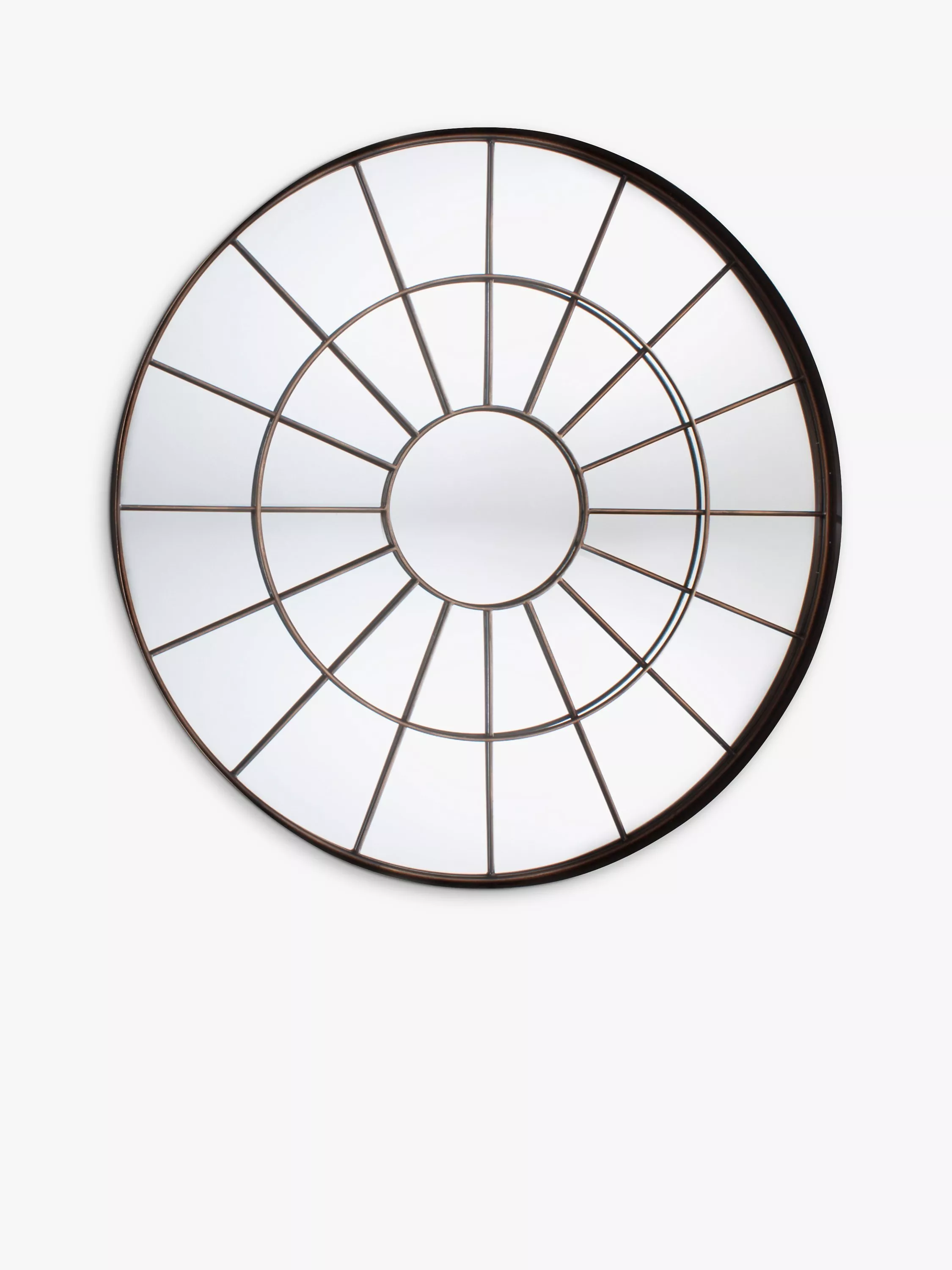 An industrial-style design for a hallway or living room, the Battersea round mirror has a wheel-like metal frame in a bronze finish. It's ready to hang on your wall using the fittings on the back.