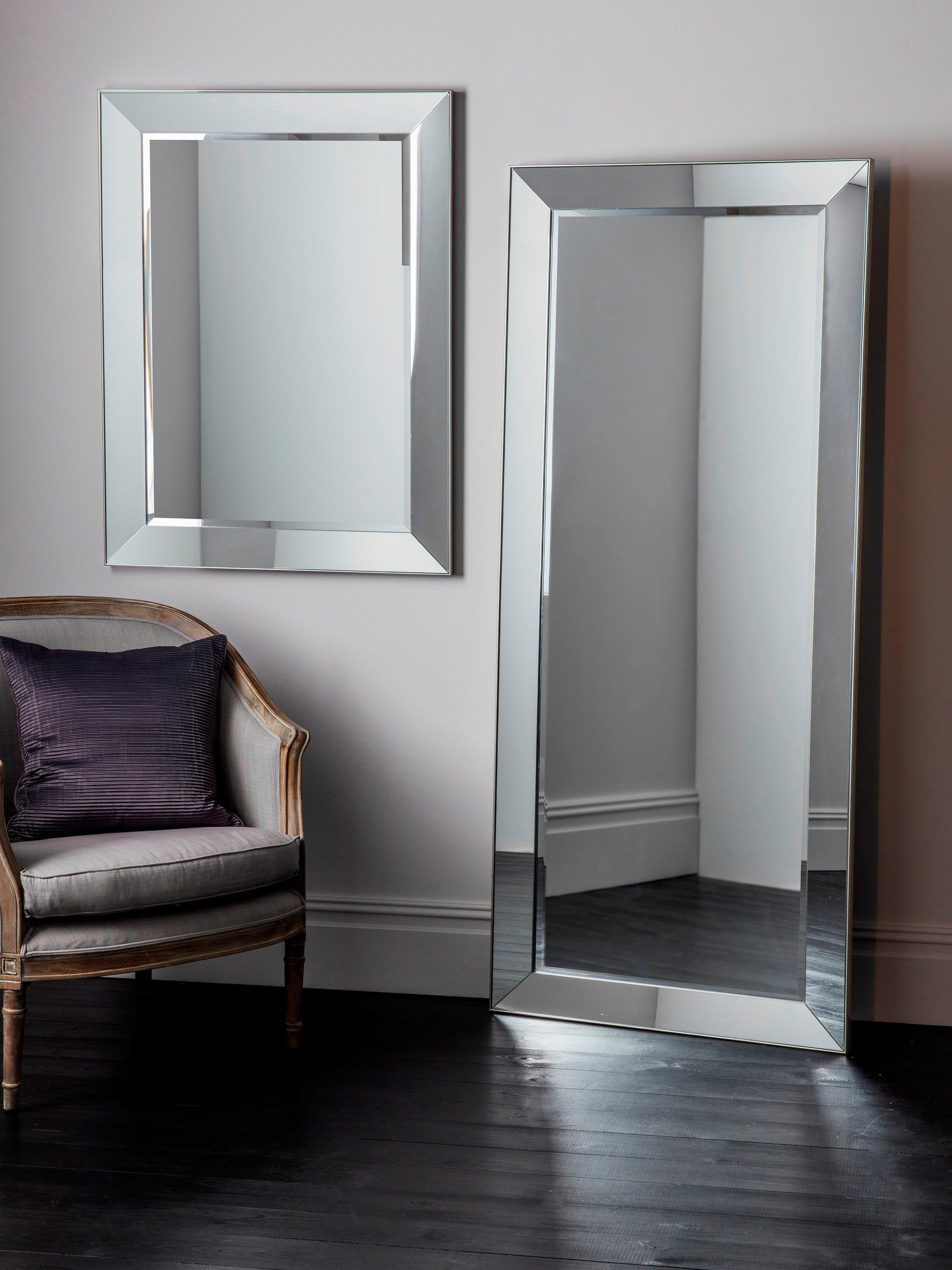 A contemporary design, the Bertoni leaner mirror has an elegantly raised glass frame with a painted metallic edge.