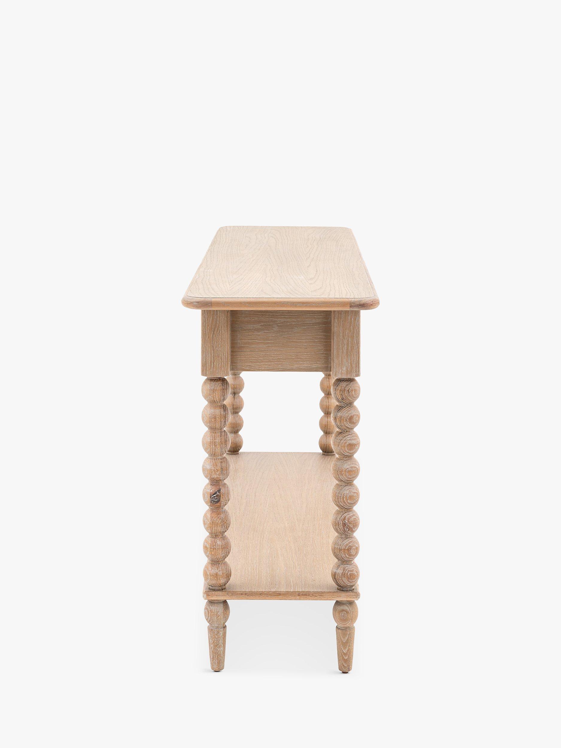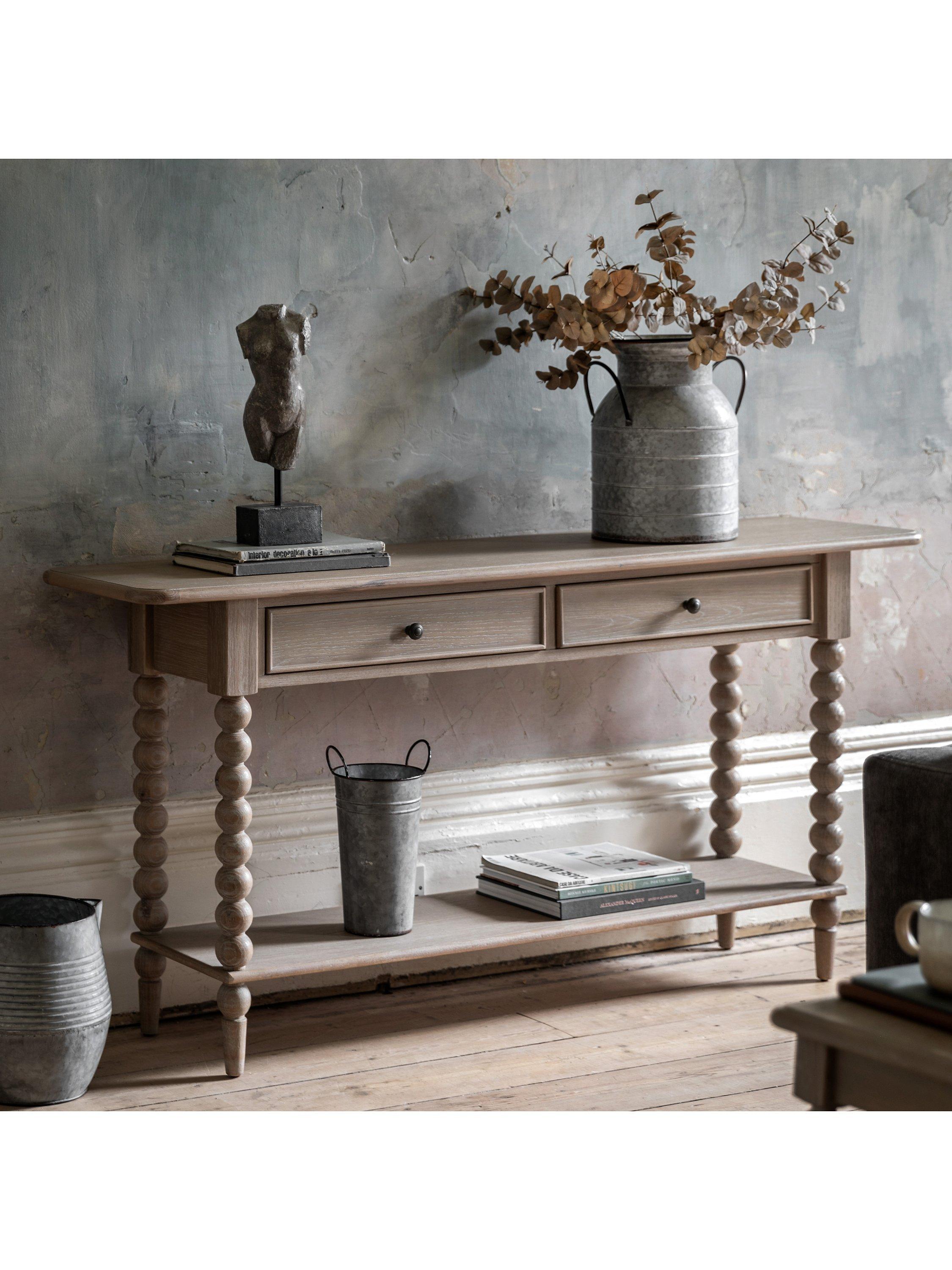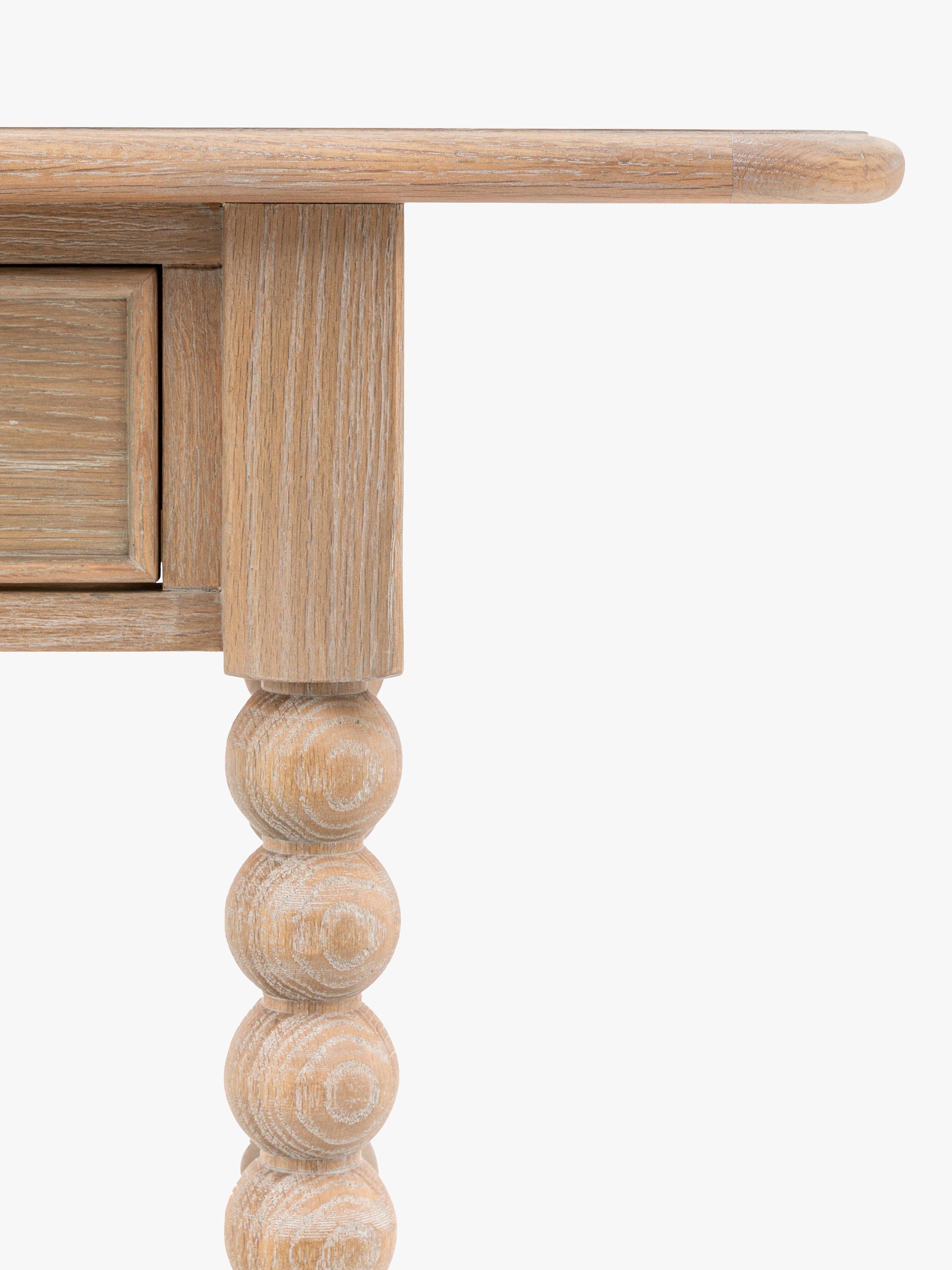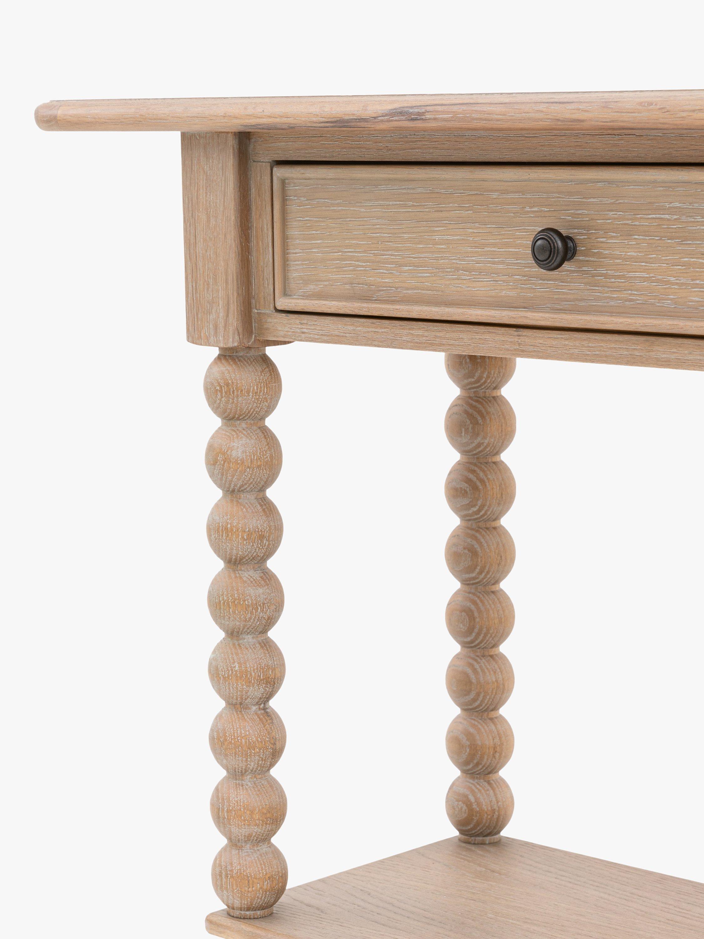 This stunning console table has two drawers and a lower shelf for added practicality and would make a stylish addition to any interior. The play on a classic look emphasises the hand-crafted "bobbing detail" down each leg.