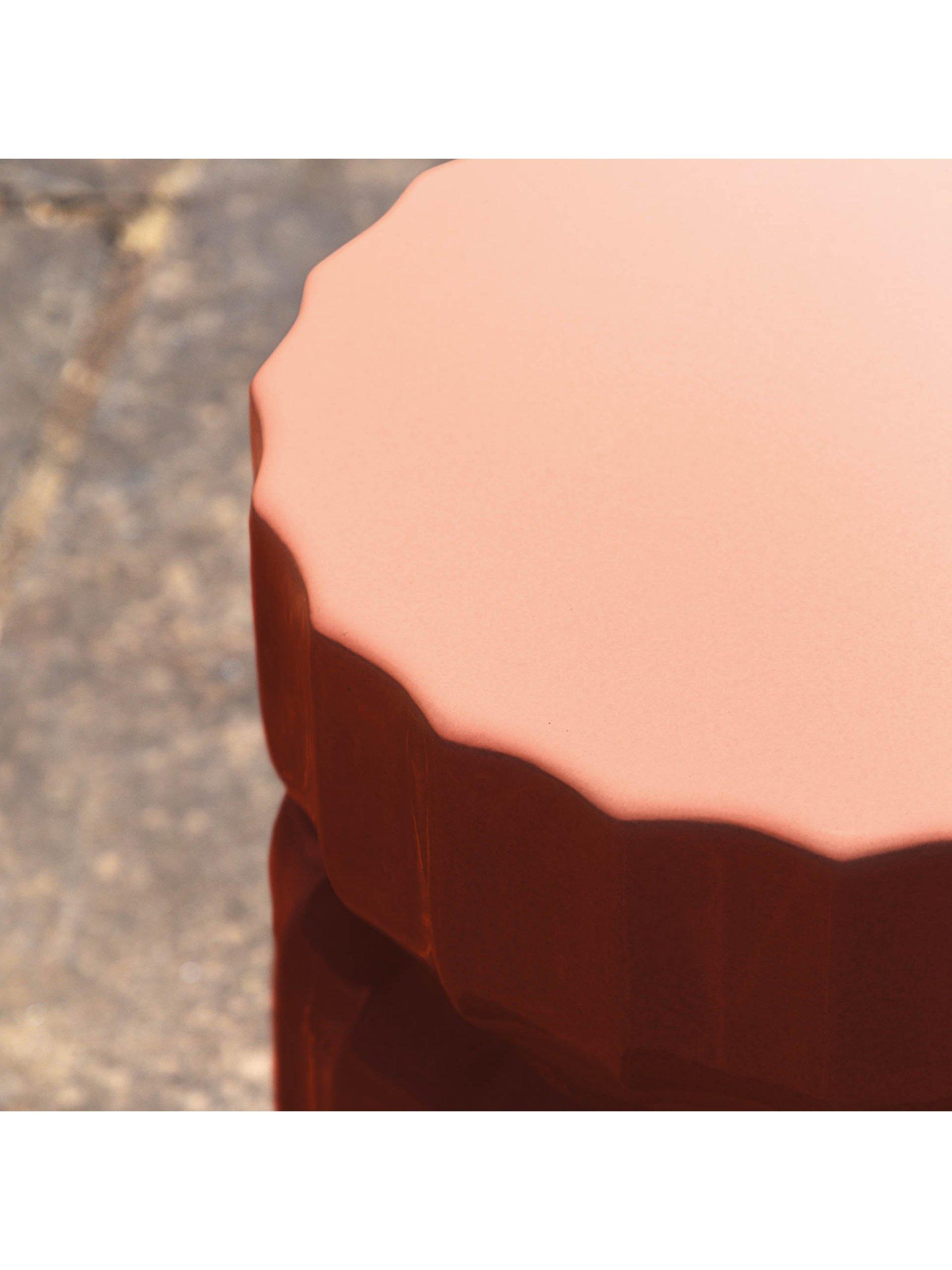 Made of Glass Fibre Reinforced Concrete (GFRC), the material is lighter in weight compared to traditional concrete, as well as durable. The glazed finish adds a modern look and makes the table suitable for outdoor use, too.