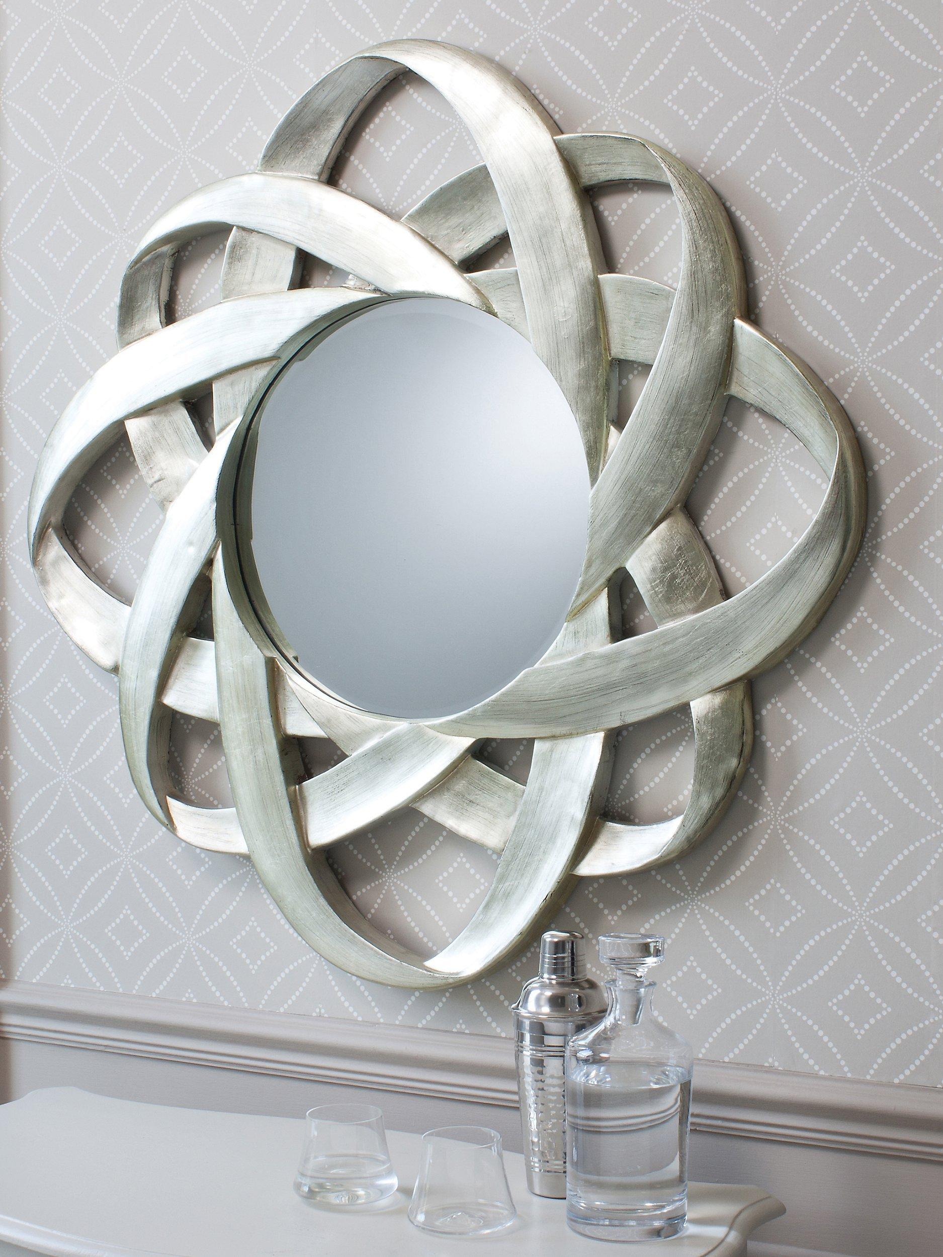 A focal point for a hallway or living room, the Constellation round mirror has a celestial design of interlacing curves in a silver finish. It's ready to hang on your wall using the fittings on the back.
